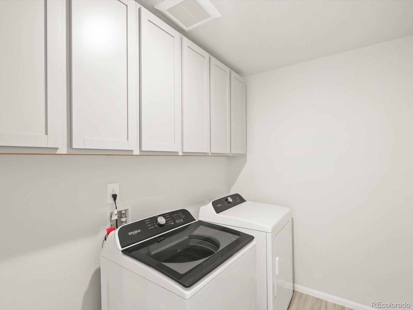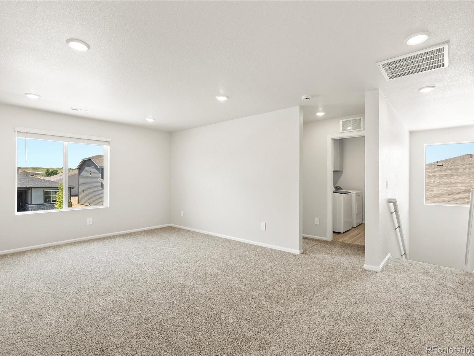 Step into the Chatfield, a brand new 4-bedroom, 2.5-bath two-story home in beautiful Windsor, CO, offering modern design, thoughtful layout, and a peaceful greenbelt backdrop. As you enter through the front door, you’re greeted by a versatile flex room, perfect as a home office, playroom, or formal sitting room. Continue into the open-concept kitchen, living, and dining area, ideal for both everyday living and entertaining. The kitchen features sleek quartz countertops, a gas stove, stainless steel appliances (all included), and a convenient mudroom and pantry just off the garage entry. A main-floor half bath adds extra functionality for guests. Upstairs, the spacious primary suite is a true retreat with a double-sink vanity, tile shower, private water closet, and an oversized walk-in closet. The upper level also includes a large loft for extra hangout or workspace, a dedicated laundry room with washer and dryer included, and three additional bedrooms that share a full bath. Whether you're hosting friends or enjoying quiet evenings in, the Chatfield delivers the space and flexibility to fit your lifestyle. This home is move-in ready with all blinds included and a prime lot that backs to a greenbelt, with the rear property line fence already complete. Meritage Homes is known for quality construction, innovative design, and exceptional energy efficiency, thanks to features like advanced spray foam insulation. Nestled in the heart of Windsor, Poudre Heights offers the perfect balance of small-town charm and modern convenience. Enjoy nearby parks like Eastman Park and Windsor West Park for outdoor fun. Shop and dine at The Promenade Shops at Centerra or Windsor Town Center, just minutes away. Whether you're planning a family outing, a date night, or a quick errand run, everything you need is right around the corner!