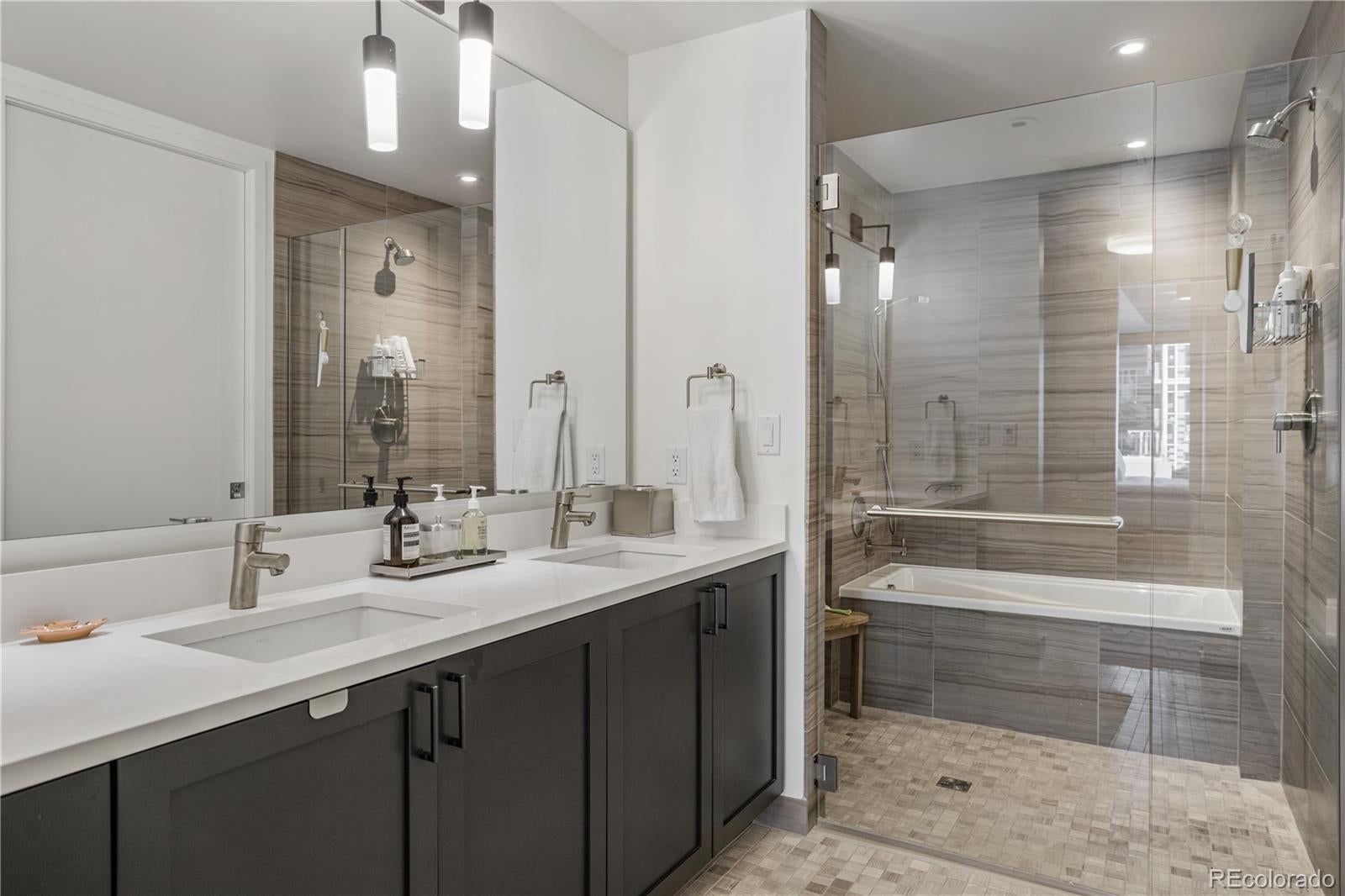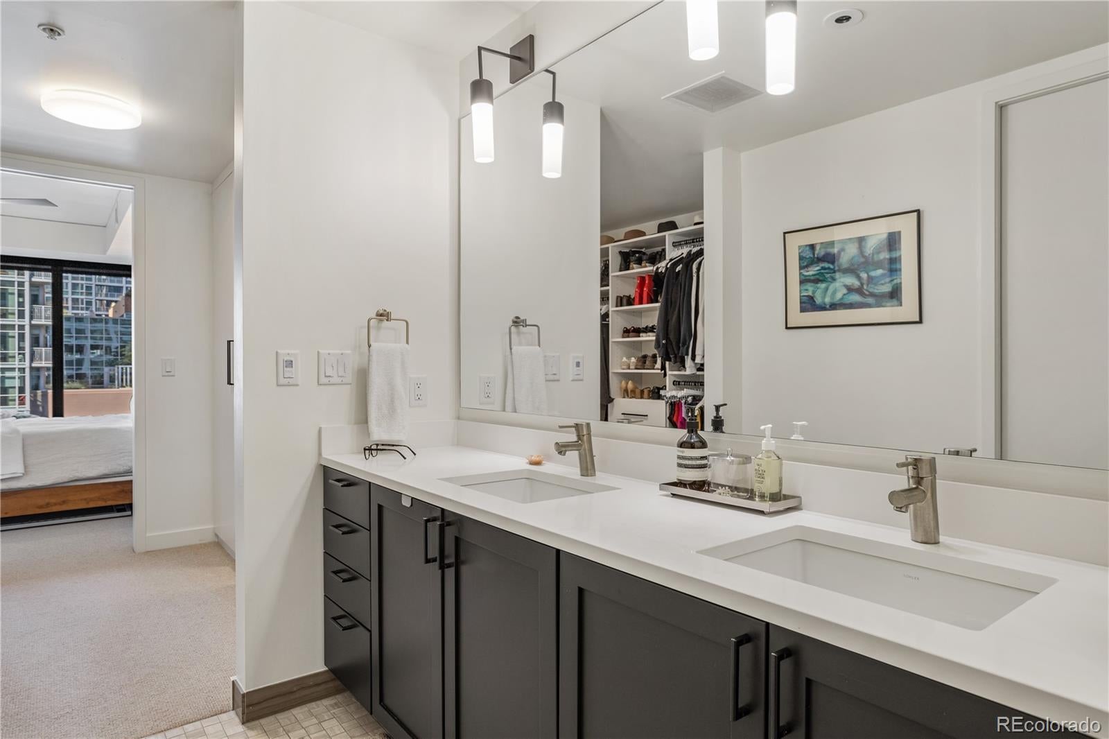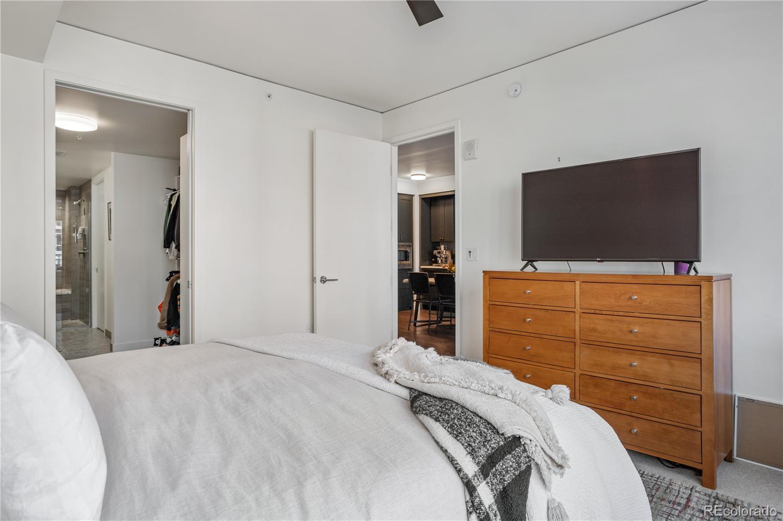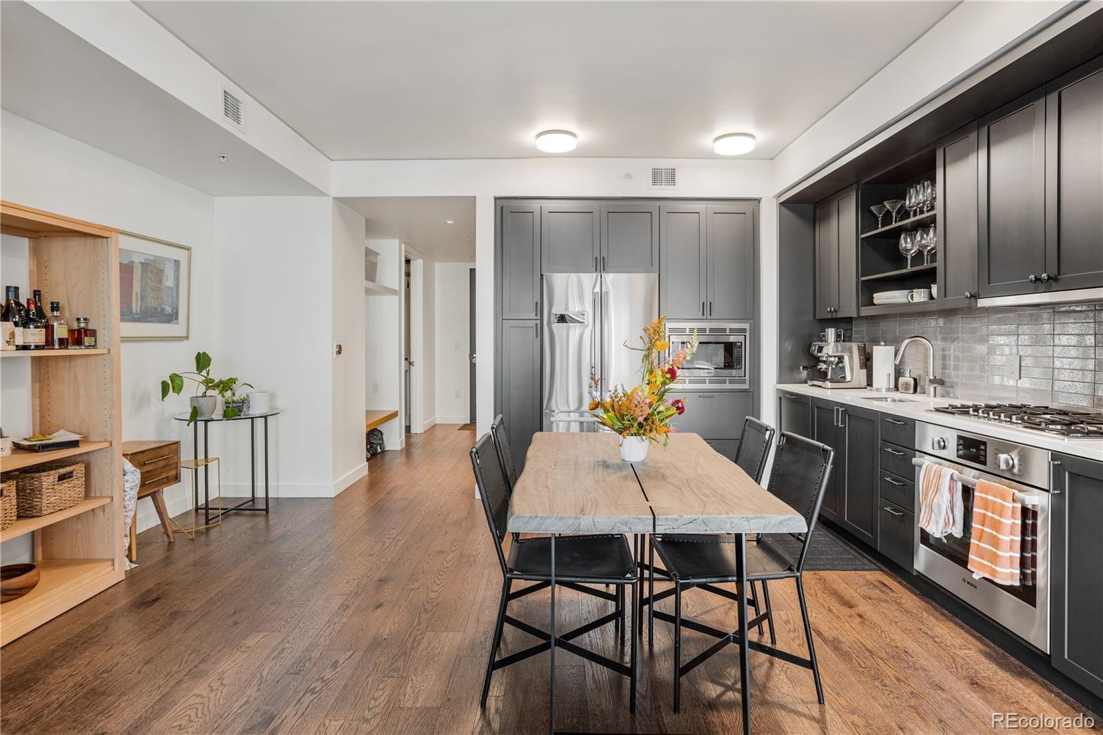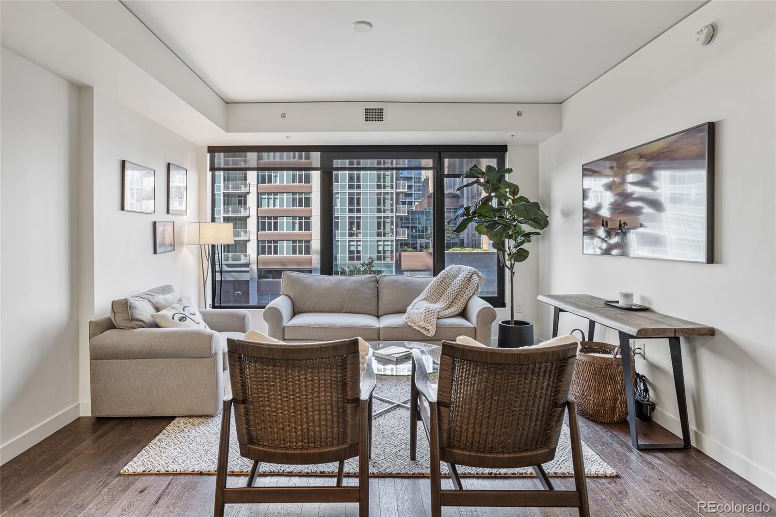 ATTENTION: Seller will cover 6 months of HOA dues if a contract is executed with an open house attendee!! Join us for our open house, Saturday, Oct 4 from 11AM-2PM. Experience the luxury of living in the one of the largest available one-bedroom, one-and-a-half bathroom residence at The Coloradan, offering a turnkey lifestyle. As you enter, appreciate the built-in shelving and bench, ideal for storing snowy boots and winter coats. This well-designed floor plan creates an inviting environment for both living and entertaining. The additional powder room is perfect for visiting guests. Indulge in the high-end features, including top-of-the-line Bosch stainless steel appliances, quartz countertops, a stylish tile backsplash, and soft-close cabinetry in the kitchen. The living area provides ample space for a well-sized comfortable sofa, a perfect retreat to unwind with a glass of wine after a busy day. Enter the spacious bedroom and imagine the luxury of waking up refreshed in a room that comfortably fits a king-sized bed, nightstands and dresser. Featuring one of the largest walk-in closets in the community, it is designed to store all your personal belongings efficiently and offers a locked owners' storage area should one decide to lease the property. The spa-like bathroom offers a sanctuary for relaxation, featuring double vanity sinks, and a wet room with a shower and soaking tub. Have it all with an in-unit washer/dryer and ample storage space. The Coloradan provides a host of amenities for residents, including a pool, hot tub, fitness center, front desk staff, and easy access to shops and restaurants. Ideally located at 17th and Wewatta, just behind Denver’s Union Station and across from flagship Whole Foods, you'll have everything within walking distance: fine dining, shopping, coffee shops, fitness studios, trails, Commons Park, and the Confluence of Cherry Creek and South Platte River. Furniture is negotiable. Ask for details.