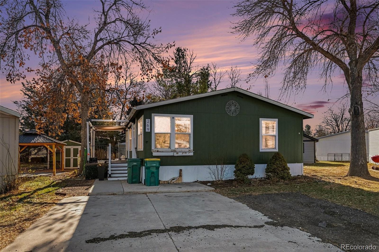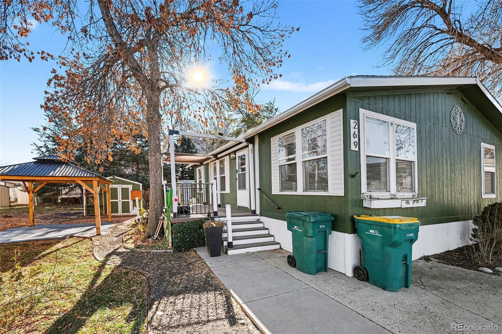 Located on a quiet cul-de-sac in the Harmony Village community, this 1999 double-wide manufactured home offers 3 bedrooms, 2 bathrooms, and 1,232 square feet of comfortable living space. The home features central air conditioning and a practical floor plan with good natural light throughout. The kitchen includes stainless steel appliances, a gas range, ample cabinet space, and an adjacent dining area. Both bathrooms have been tastefully updated, including a tiled tub/shower surround and modern fixtures. Recent mechanical improvements include a newer furnace and hot water heater. Outside, enjoy a patio area with a gazebo—ideal for relaxing or entertaining—along with a storage shed and three off-street parking spaces. Mature trees and the cul-de-sac setting provide a quiet, established feel within the community. Monthly lot rent is $1,189, and buyers must be approved by Harmony Village. This home offers an affordable Fort Collins option with solid updates already in place.