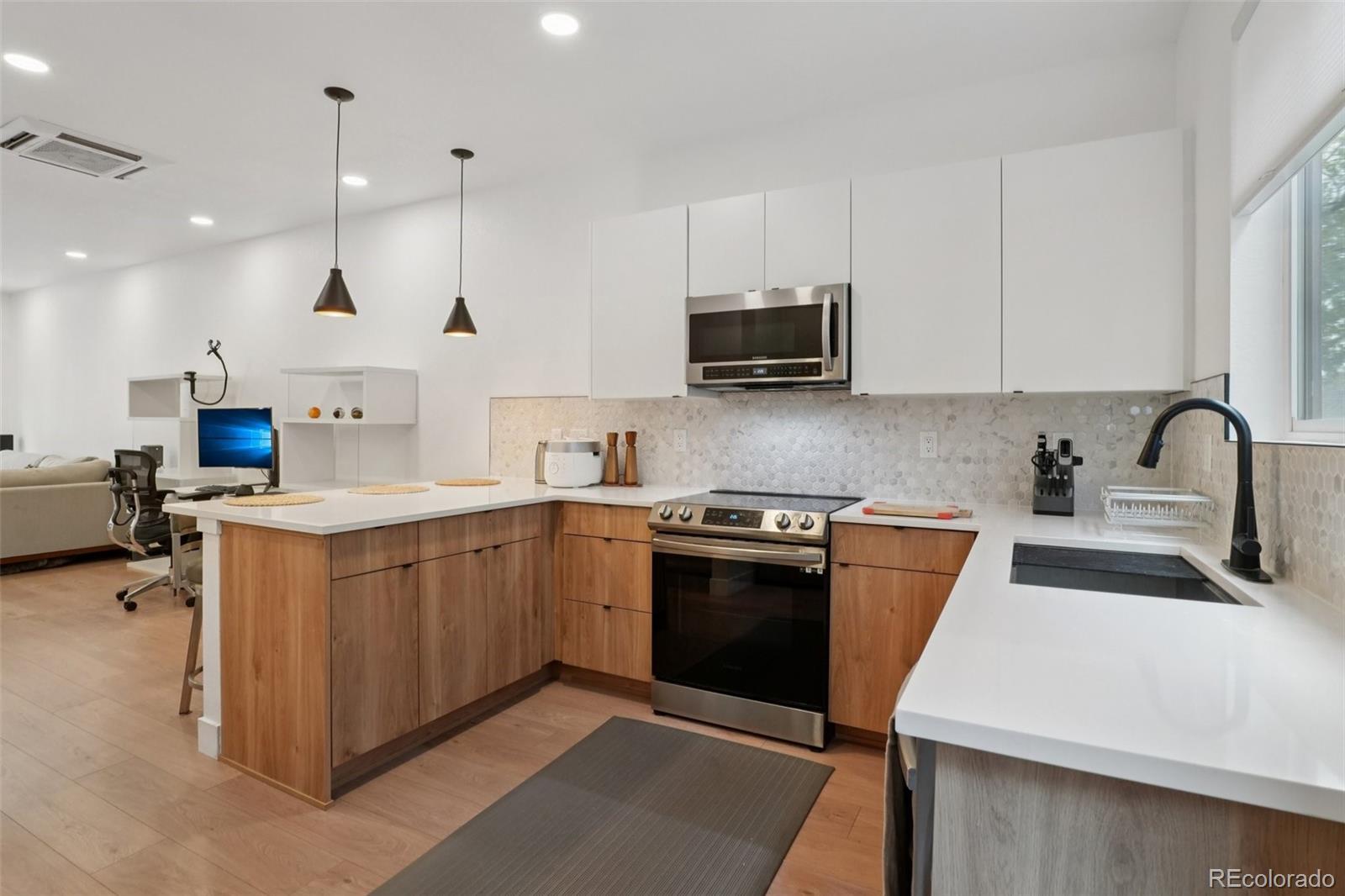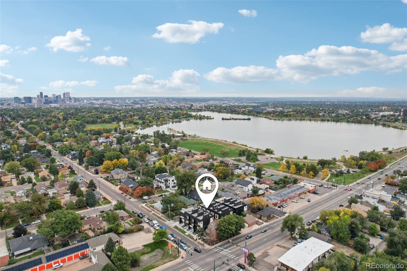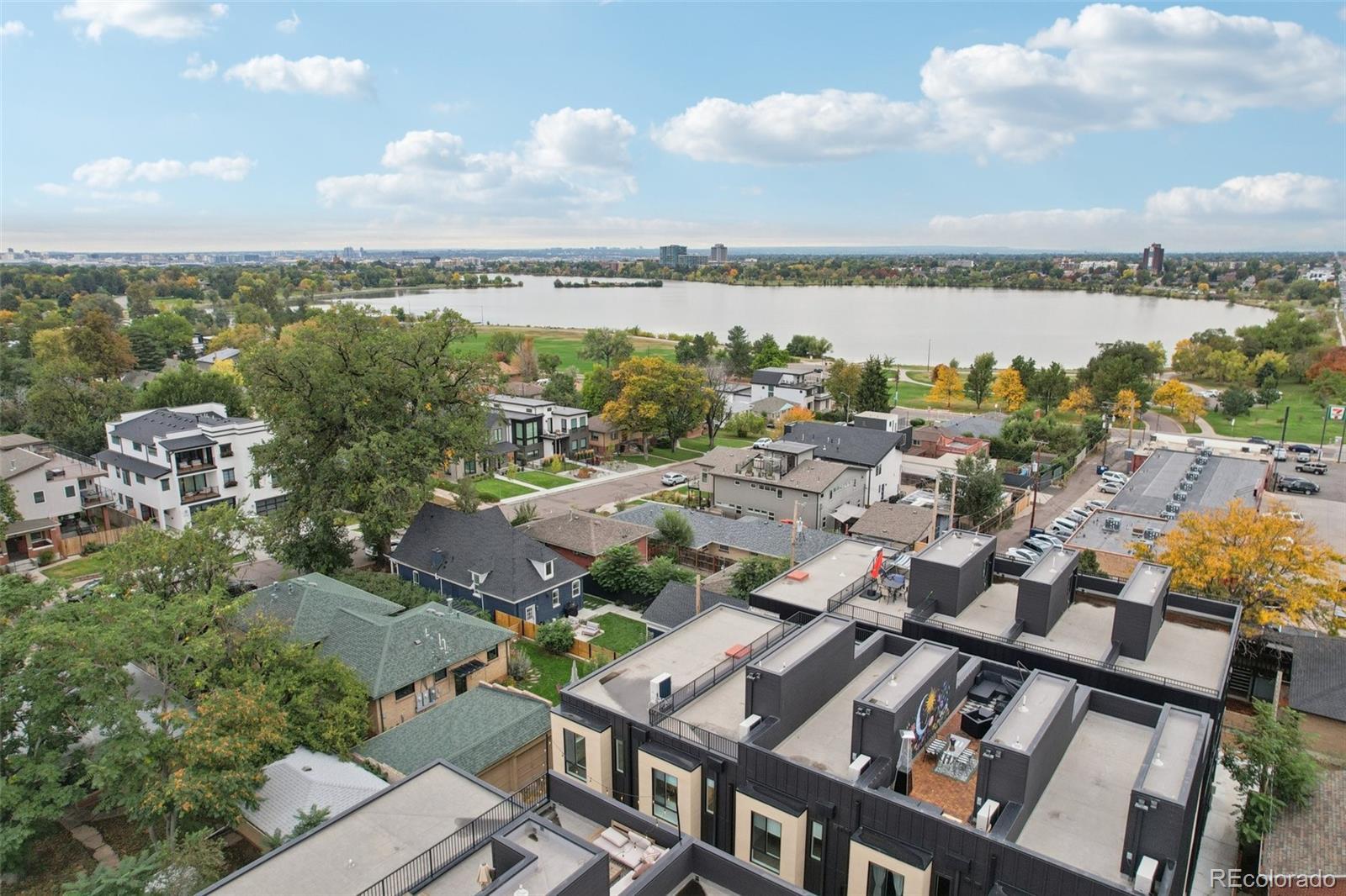 Modern Townhome with Unparalleled Sloan’s Lake Views! Experience the best of city living in this contemporary townhome perfectly positioned just one block from Sloan’s Lake. Enjoy a nearly full, unobstructed view of the lake from your private panoramic rooftop deck, an exceptional and rare find in this sought-after neighborhood. This home showcases sleek, modern finishes throughout, including quartz countertops, luxury vinyl plank flooring, and stainless steel appliances. The open-concept design is bright and inviting, perfect for entertaining or simply relaxing in your stylish space. Thoughtful construction and a low party wall agreement ensure peace and quiet, you’ll hardly know you have neighbors. Practical perks make this home as smart as it is stunning: low taxes, low monthly carrying costs, and an average electric bill of just $200/month. The attached, covered garage provides protected parking and additional storage. With neighborhood amenities, coffee shops, restaurants, and lakefront walking and biking trails all within easy reach, this townhome offers the ideal combination of luxury, location, and livability in the heart of Sloan’s Lake.