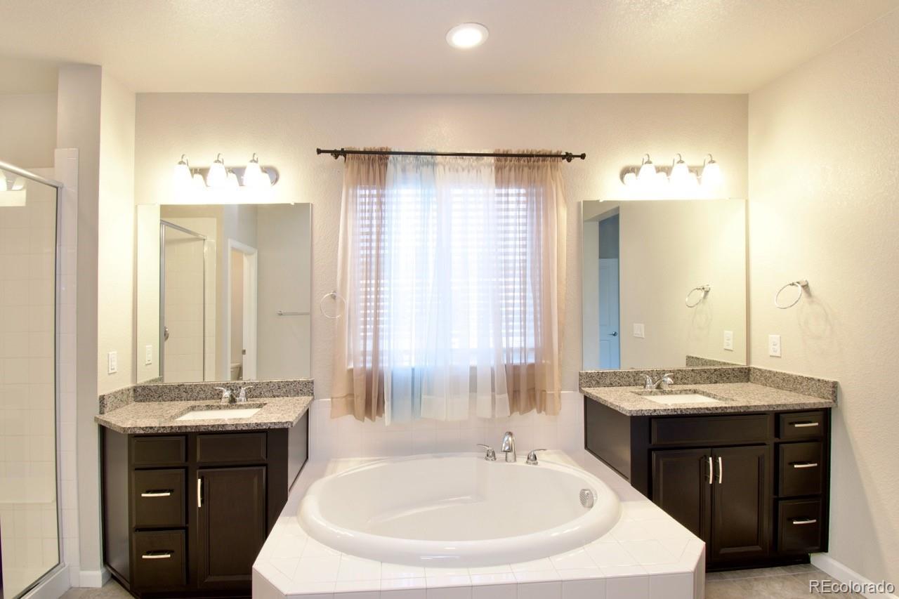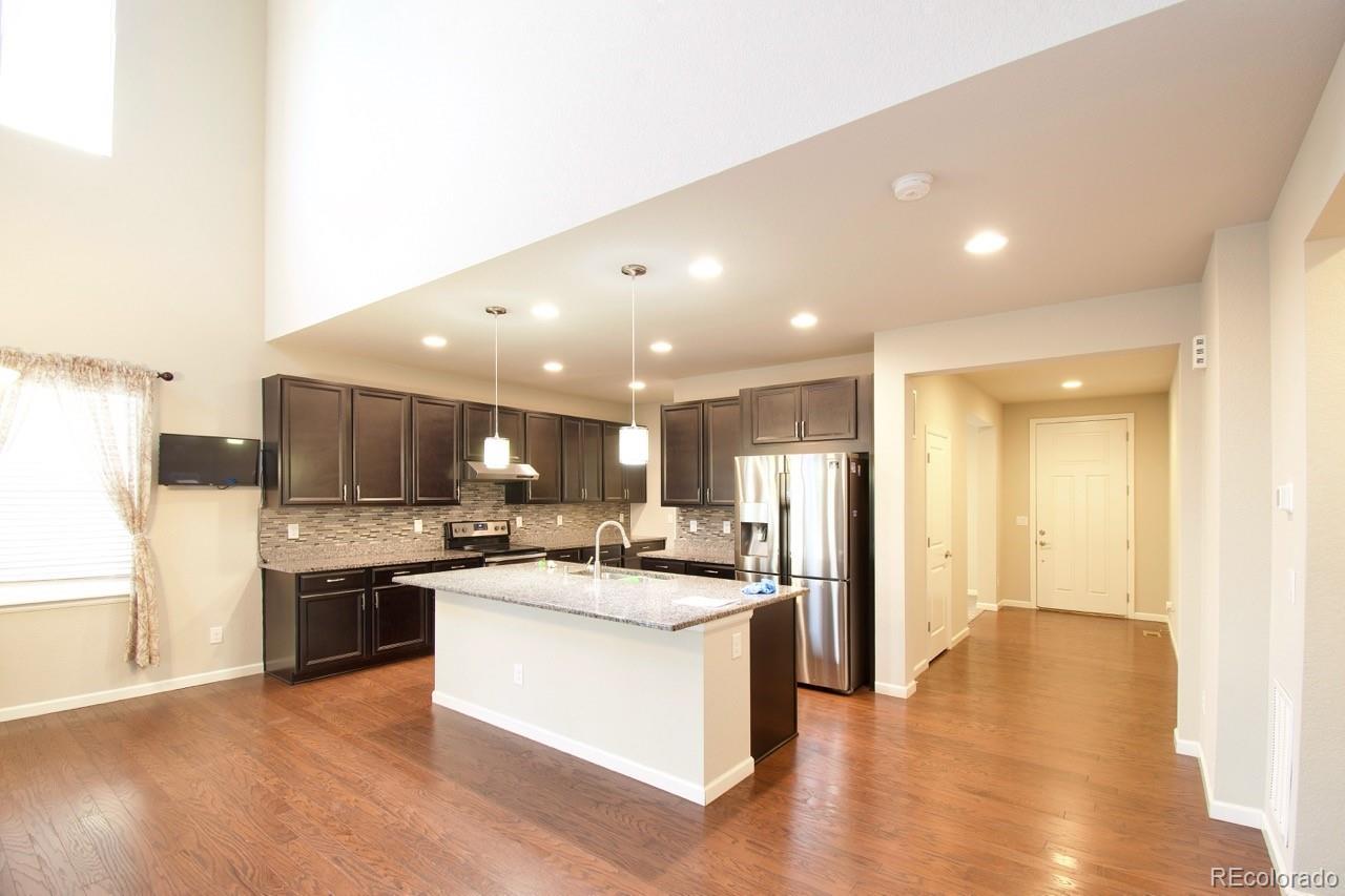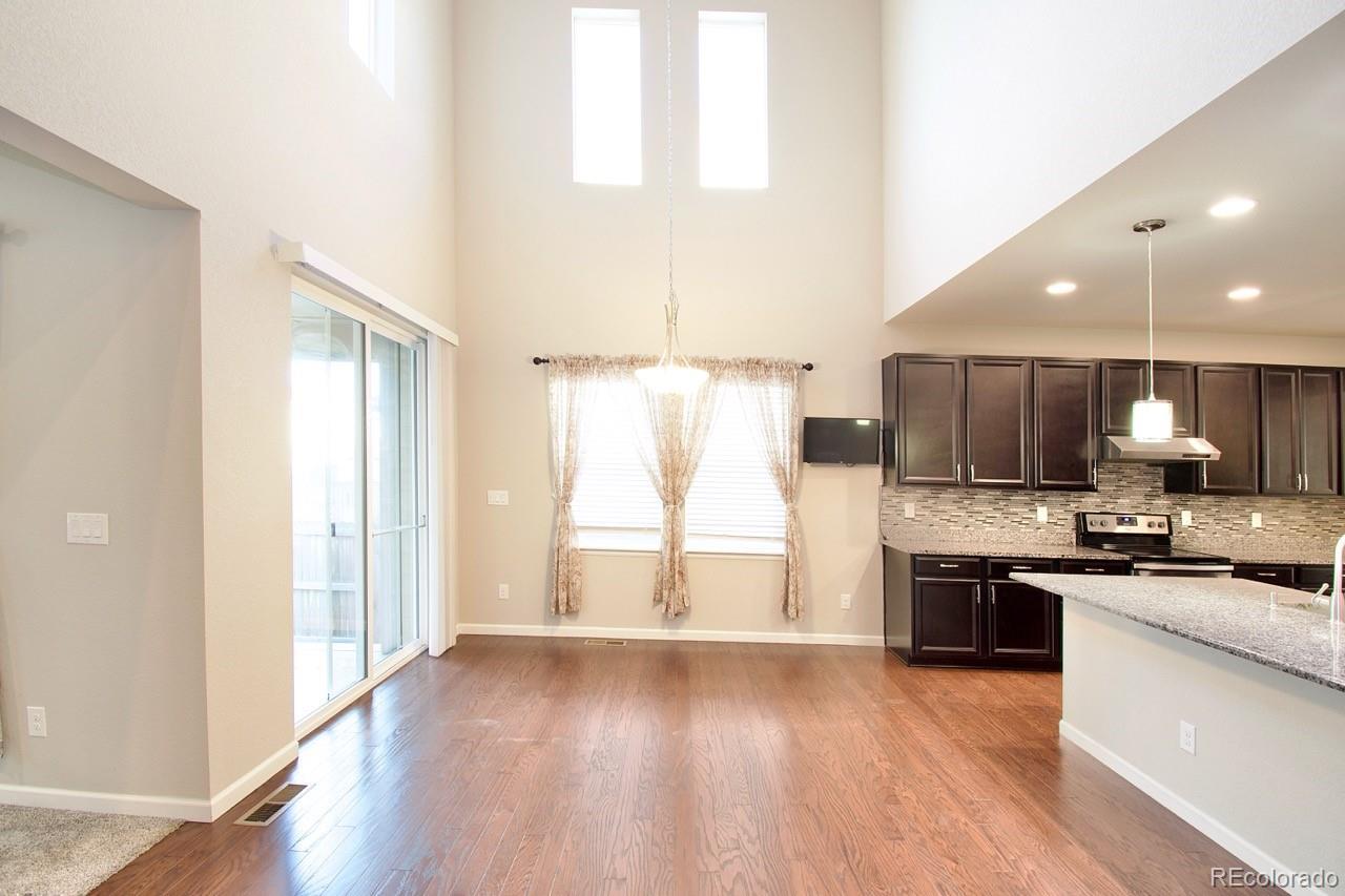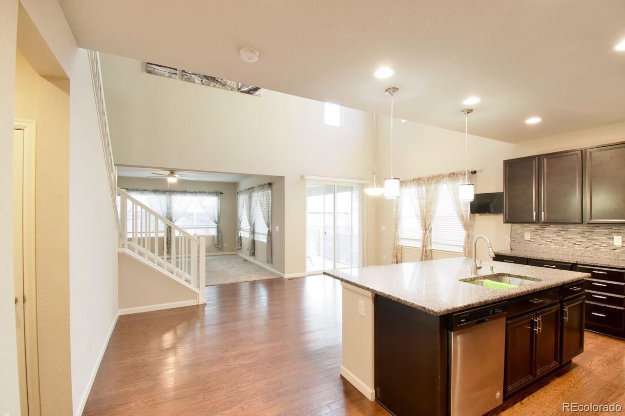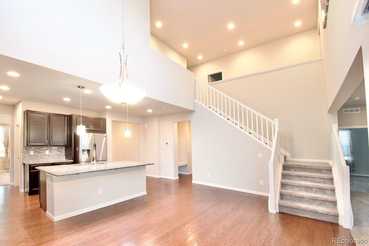 MOVE IN READY Beautiful 2 story 6 Beds 5 Baths Office 4070 Sq Ft FINISHED (2,734 Sq ft + 1336 Sq ft finished basement) 3 tandem cars garage in Amber Creek. Main level High Ceiling Dining room with open to kitchen with Stainless Steel appliances & Granite counter tops, eat-at island with pendent lights. Great size master covert tray ceiling with large size 5 piece master bath connected to walking closet. 3 beds & 2 baths plus laundry room on upper level. 1 bedroom with bath on main level. 1 bed 1 bath Office plus bar in the basement. Enjoy the mountain scene on the front home and covered patio, pergola & concrete slab to host guest over bbq on backyard. Great school district , Walk distance to park & outdoor basketball court, minutes away from grocery, restaurant, bank, Denver Outlet Mall, Orchard Mall, Lark Ridge Mall, I 25, C470 & many more