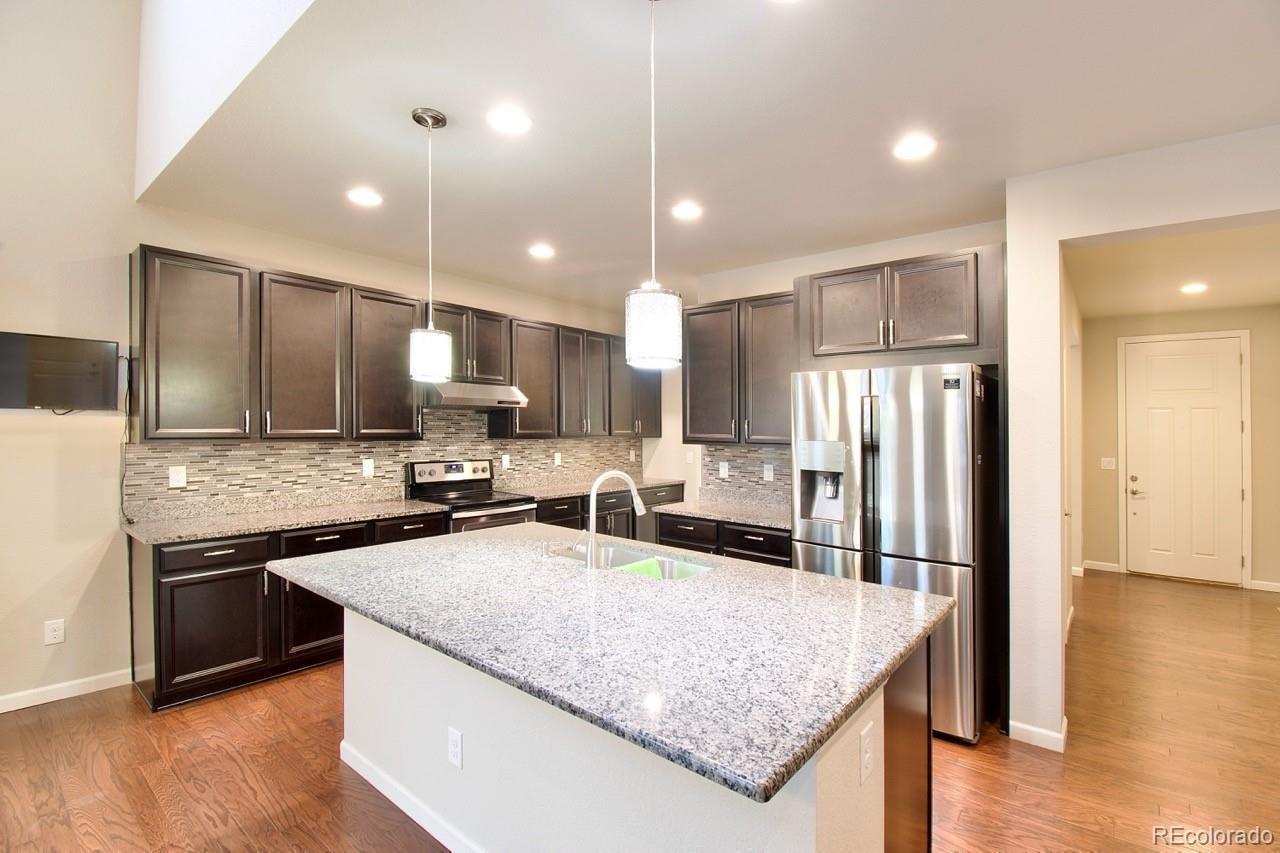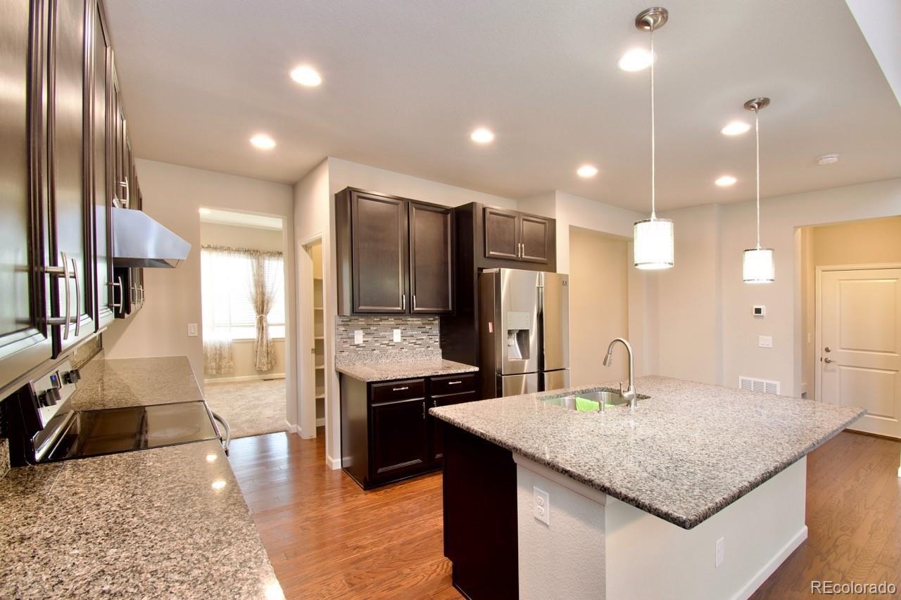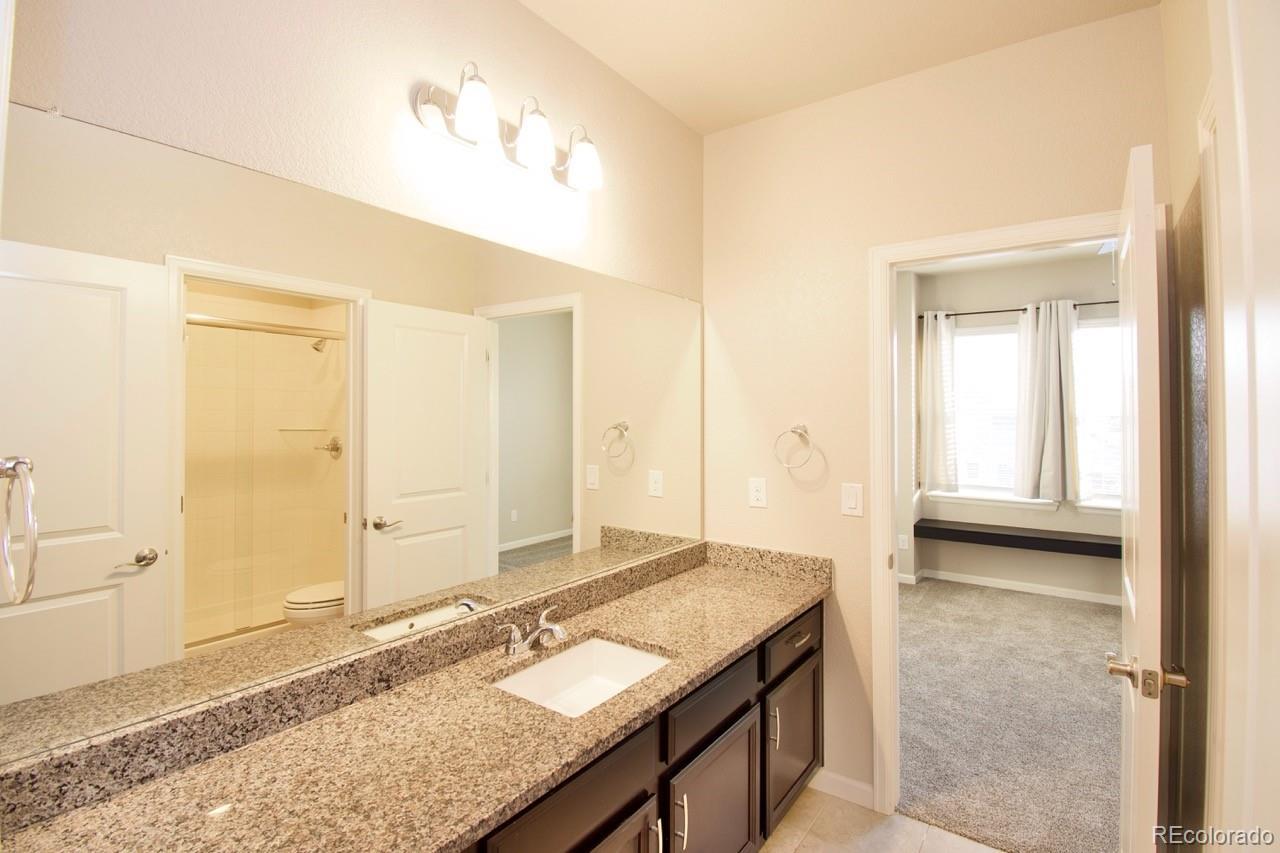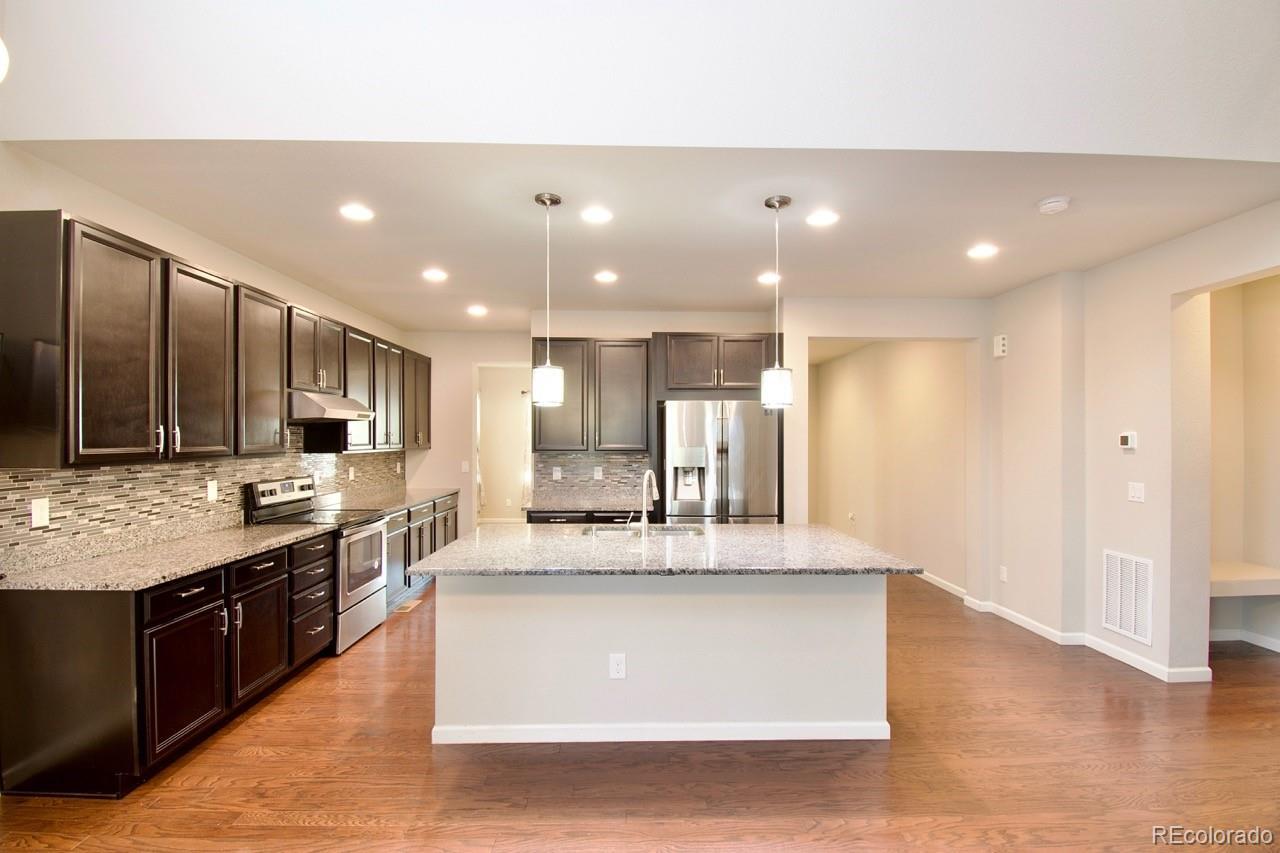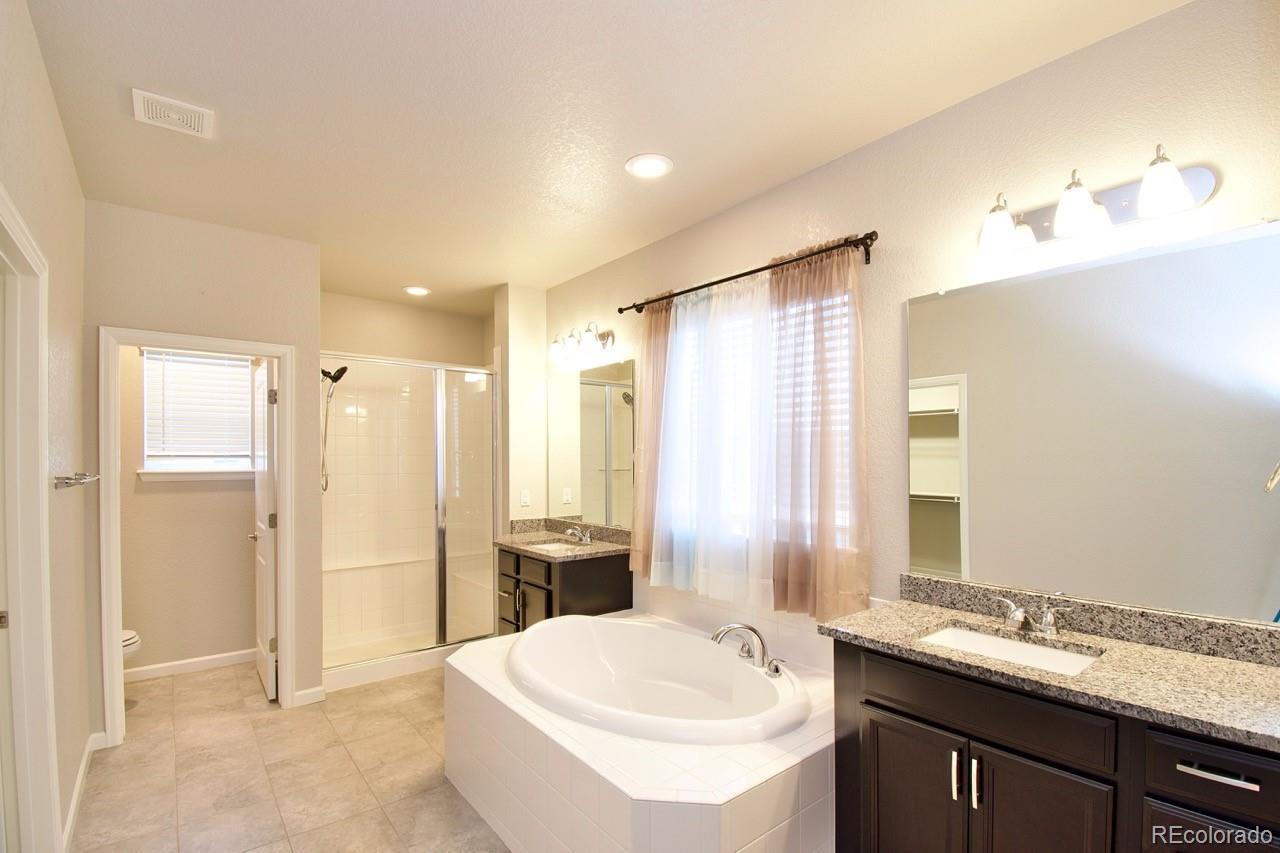 MOVE IN READY Beautiful 2 story 6 Beds 5 Baths Office 4070 Sq Ft FINISHED (2,734 Sq ft + 1336 Sq ft finished basement) 3 tandem cars garage in Amber Creek. Main level High Ceiling Dining room with open to kitchen with Stainless Steel appliances & Granite counter tops, eat-at island with pendent lights. Great size master covert tray ceiling with large size 5 piece master bath connected to walking closet. 3 beds & 2 baths plus laundry room on upper level. 1 bedroom with bath on main level. 1 bed 1 bath Office plus bar in the basement. Enjoy the mountain scene on the front home and covered patio, pergola & concrete slab to host guest over bbq on backyard. Great school district , Walk distance to park & outdoor basketball court, minutes away from grocery, restaurant, bank, Denver Outlet Mall, Orchard Mall, Lark Ridge Mall, I 25, C470 & many more