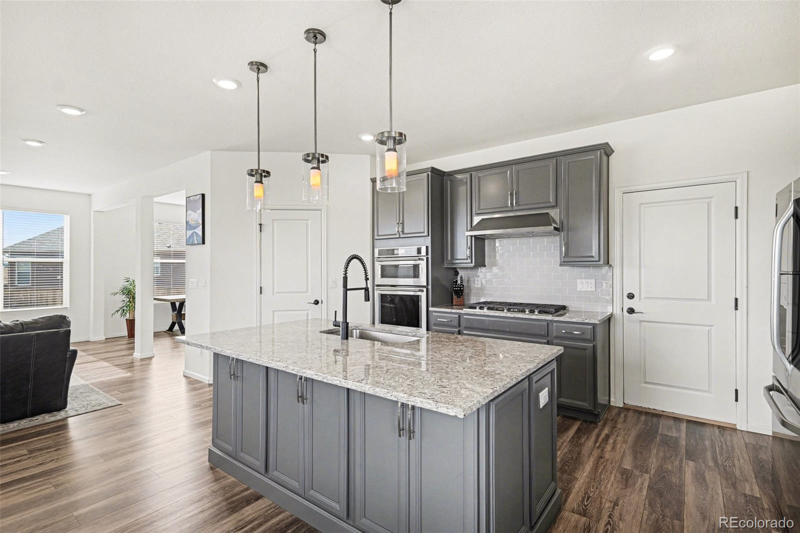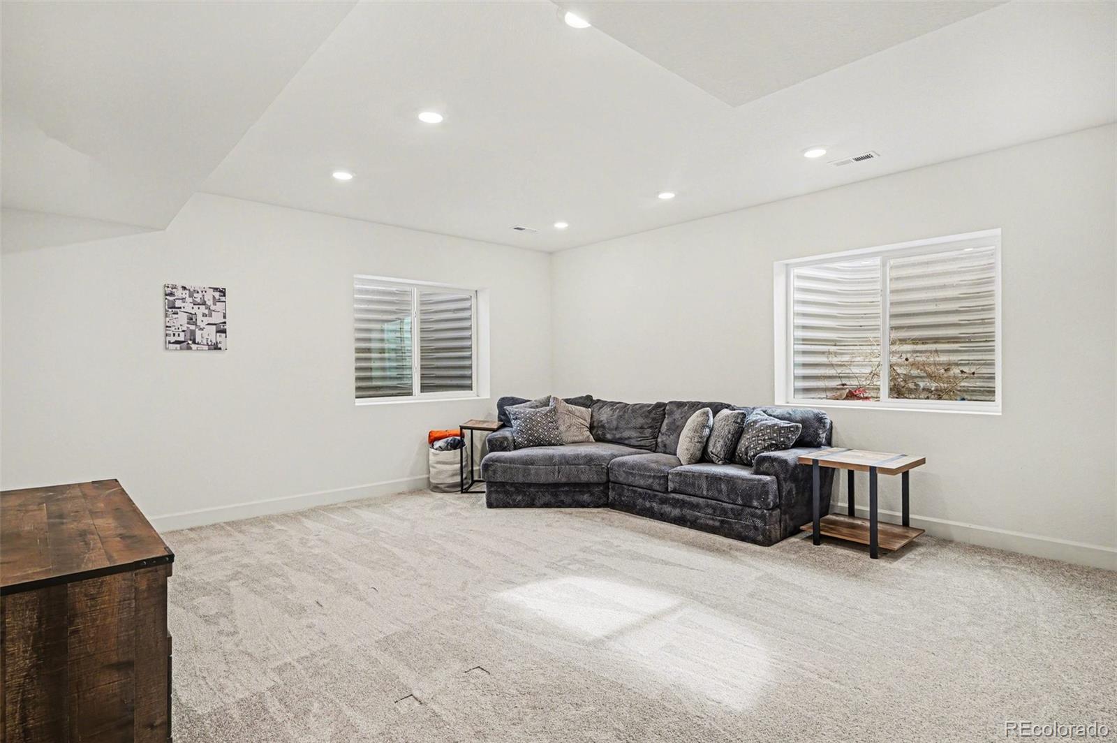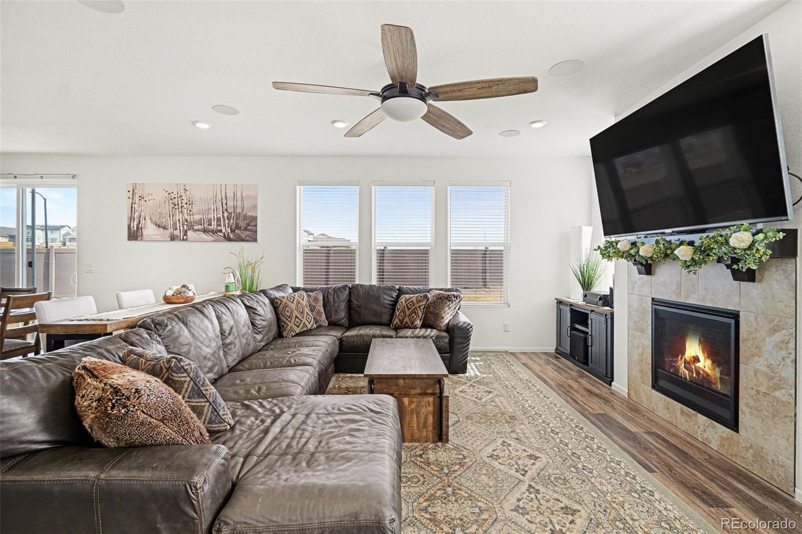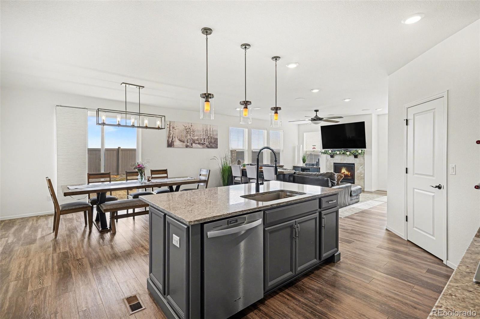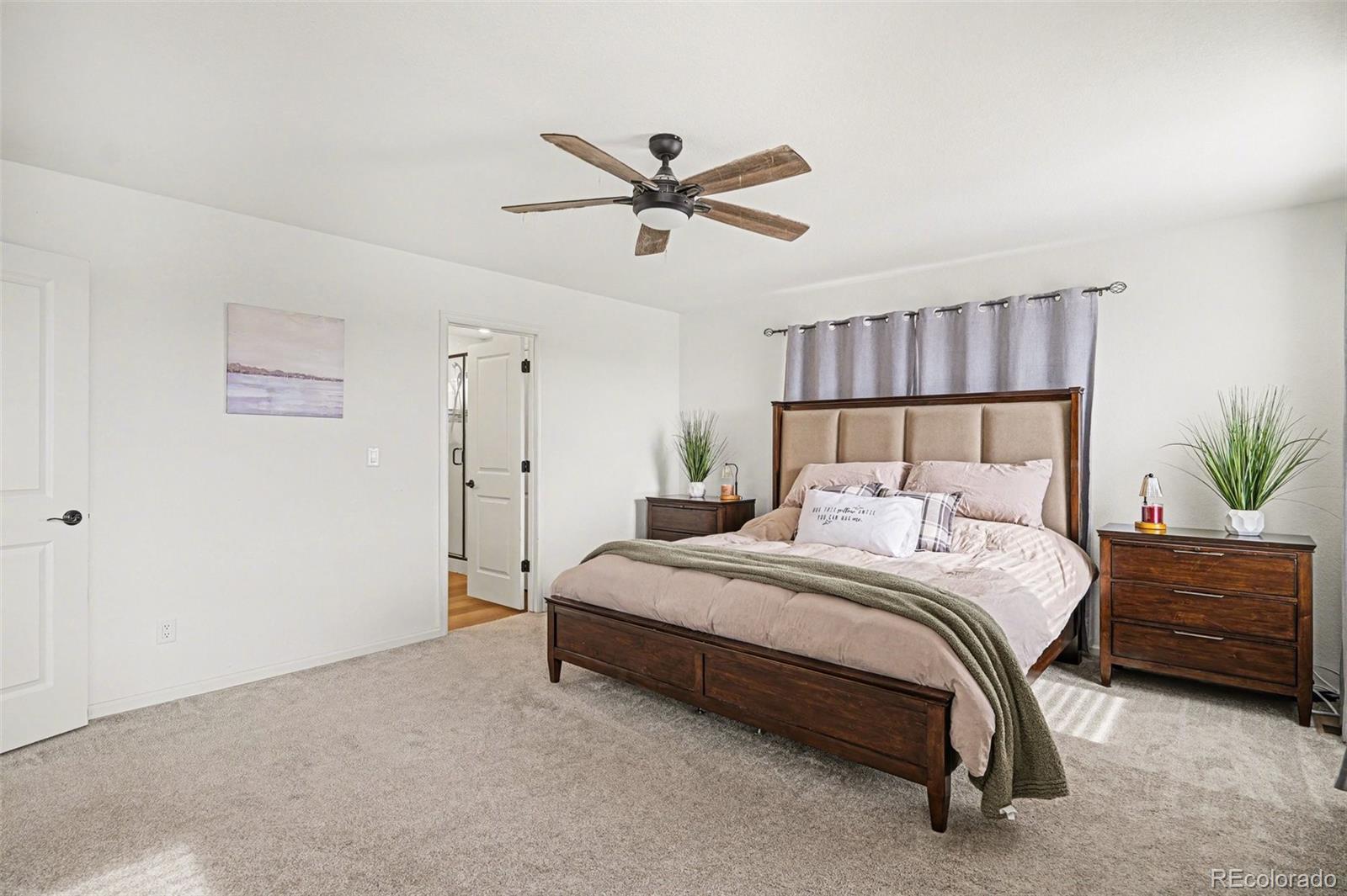 Sky Ranch 2 Story w/ Finish Basement on .24 Acre Lot! Sellers have a VA Assumable 2.875% Interest Rate. Kitchen Features 42" Shaker Cabinetry, Gourmet Stainless Steel Appliances w/ Gas Cook Top. Modern Pendant Lighting, Granite Slab Counters & Island w/ Seating. Extremely Open Floor Plan w/ LVP Flooring on the Main Floor, Main Floor Office, 4 Bedrooms Upstairs w/ Large Primary Suite & Additional Ensuite Bathroom in Secondary Bedroom. Large Rec Room in Finished Basement w/ Additional Bedroom and Full Bathroom. Jellyfish Permanent Outdoor Smart Lighting. Monthly Energy Savings w/ Solar. Close to Buckley Space Force Base, Shopping and Dining, APS Harmony Ridge P-8 School, Adonea Community Pool and Park, plus Backs to Open Space and First Creek.