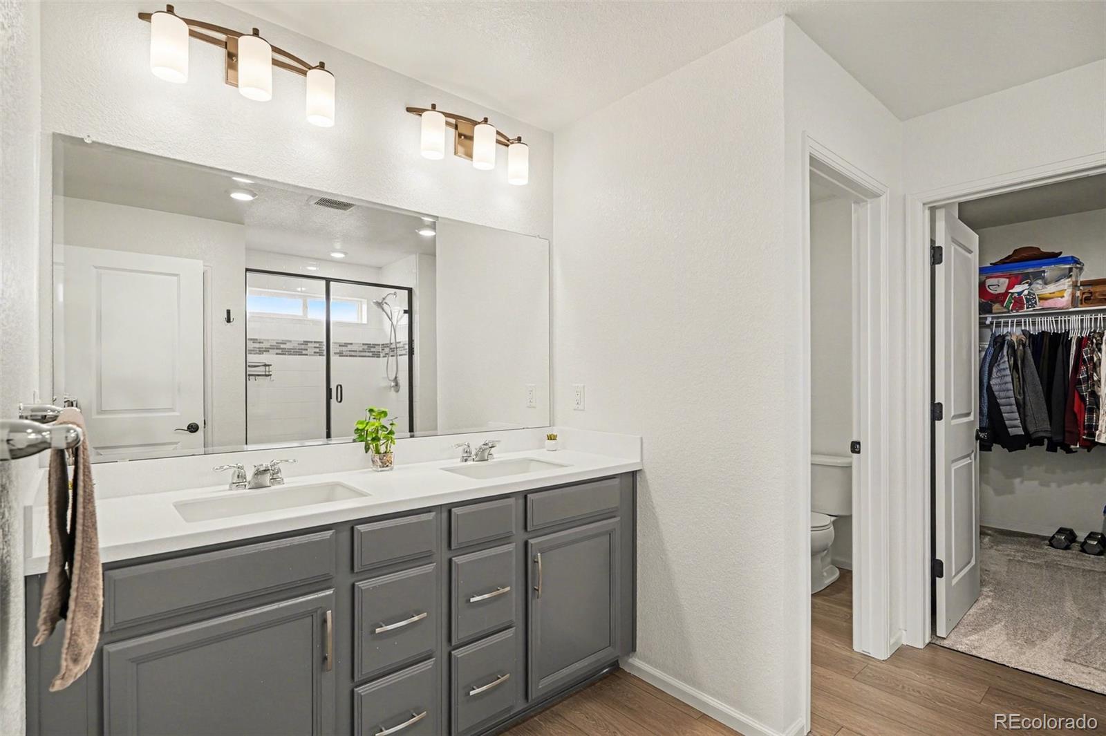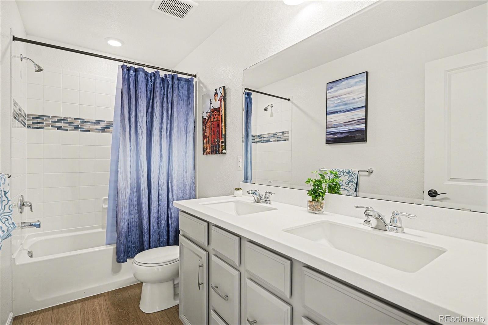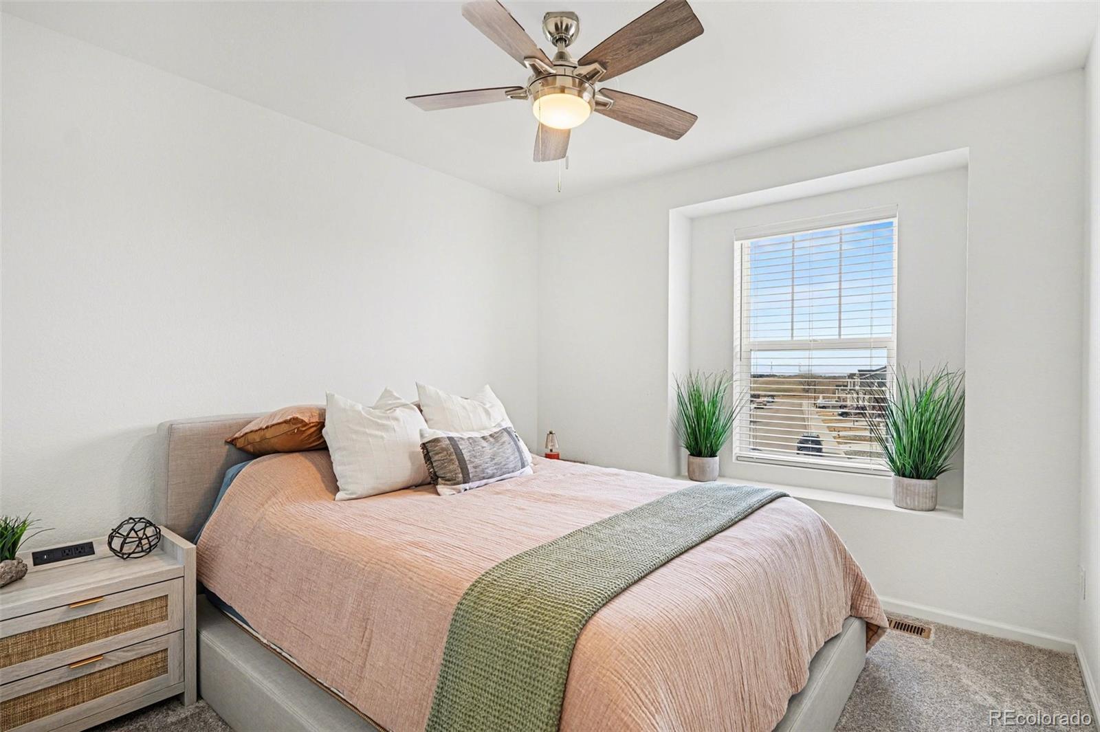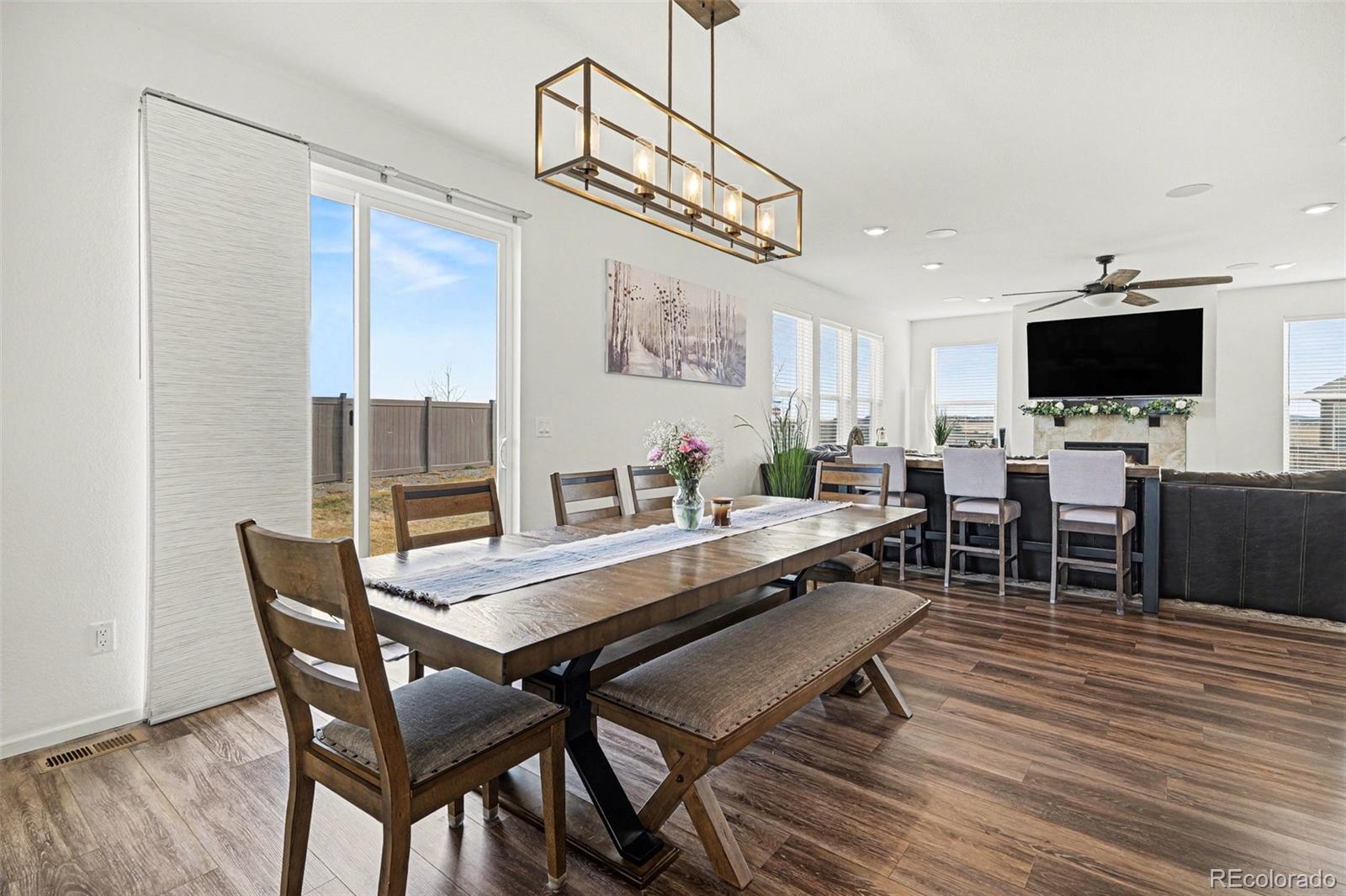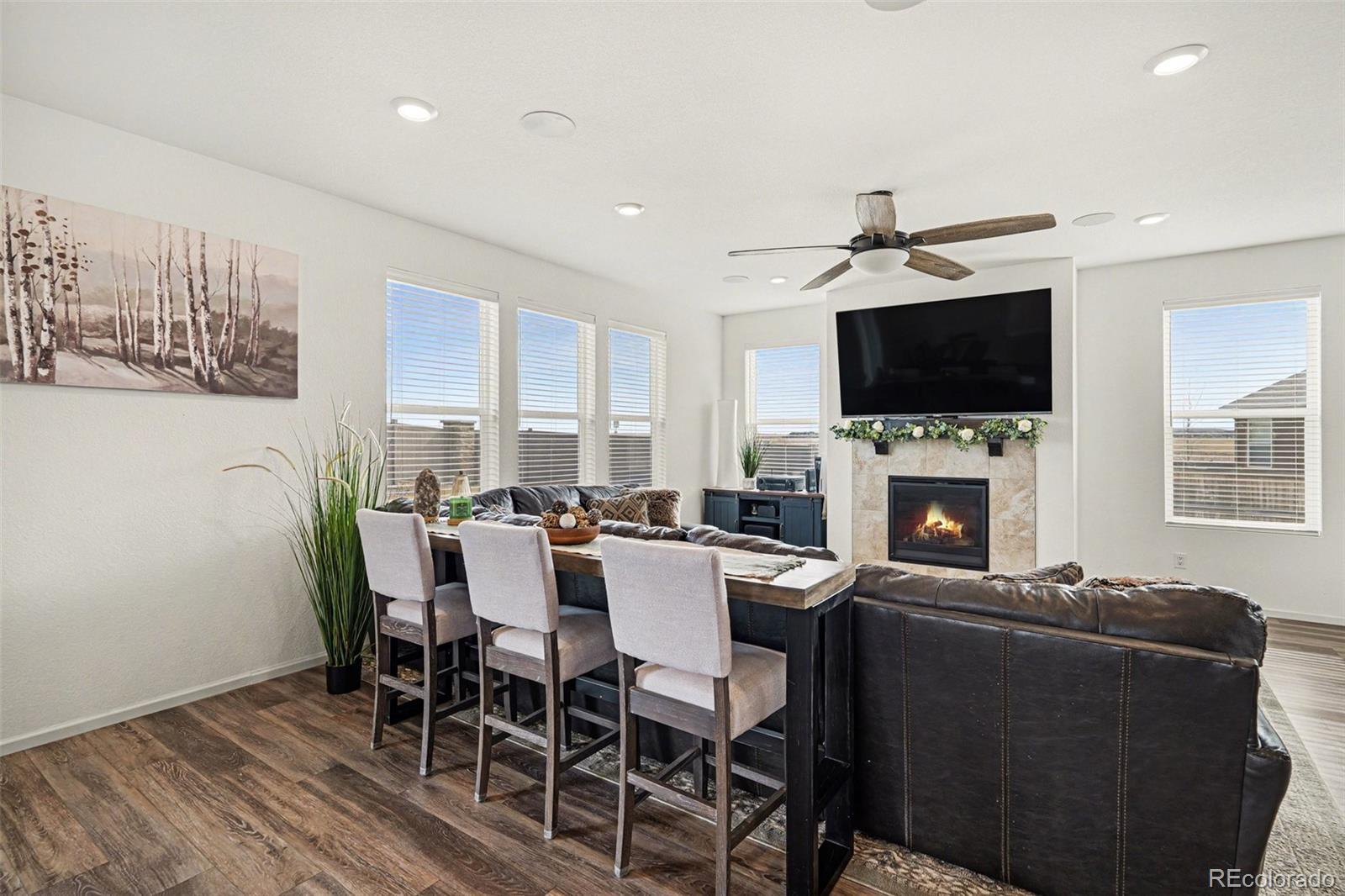 Sky Ranch 2 Story w/ Finish Basement on .24 Acre Lot! Sellers have a VA Assumable 2.875% Interest Rate. Kitchen Features 42" Shaker Cabinetry, Gourmet Stainless Steel Appliances w/ Gas Cook Top. Modern Pendant Lighting, Granite Slab Counters & Island w/ Seating. Extremely Open Floor Plan w/ LVP Flooring on the Main Floor, Main Floor Office, 4 Bedrooms Upstairs w/ Large Primary Suite & Additional Ensuite Bathroom in Secondary Bedroom. Large Rec Room in Finished Basement w/ Additional Bedroom and Full Bathroom. Jellyfish Permanent Outdoor Smart Lighting. Monthly Energy Savings w/ Solar. Close to Buckley Space Force Base, Shopping and Dining, APS Harmony Ridge P-8 School, Adonea Community Pool and Park, plus Backs to Open Space and First Creek.
