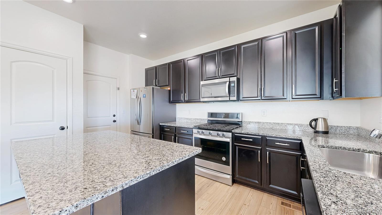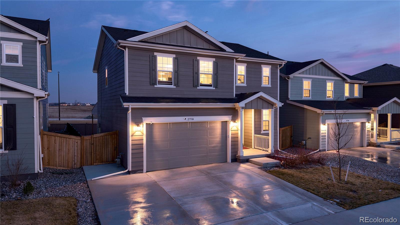Welcome to 27584 East 6th Drive! This charming 3-bedroom, 3-bath home is located in the highly sought-after Sky Ranch community. The main level features a bright and open floor plan with luxury vinyl plank flooring throughout the main living areas. You will enjoy cooking and entertaining in the gourmet kitchen - equipped with an extended island, generous cabinetry, and pantry. Upstairs, you'll find a spacious loft ideal for a home office, media space, or play area, plus a convenient laundry room and a luxurious primary suite with a 4-piece bath. Parking is a breeze with 2 car attached garage. Step outside to enjoy the large covered patio and fully fenced backyard—great for relaxing or entertaining. Sky Ranch boasts spectacular views of the mountains and downtown Denver. Several onsite parks, picnic areas, playgrounds, and walking paths throughout the community. Just minutes from DIA, Gaylord Hotel Convention Center, plus quick access to E-470, I-70, and metro Denver Don’t miss out on this beautiful home in a vibrant community!