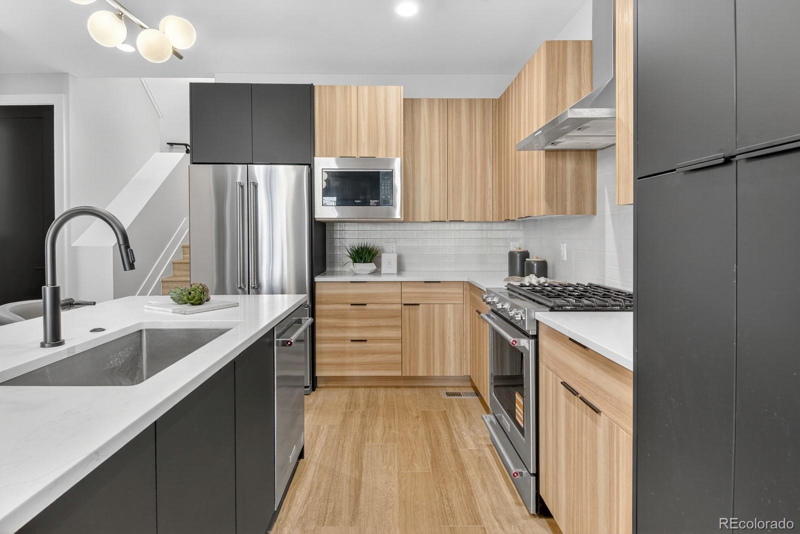 Modern luxury meets unbeatable location in this brand-new 3 bed, 3 bath duplex just two blocks from Denver’s 9th & Co development. With 1,777 square feet of thoughtfully designed living space, this home offers a rare blend of style, functionality, and low-maintenance comfort—ideal for young professionals, medical staff, or small families. Inside, enjoy an open-concept layout flooded with natural light, a gourmet kitchen with sleek modern finishes, and a full-floor primary suite featuring a spa-inspired bathroom, walk-in closet, and private balcony. Each level boasts its own outdoor space—including a rooftop deck with mountain views. The private, fenced yard is perfect for pets, kids, or quiet evenings outdoors, and the detached 1-car garage adds extra convenience. All this with no HOA fees. Located steps from Trader Joe’s, Cava, Postino, Frank & Rose Coffee Co., and more, you’re minutes from Cherry Creek, Rose Medical Center, and downtown Denver. This is refined city living in one of Denver’s most vibrant neighborhoods—schedule your private showing today.