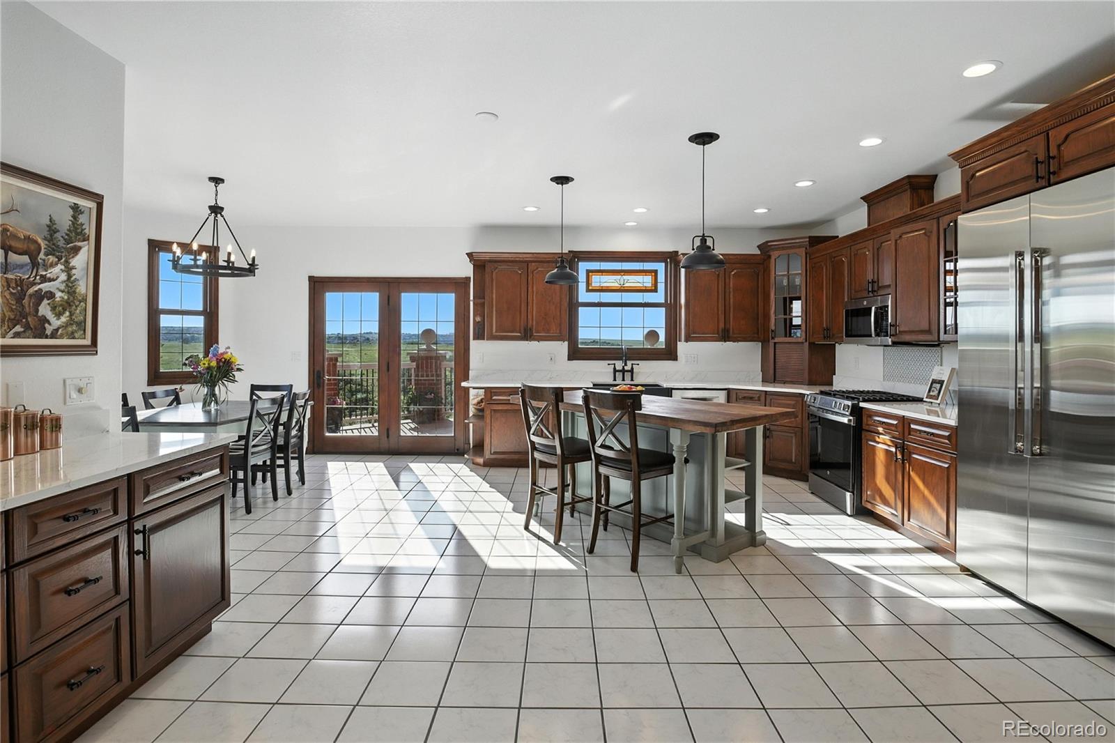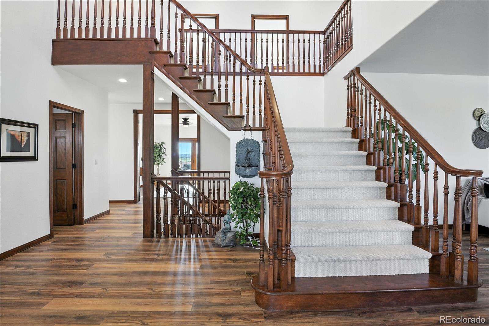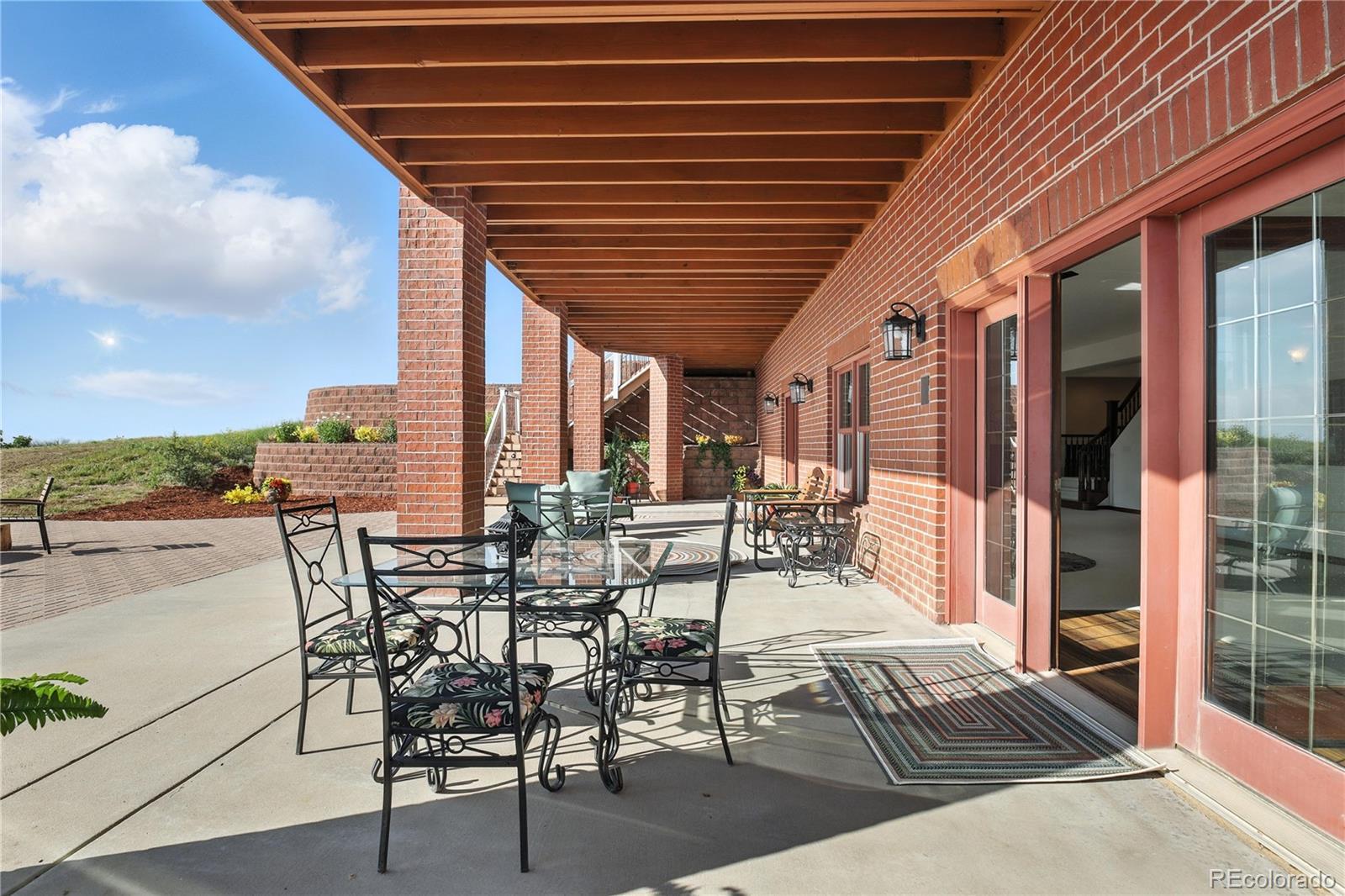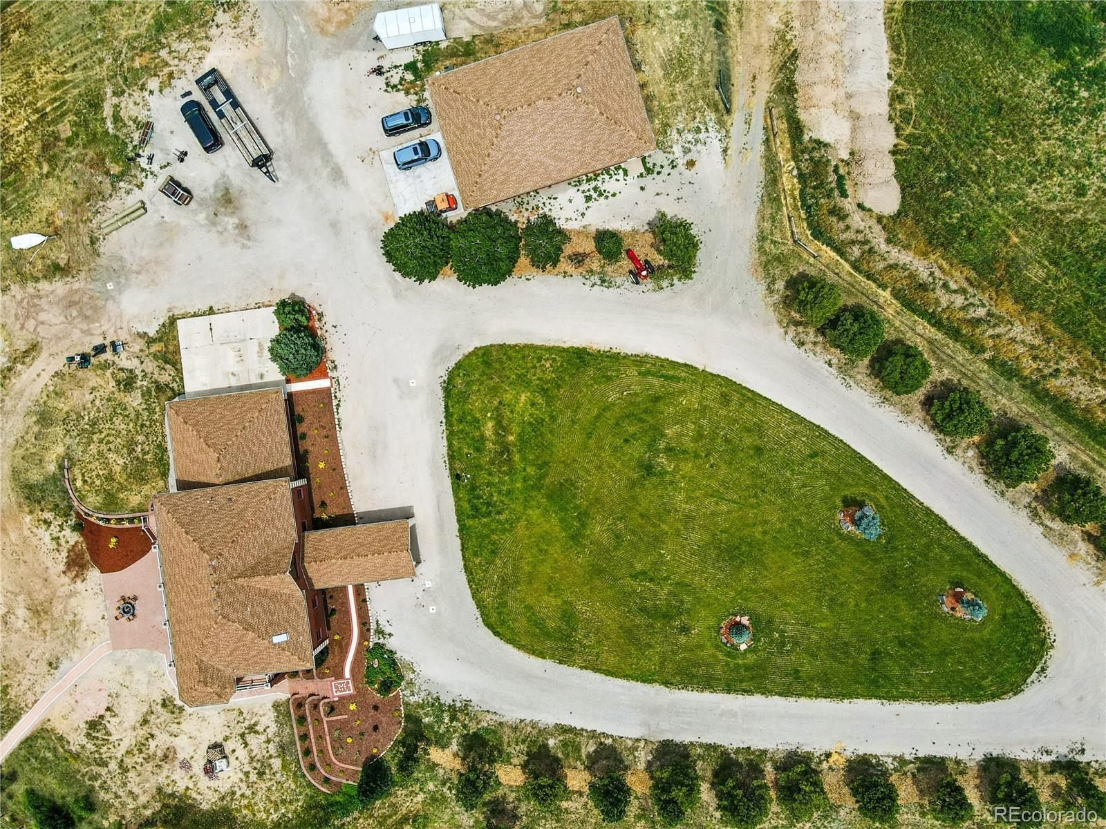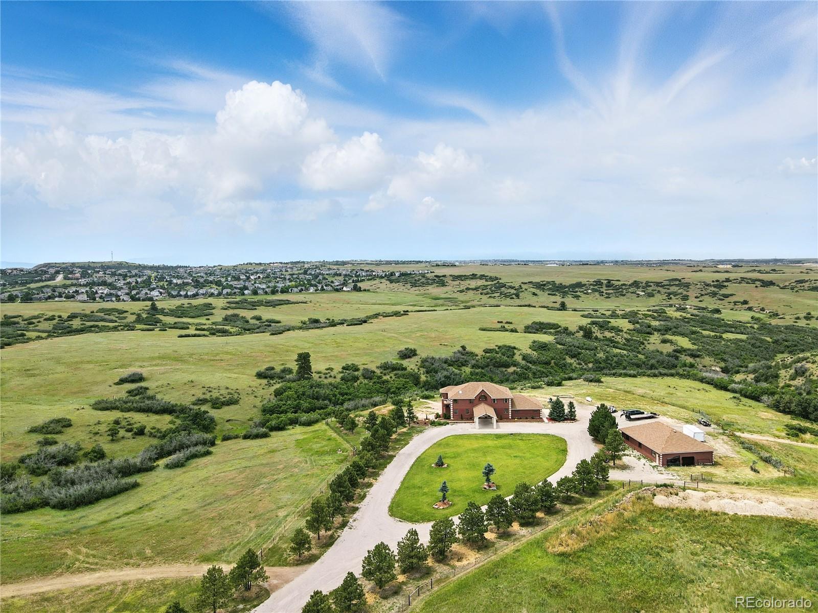 Experience unparalleled craftsmanship and breathtaking views in this meticulously remodeled 6,900 sq ft brick estate nestled on 33.5 acres of serene Colorado landscape. This 5-bedroom, 6-bathroom home features radiant in-floor heat, central vacuum, new light and plumbing fixtures, and custom-finished woodwork throughout. A grand foyer welcomes you beneath a designer Kevin Clarke chandelier equipped with a motorized winch for easy maintenance. The spacious layout includes a formal dining room for 12, a dedicated office with mountain views, and a basement retreat with a home theater, wine cellar/safe room, and walkout patio. Every bathroom has been luxuriously renovated with quartz or quartzite, custom tile showers, and new fixtures. The gourmet kitchen is a chef’s dream, boasting quartz countertops, top-tier appliances—including a JennAir Sub-Zero refrigerator, GE Prestige propane stove with built-in air fryer, Bosch dishwasher—plus a farmhouse sink with a mountain view, prep sink, and rainforest wood island. Seamless indoor-outdoor living is made easy with a large Trex deck, walkable trails, and patios that connect to lush surroundings. Storage is abundant with a huge laundry/craft room, 1500 sq ft heated 3-car garage with attic access, and a 2400 sq ft brick shop with an additional 800 sq ft woodworking space—complete with its own utilities, RV hookups, and 220-amp service. Outdoors, the property is a recreational paradise with two fully lined, fish-stocked ponds (one with a dock), archery and shooting ranges, multiple drainages for ATV or bike trails, and wildlife-viewing stands amid mature ponderosa pines. Enjoy a gated entrance with full security, terraced landscaping, heated livestock drinkers, and fenced pastures seeded with prairie grass. With flat ground perfect for future amenities like a pickleball court or riding arena, this estate seamlessly blends luxury living with nature, privacy, and potential. *Showings still during U\C*
