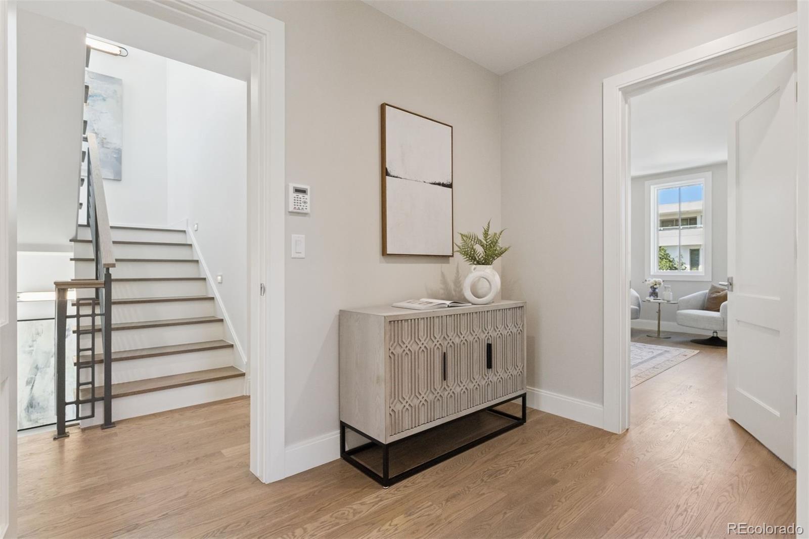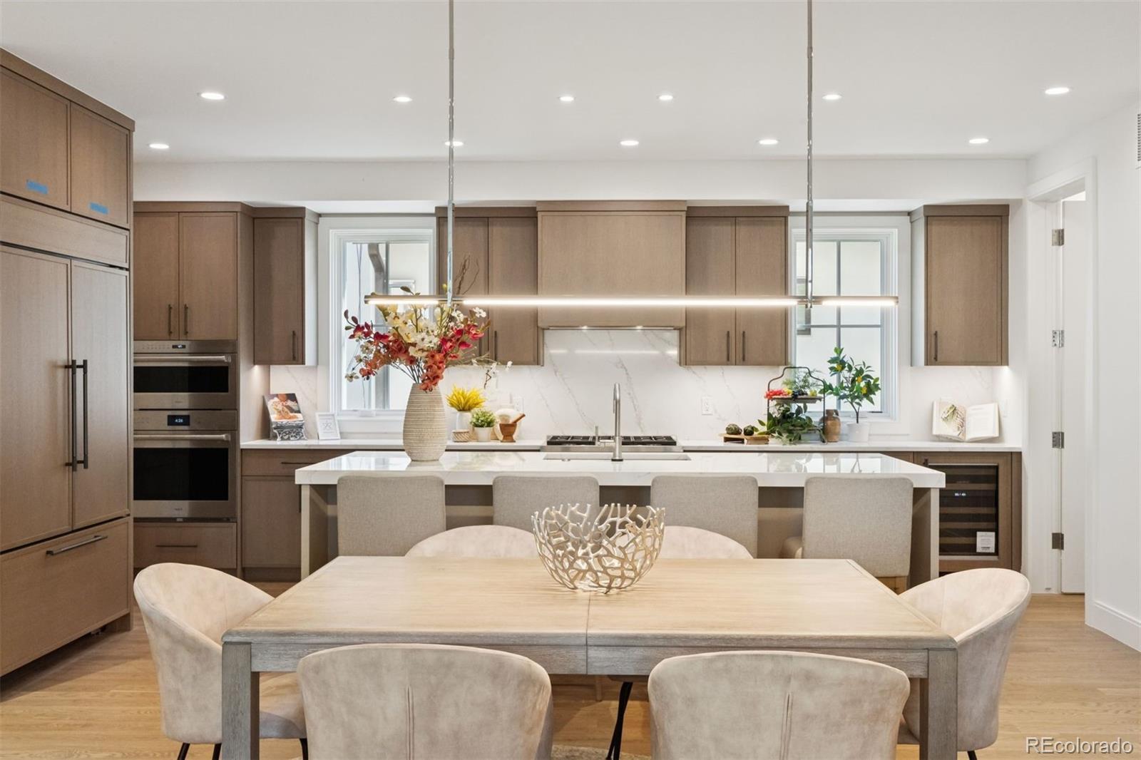 You will be highly intrigued and impressed with this brand new and gorgeous custom brick townhome/duplex, just 1.5 blocks from the heart of Cherry Creek North. Beautifully designed by notable architect Carlos Alvarez and crafted by esteemed builder Jason Squibb, in combination with seasoned developer Gene Shofner; this is an exciting and rare buyer opportunity. A beautiful floor plan has been created in the spirit of comfort, luxury, entertaining and personal living spaces that are merged with a 4-stop elevator. This 3-bedroom, 4.5-bath residence blends timeless elegance with contemporary finishes. Enjoy just over 4,500 finished square feet of sophisticated living space featuring custom cabinetry, slab quartz countertops, and a premium kitchen including Sub-Zero, Wolf, and Miele appliances. Entertain with joy in this main-floor living areas with floor-to-ceiling windows providing abundant natural light, leading out to a generously landscaped and delightful Cherry Creek style patio. Retreat to a luxurious primary suite spanning the entire 2nd floor, with its own fireplace, heated bath floors, freestanding tub, and oversized custom closet space. Upstairs, all secondary bedrooms are en-suite, and the upper-level loft offers versatility as a home office, guest suite, or additional living space with access to separate southern and northern-facing decks. Additional highlights include white oak hardwoods, surround sound pre-wire, two-car insulated garage with EV outlet, and professionally landscaped outdoor spaces with irrigation and fencing. This is Cherry Creek living at its finest—just a minute away from world-class shopping, dining, and galleries.