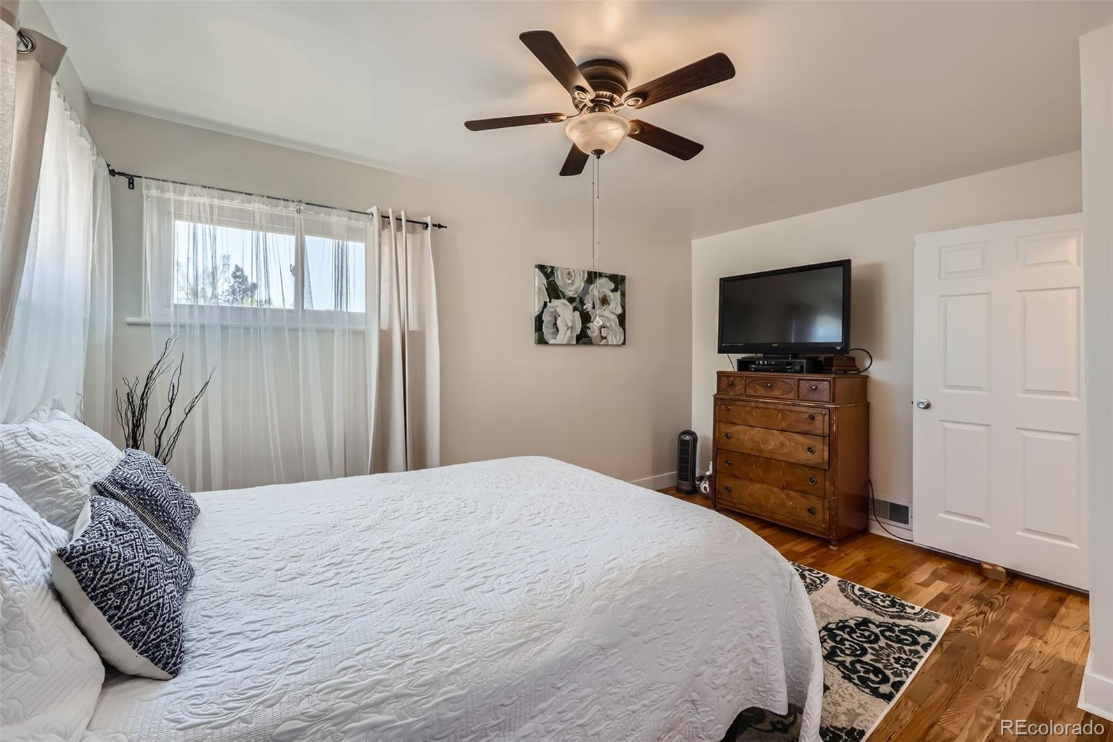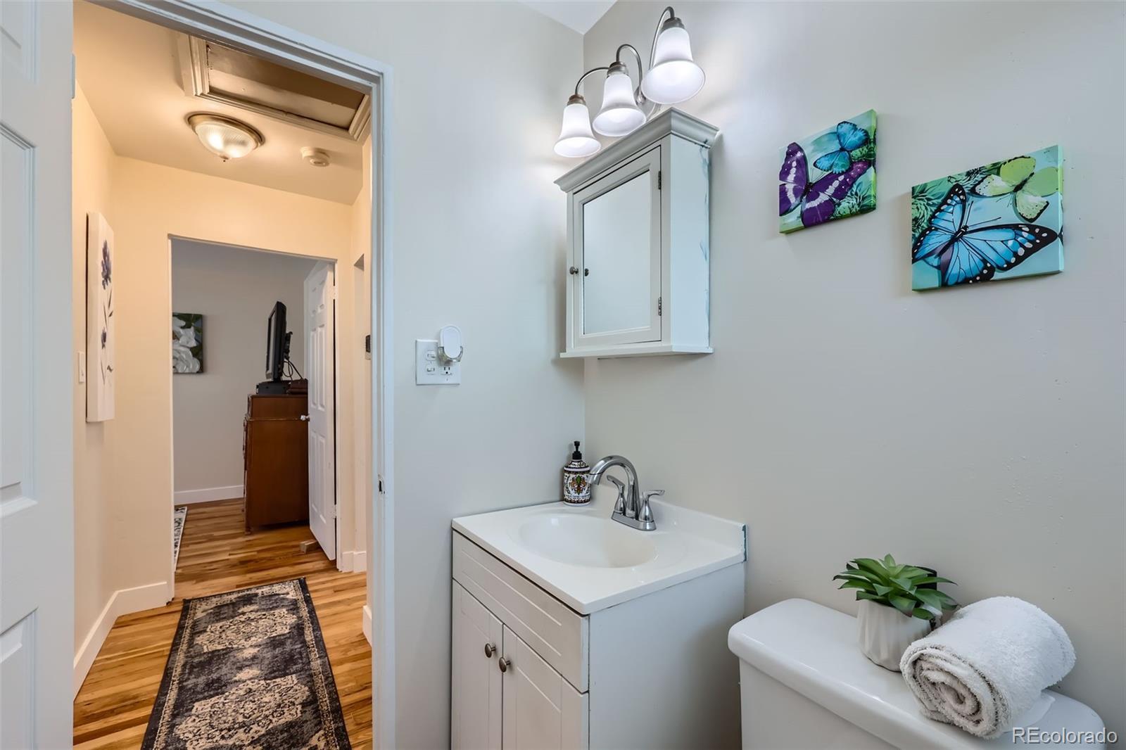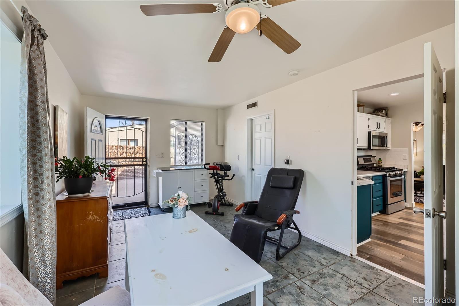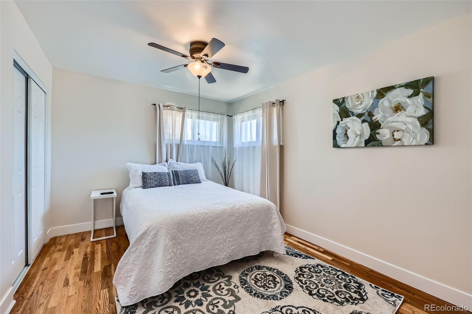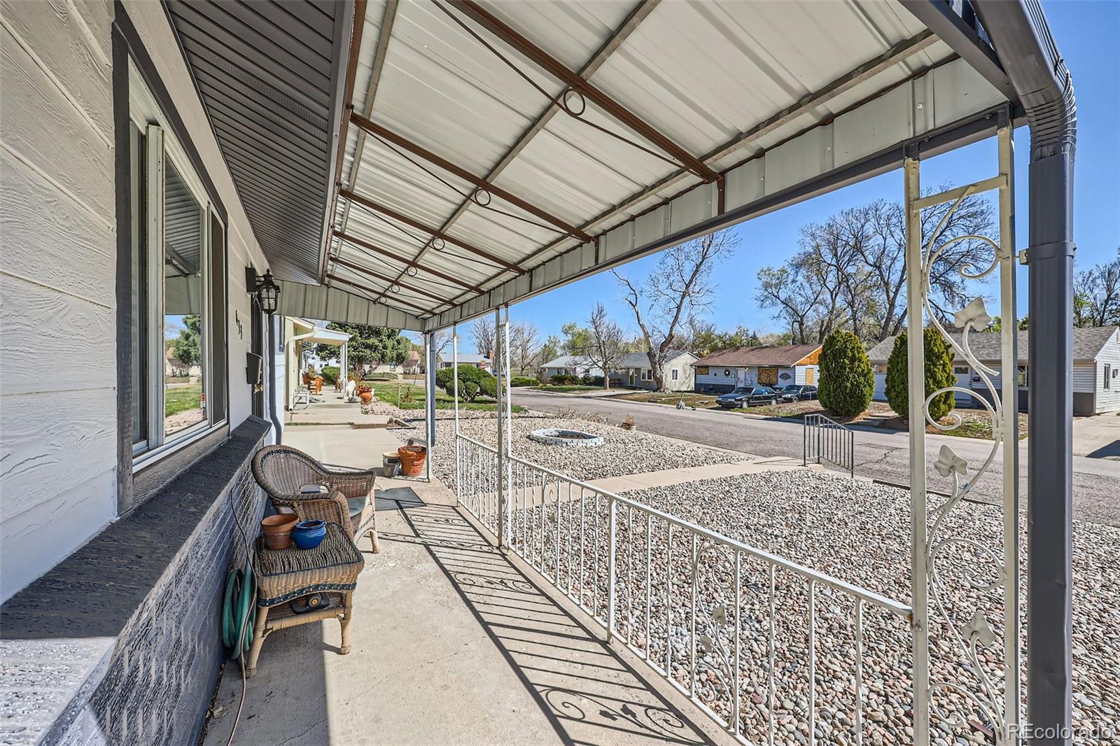 This 1954, beautifully updated 2/3-bedroom 1-bath bungalow offers an open floor plan and shows pride in ownership. Abundant natural light beams throughout the inviting interior with fresh paint throughout. Radiant refinished original hardwood floors. The living room and dining area offer recessed lighting and crown molding. The kitchen features laminate countertops, new backsplash, stainless-steel finished appliances with gas range. The back permitted back room can be used as a 3rd bedroom, office, workout, or bonus room has access to the laundry utility room and backyard. The exterior offers new wood siding, fresh paint, a newer roof (2019), newer furnace and new light fixtures. Enjoy the Colorado weather all year long under the front covered patio. Nestled in a prime location, this property offers modern living with convenience of being close to grocery stores, restaurants and entertainment. Whether you're looking to relax in the updated living spaces or explore the vibrant local area, this home provides the perfect balance of comfort and accessibility. Don't miss out on this incredible opportunity to own a stylish and conveniently located home!