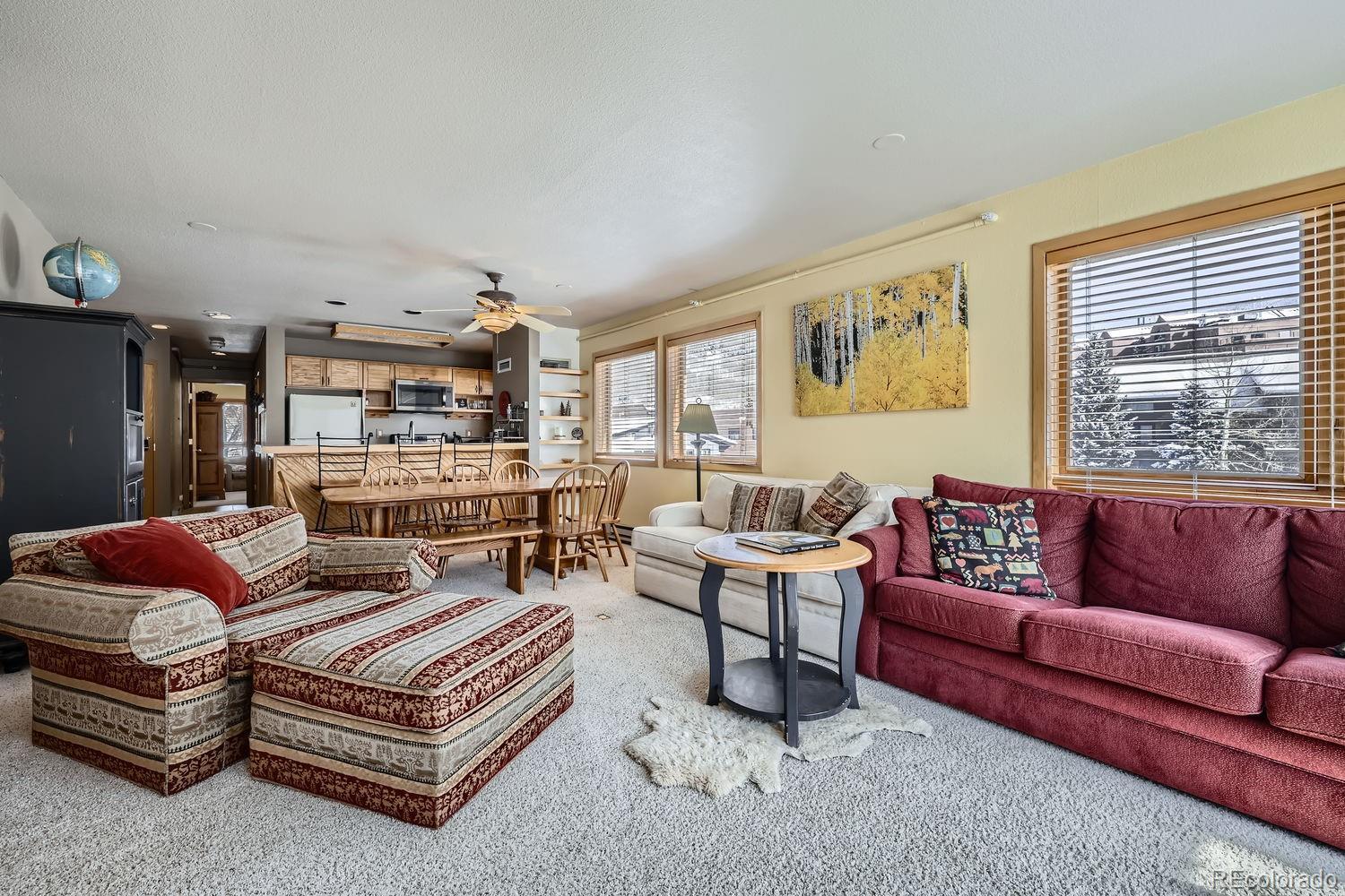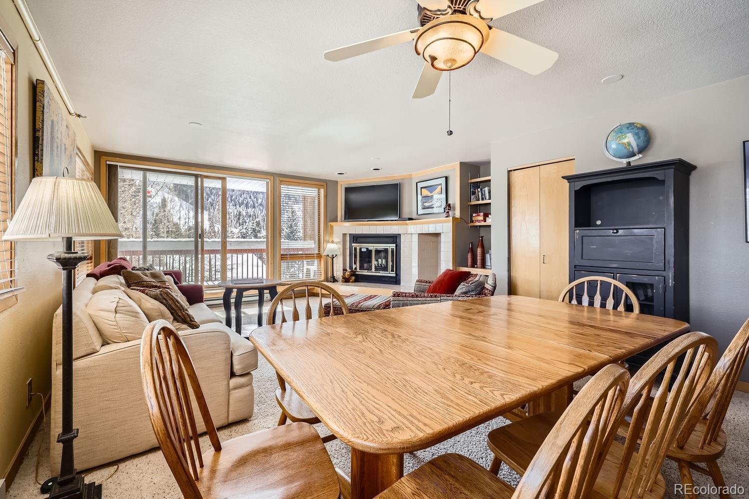 Enjoy breathtaking ski slope views from this oversized 2-bedroom, 2-bath condo, perfect for your next Keystone getaway. This spacious retreat comfortably sleeps up to 8 guests and is designed to provide the ultimate in comfort and convenience. The main floor offers a spacious primary bedroom and full bathroom as well as an open concept living, dining, and kitchen. Ideal for gathering and entertaining with seamless flow between spaces. Enjoy the warmth of the fireplace as you relax after a day on the slopes. Step out onto the large deck for stunning views of the slopes. The upper level is home to a giant second bedroom with vaulted ceilings – this spacious room features a second fireplace and can easily accommodate large groups or families with three queen size beds and a full bathroom. Additional amenities at Liftside include an indoor pool and hot tub, a great place to relax and unwind after an adventurous day. Garage parking to keep your vehicle secure and out of the elements. Located just a short walk from the Mountain House base area, you'll have easy access to Keystone’s ski slopes and all the fun the mountain has to offer. This condo offers the perfect combination of space, comfort, and convenience. Make it your home base for an unforgettable Keystone experience!