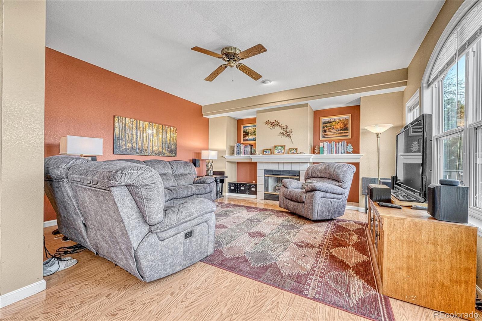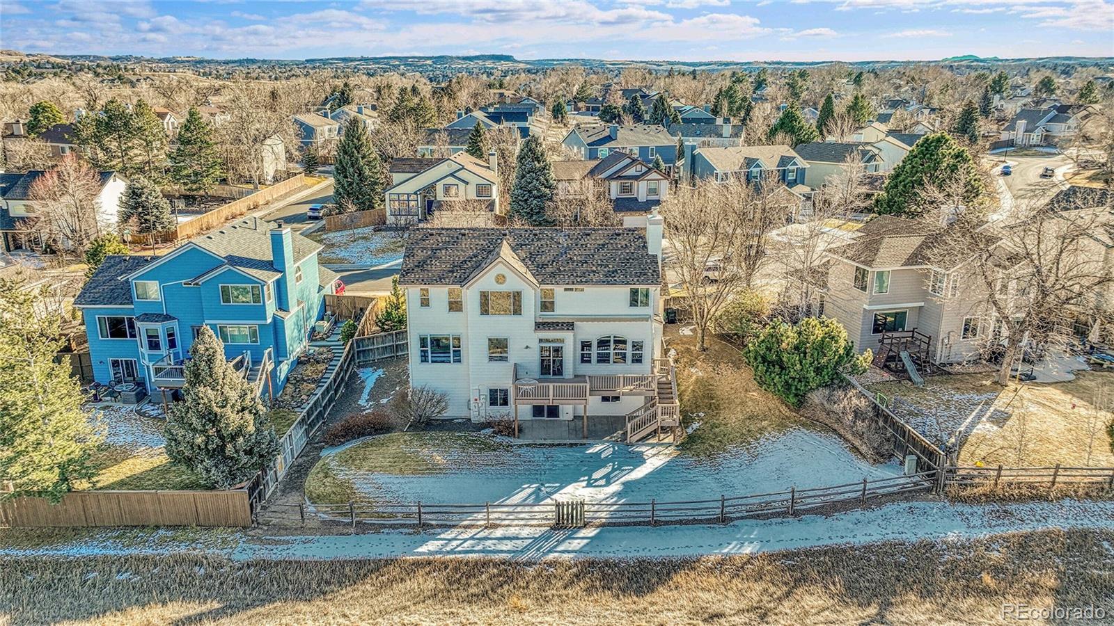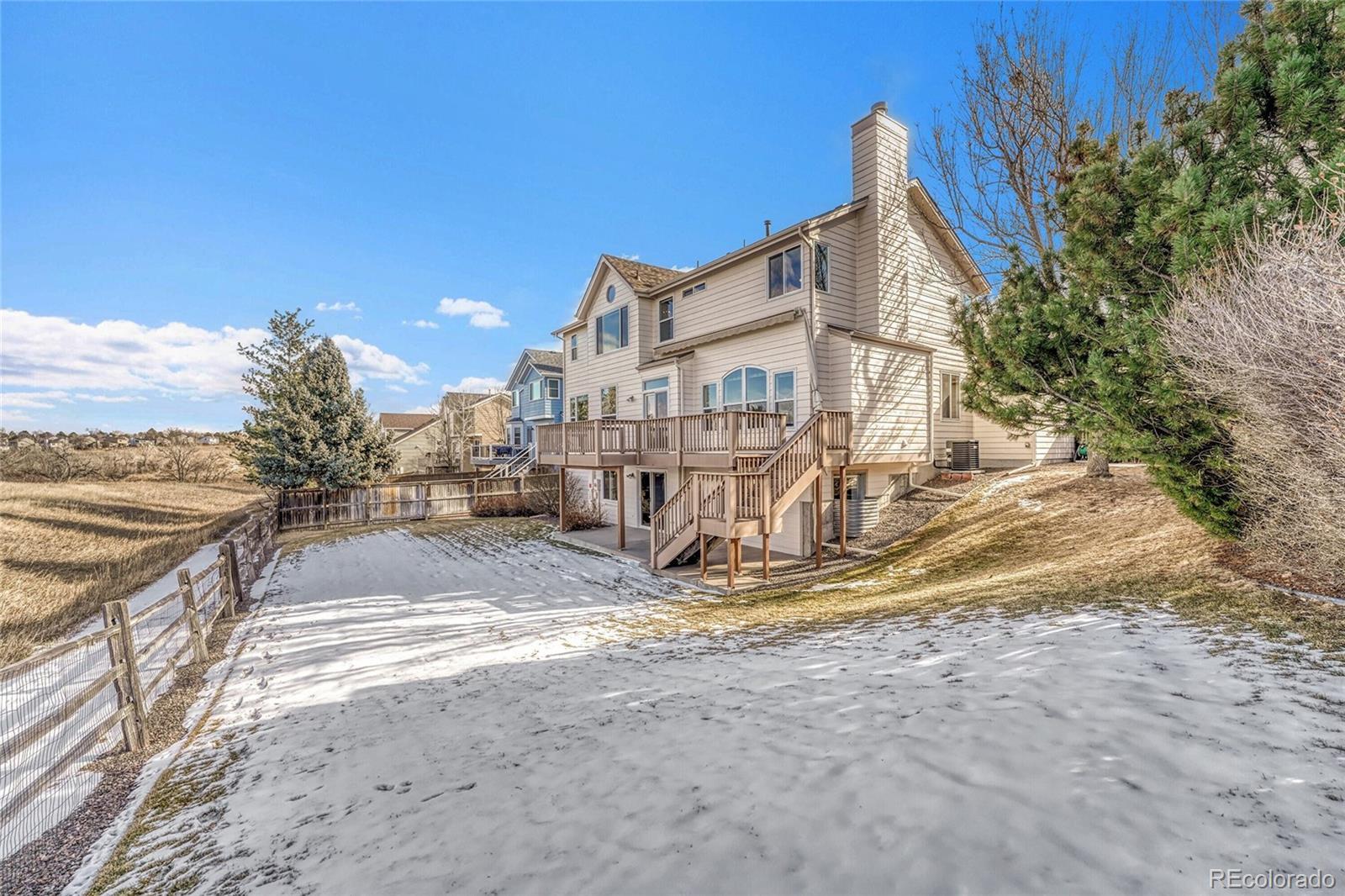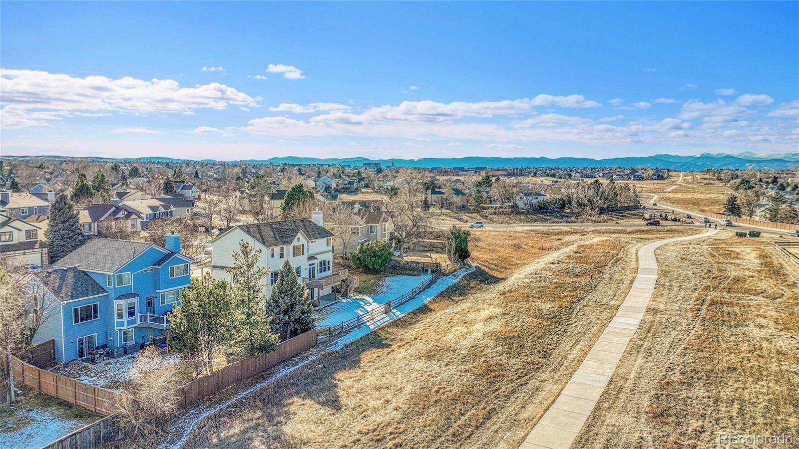 Welcome to this stunning impeccably maintained single-family home located in the desirable Highlands Ranch community backing up to miles of Highlands Ranch paved trails. This expansive property features 4 bedrooms, 4 bathrooms all within an impressive 3,804 square feet of space. A 3 car attached garage as well as backyard storage shed allows an abundance of storage. With a spacious layout that accommodates all types of Buyers as this home is designed for both comfort and functionality. Upon entering, you are greeted by a tiled grand foyer with high ceilings and natural light that flows throughout. The open floor plan seamlessly connects the living room, dining room, and kitchen, making it perfect for gatherings. The recently updated kitchen is a chef's dream, boasting stainless steel appliances, a large center island, and elegant white cabinetry complemented by light quartz counter tops surrounded by hardwood style flooring. The family room is a cozy retreat with a fireplace and ample natural light afforded through abundant windows with views of the large Trex deck complete with retractable awning and open trails beyond. The upper floors' large primary bedroom offers a vaulted ceiling and an ensuite 5 piece bathroom with a double vanity and garden tub. Three more bedrooms are also on the upper floor, some with mountain views, as well as a full bath with double sinks. The walk-out basement is finished with a 3/4 bath and large recreational area including a bar designed for entertaining. The property also has a "paid" for Solar electricity generation system, newer windows, newer roof and newer HVAC system plus a Home Warranty to insure reduced future maintenance expenses. Outside, the property features a beautifully landscaped and irrigated yard with a patio and deck, ideal for outdoor entertaining or enjoying Colorado's stunning sunsets. The Highlands Ranch community offers a wealth of amenities including parks, trails, schools, sports fields,recreational facilities.