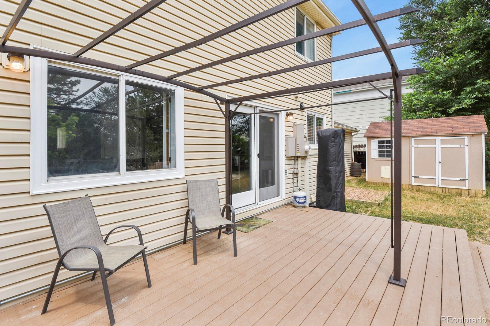 Charming and Updated 2-Story in Sought-After Friendly Hills! Ideally located just minutes from Red Rocks Amphitheater, C-470, I-70, and the foothills, this beautifully maintained home offers the perfect blend of comfort and convenience. Enjoy quick access to the mountains, nearby trails, and outdoor recreation including Bear Creek Lake Park and the C-470 Bikeway, right outside your front door! Step inside to a light-filled layout featuring an updated kitchen with granite countertops, a center island, pantry, modern fixtures, and a sleek stainless steel sink. The kitchen flows seamlessly to the spacious back patio—ideal for entertaining guests or enjoying quiet evenings. Other highlights include rich wood floors, fresh carpet upstairs, a flexible home office area with French doors, custom stair railings, and thoughtful upgrades throughout. The garage and front entry have been enhanced with quality flatwork, and the large backyard includes a sizable shed for extra storage or workspace. Set in a prime location near trails, parks, and major thoroughfares, this is a turn-key home with so much to offer. Come see it for yourself!