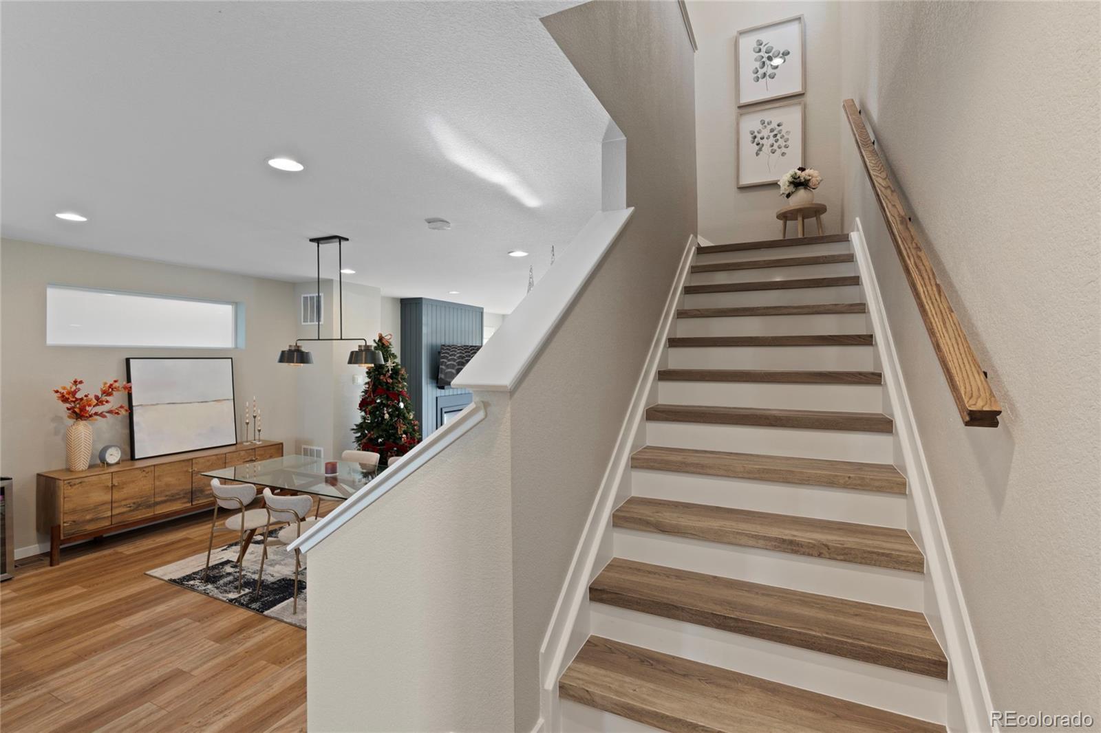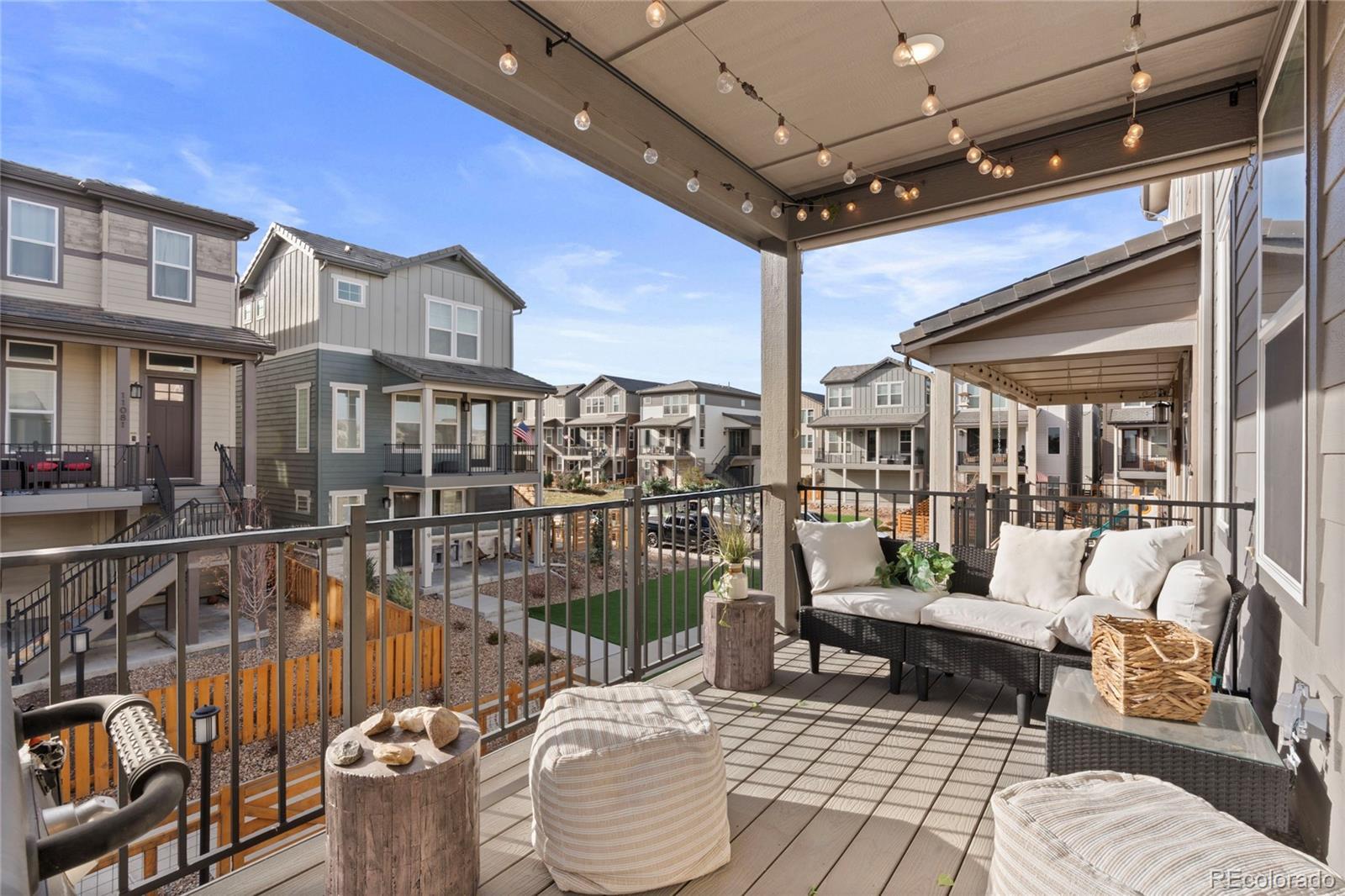 This modern, urban three-story home offers the perfect blend of contemporary design, thoughtful upgrades, and low-maintenance living. A rare three-bay tandem garage, fully fenced yard, and professionally designed xeriscaping create both convenience and curb appeal. Enjoy seamless indoor-outdoor living with a covered deck off the great room and a spacious covered front patio—ideal for relaxing or entertaining. Inside, the home has been fully refreshed with designer finishes throughout, including new lighting, fresh paint, updated blinds (with remote-controlled options on the main level), and refined millwork details. The open kitchen shines with quartz countertops in Calacatta Botanica, a full-height backsplash, pendant lighting, pantry shelving, and a new refrigerator—perfect for everyday living and hosting guests. The primary suite offers a private retreat with custom millwork, upgraded cabinetry and counters, tile flooring, and a beautifully finished shower. Secondary bedrooms are equally inviting, featuring tasteful wall treatments, updated lighting, and window coverings. A conveniently located laundry area includes a new washer and dryer. Designed for today’s lifestyle, this home is ideal for buyers seeking contemporary comfort, a spacious three-level floor plan, and easy, low-maintenance living. Located in the highly desirable Stepping Stone community, residents enjoy resort-style amenities including parks, scenic trails, a pool, and the Lantern House clubhouse—perfect for gatherings and neighborhood events. With quick access to I-25, Park Meadows Mall, and Downtown Main Street, commuting and entertainment are effortless. The area is also served by the highly regarded Douglas County School District, making this an exceptional place to call home.