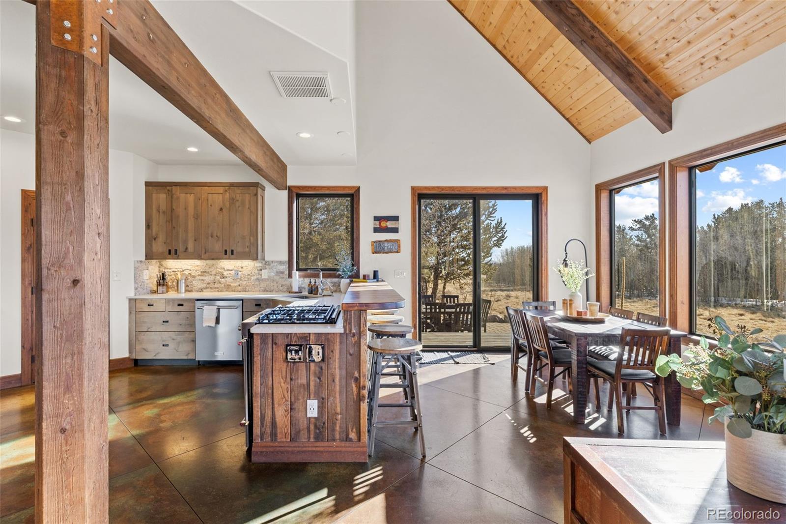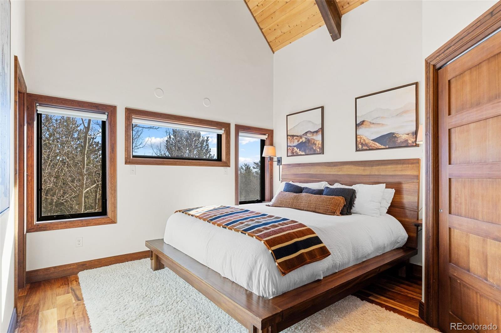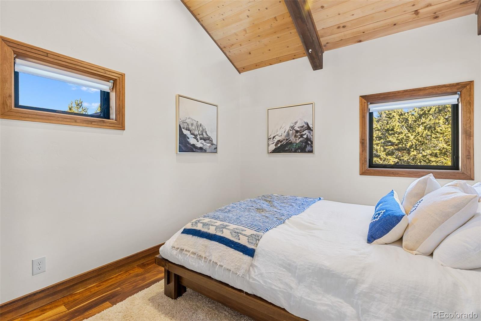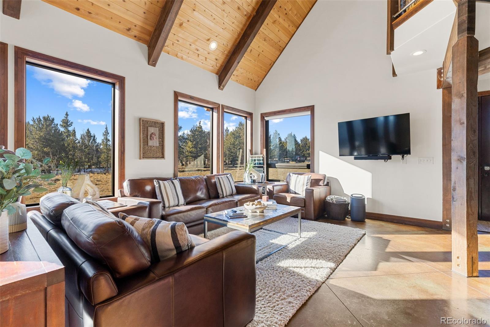Tucked within the Foxtail Pines neighborhood in Fairplay, this secluded 3-bedroom, 2.5-bath mountain retreat spans 2,063 square feet across 3 gated acres of pristine alpine landscape, surrounded by towering pines, aspens, and expansive mountain views. Vaulted tongue-and-groove ceilings with exposed beams, walls of natural light, and a soapstone fireplace define the open living space, complemented by polished concrete floors and quartz finishes. The luxury kitchen, serene primary suite with steam shower, radiant heat, and smart-home technology create a refined yet effortless lifestyle. Offered fully furnished for a seamless, turn-key mountain escape.