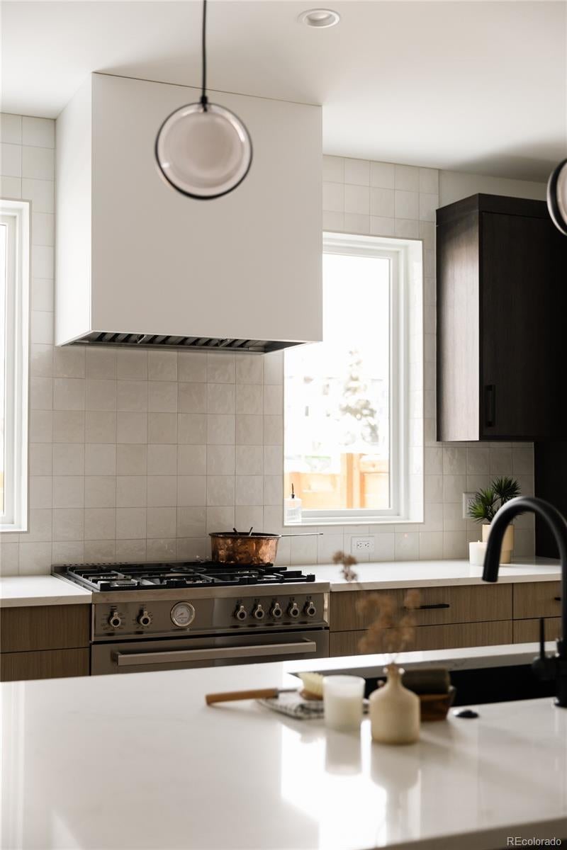 Views, style, and elevated design define this exceptional NEW modern half duplex, perfectly positioned just doors from the beauty and energy of Sloan’s Lake. Thoughtfully curated finishes and an abundance of natural light create an inviting atmosphere from the moment you arrive. The heart of the home is the chef’s kitchen, beautifully situated between the dining area and an open, welcoming living room anchored by a custom fireplace. This space effortlessly balances elegance and comfort, creating a natural gathering place for memorable dinners, relaxed evenings, and everyday living. The second level offers 3 serene bedrooms and 2 impeccably finished baths. The primary suite feels like a private retreat, featuring a spa-inspired bathroom and a generous walk-in closet designed for both luxury and functionality. The third level continues the home’s thoughtful design with a flexible 4th bedroom or private office, paired with a beautifully appointed full bath. A flex space invites cozy nights in or casual entertaining and opens seamlessly to the private rooftop deck—an unforgettable extension of the home. From here, unwind with sweeping mountain views and tranquil sights of Sloan’s Lake, setting the stage for quiet mornings and golden-hour evenings alike. Multiple outdoor spaces enhance the connection to Denver’s renowned lifestyle, including the expansive rooftop deck, a private backyard for intimate gatherings, and a covered front porch that welcomes conversation and neighborhood charm. A 2-car garage is perfect for cars and gear. Located close to the acclaimed restaurants, cafés, and amenities of Sloan’s Lake and Highlands Square, with convenient access to downtown Denver and major routes including I-25, US-6, and I-70, this brand-new residence offers the perfect blend of comfort, luxury, and location. Complete with a full 1-year builder warranty, this is a rare opportunity to enjoy new construction living in one of Denver’s most beloved neighborhoods. Welcome home.