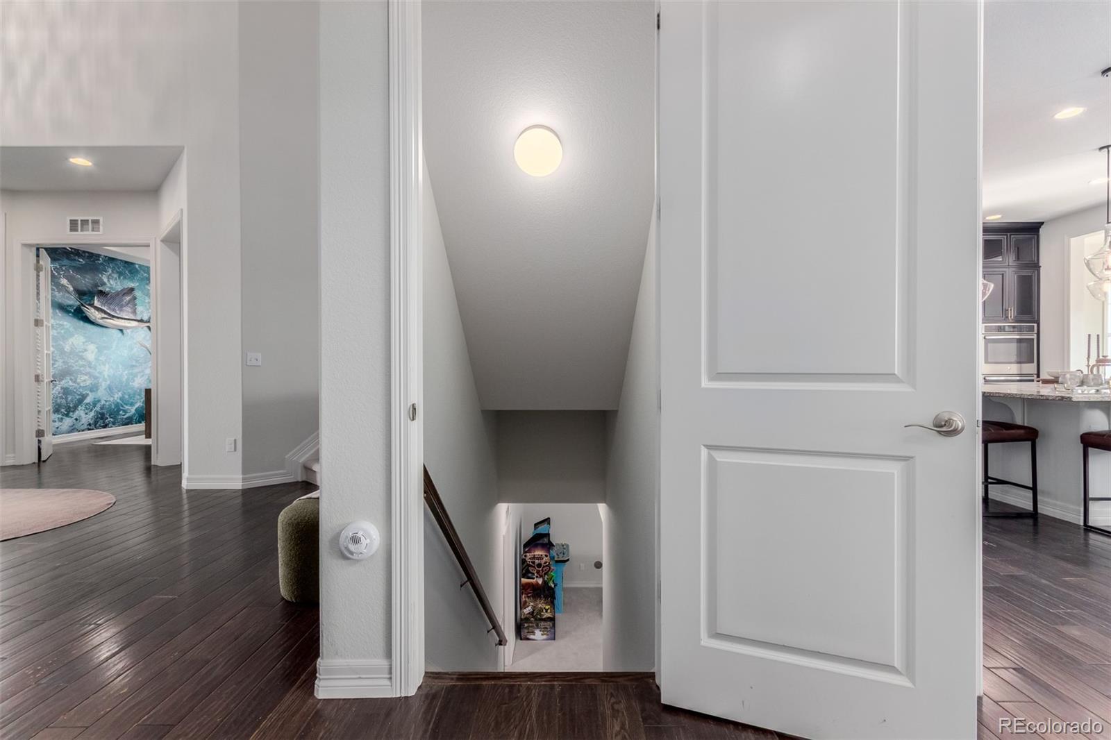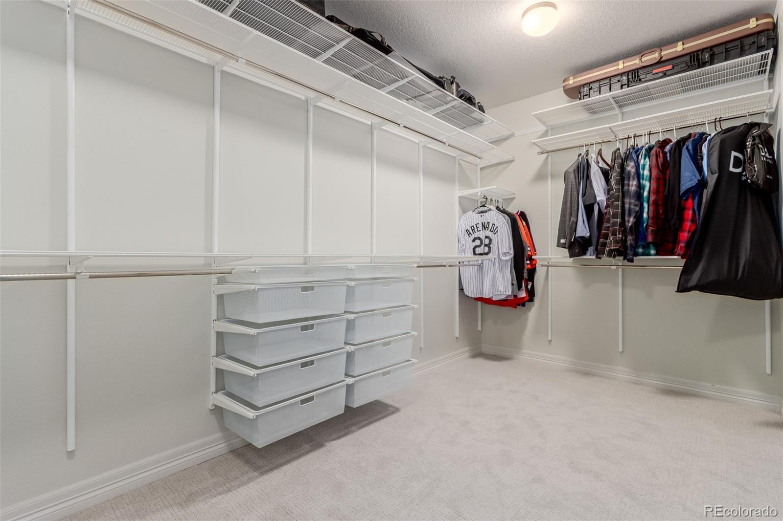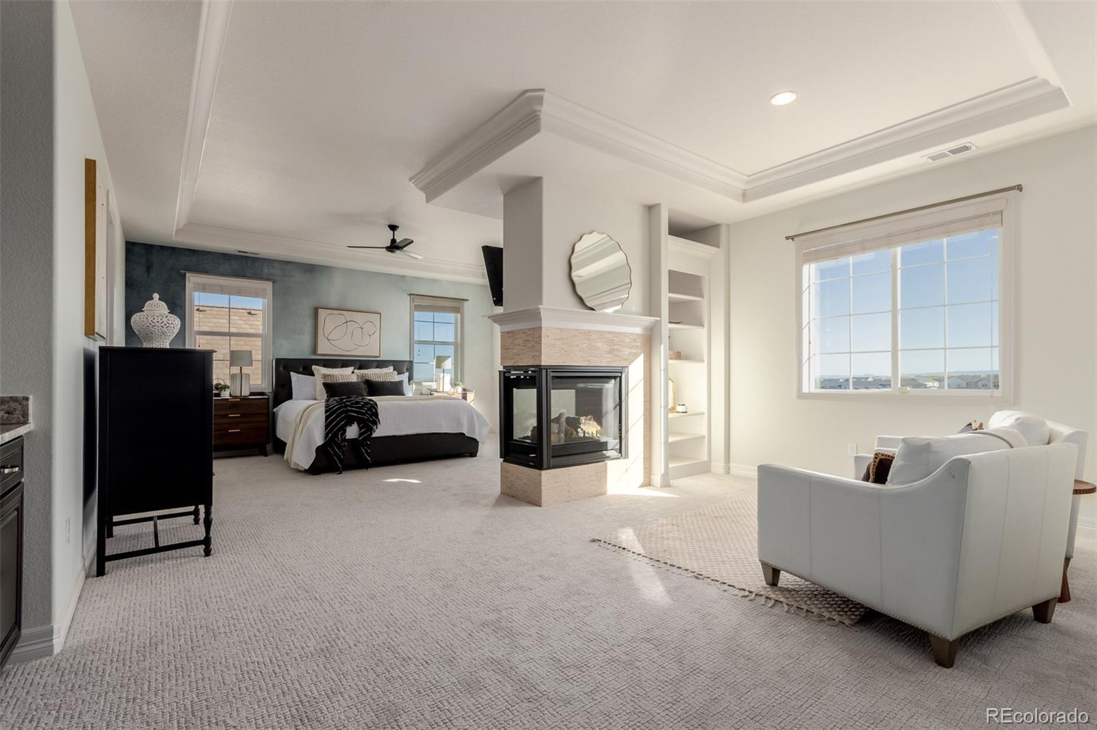 Discover luxury living in this stunning 6 bedroom, 6 bathroom residence located in the coveted Candelas subdivision! Combining elegant design with modern sophistication, this home is sure to impress! Inside, you’ll find stylish chandeliers, a formal living room with a fireplace, and a formal dining room perfect for entertaining. The bright den provides a space for work or relaxation. The expansive family room features a soaring ceiling and a fireplace, offering an ideal gathering spot. The gourmet kitchen is a chef’s dream, boasting stacked cabinetry, granite countertops, and high-end finishes, complemented by a large breakfast room. Retreat to the owner’s suite, a magnificent sanctuary with a private seating area, fireplace, and a lavish spa-like bathroom designed for ultimate relaxation and views of the mountains and downtown Denver. The finished basement expands your living space with a recreation room that includes a wet bar, an island, and outdoor access. In addition, discover a second living room, a spacious bonus room with French Doors (could be an Au Pair suite), and bedroom with a bathroom, but also second bonus room has space for a closet and plumbing for a second bathroom if needed. This exceptional home seamlessly blends elegance, comfort, and functionality in one of Arvada’s most desirable neighborhoods! The home features brand new interior paint, new carpets, and a brand new deck! Each closet has added shelves and drawers for efficient organization.