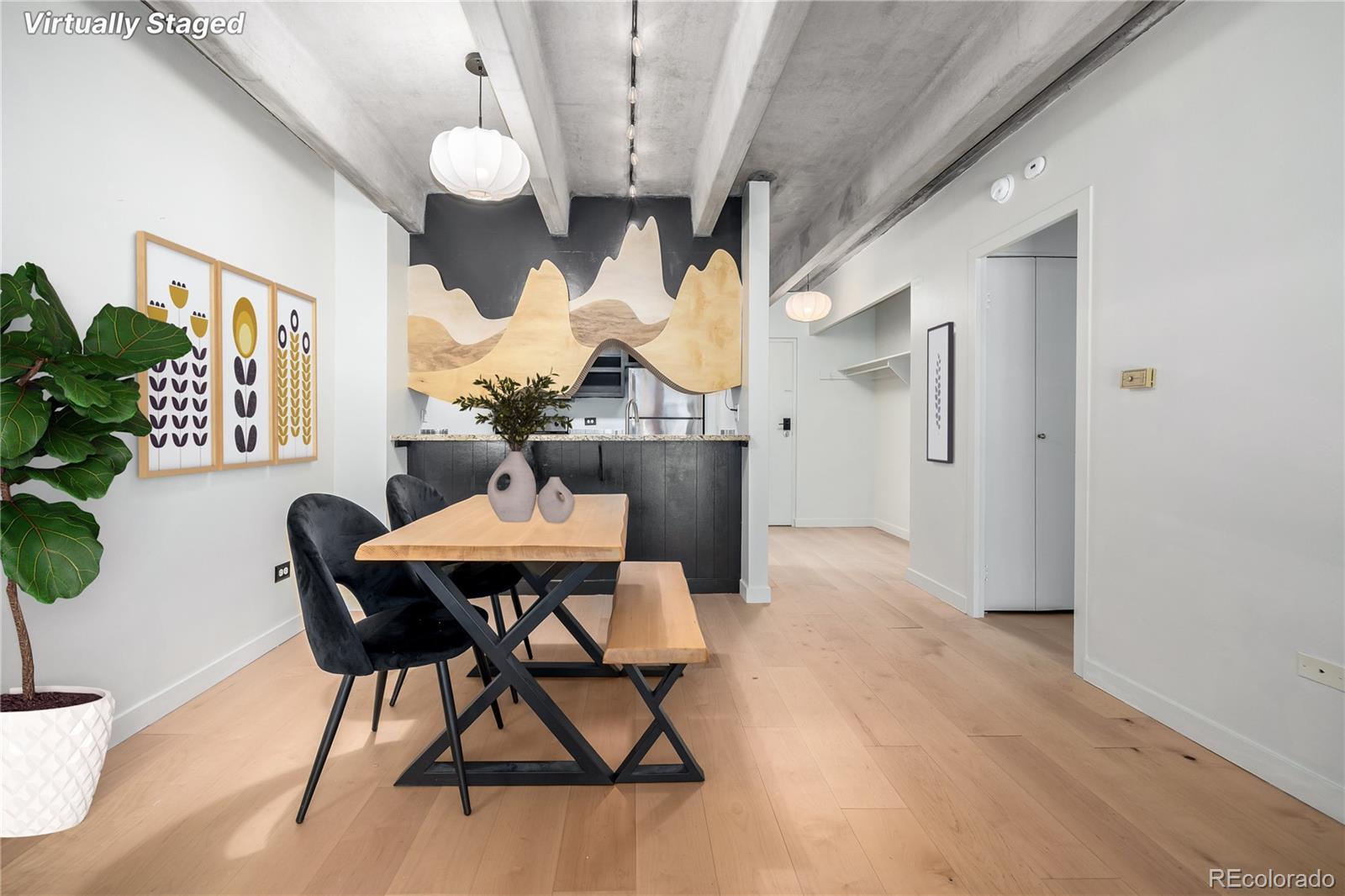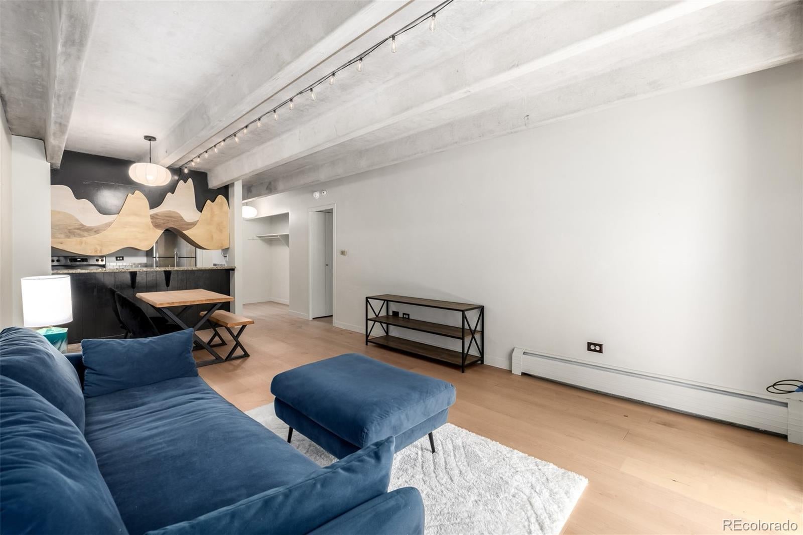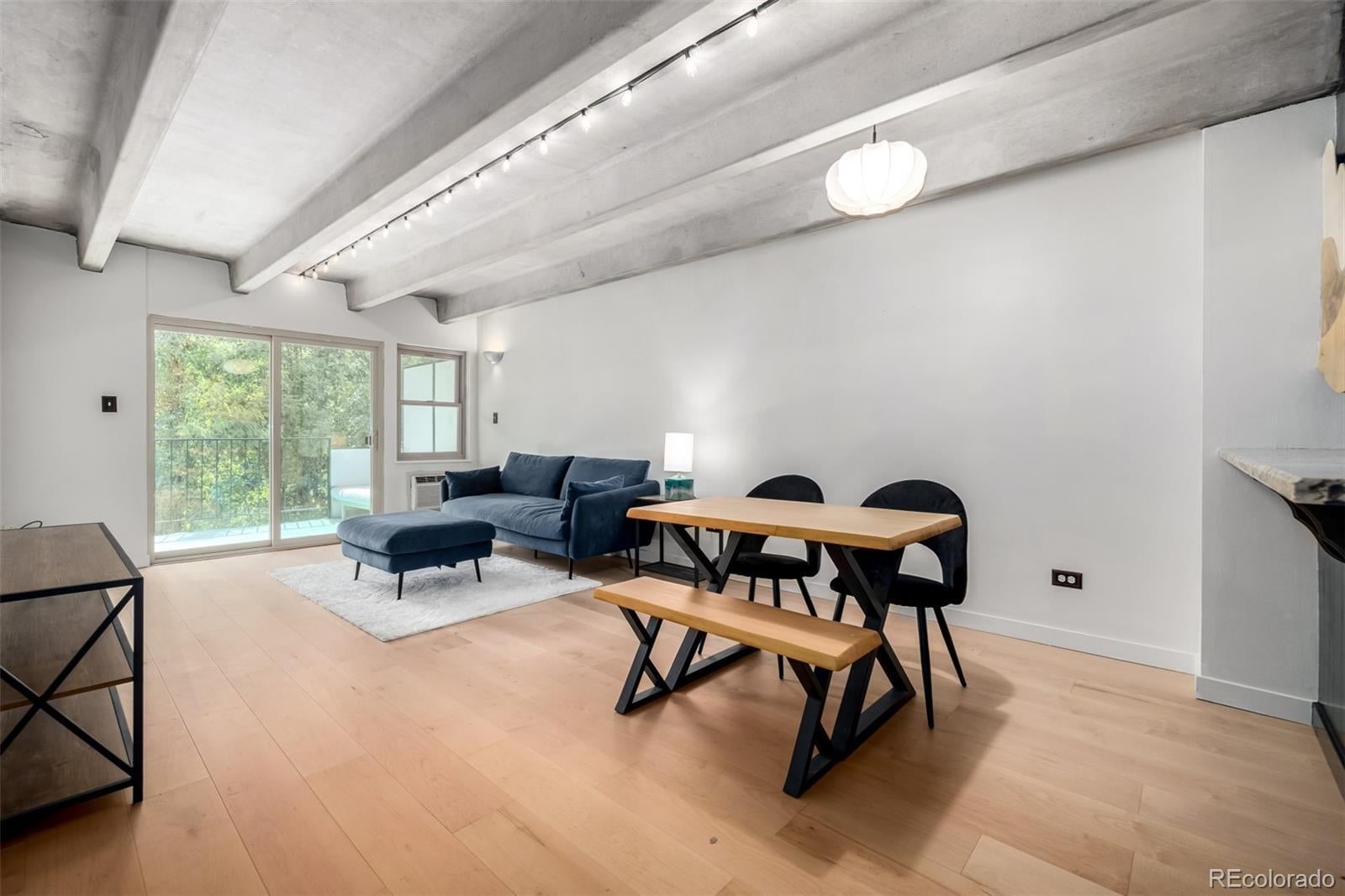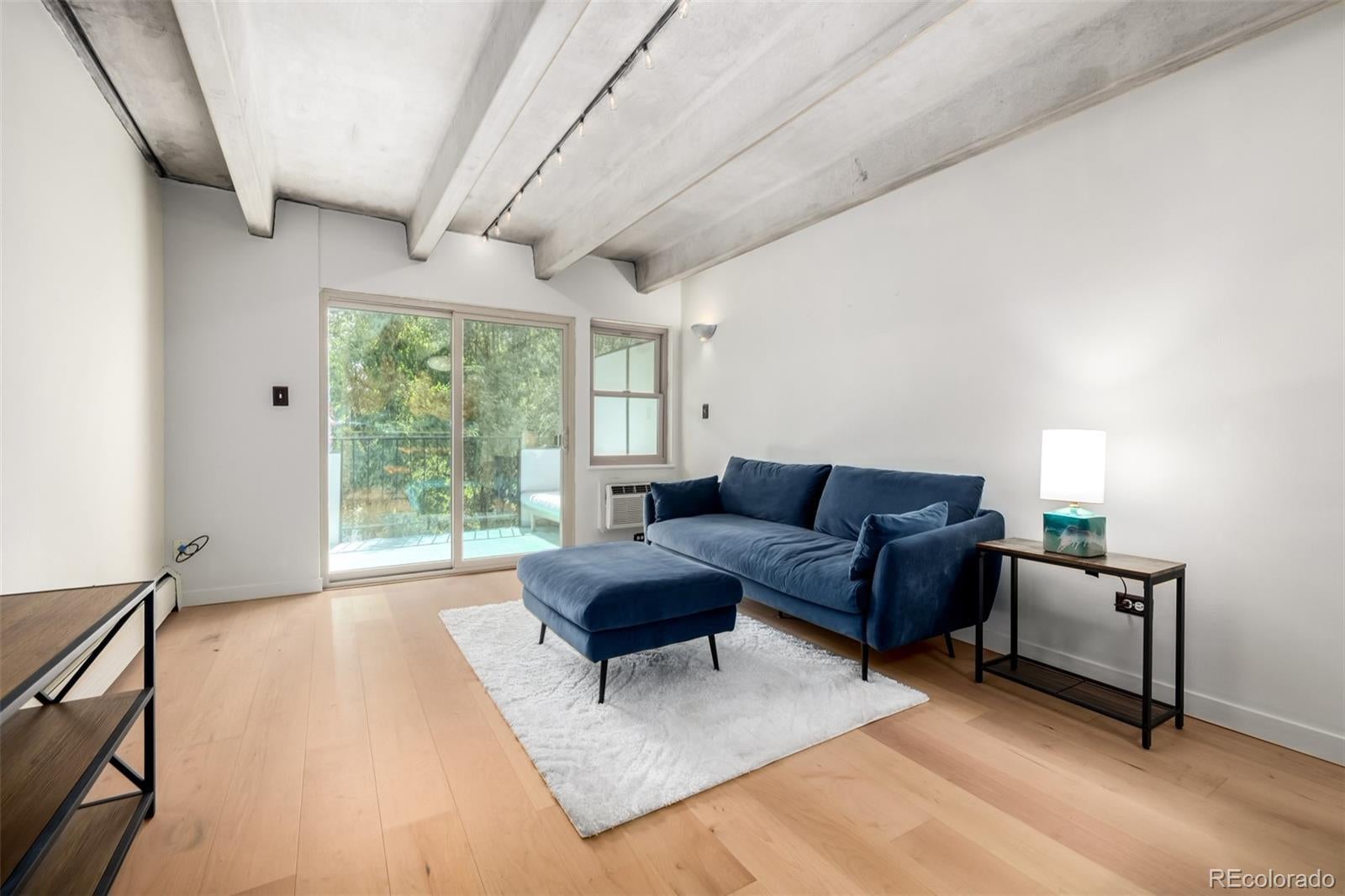 Welcome to The Cameo, a sought-after charming condominium community located in the heart of Denver. This stylish 1 bedroom, 1 bath condo offers a perfect blend of modern updates, functional living space, and unique character. Inside, you’ll find an open-concept with natural light pouring in from large sliding glass doors, with privacy screens on both sides, that lead to a south facing balcony, overlooking mature trees. The living and dining areas are accented by exposed concrete beam ceilings and new engineered wood flooring, creating a sleek yet cozy feel. The kitchen stands out with granite countertops, stainless steel appliances, and custom artistic cabinetry, giving the space unique character while offering plenty of functionality. The spacious bedroom provides a peaceful retreat with ample closet storage, while the full bathroom is clean and bright. Recent updates ensure this home is truly move-in ready, offering comfort and convenience from day one. The Cameo offers fantastic community amenities, including a brand new indoor pool with beautiful new finishes to be completed soon. Residents also enjoy access to coin-operated laundry facilities, secure bike storage, and private parking. A dedicated storage unit is included with the home. Measuring 32” wide by 30” deep it's perfect for floor-to-ceiling shelving and is conveniently located right off the lobby. With controlled building access and a welcoming lobby, you’ll appreciate the sense of comfort and community this building provides. Situated in a prime location near Cheesman Park, the Denver Botanic Gardens, countless cafes and shops this condo places you right in the center of one of Denver’s most vibrant and walkable areas. Easy access to downtown, Cherry Creek, and major transit routes ensures commuting and exploring the city is effortless. Don’t miss the opportunity to make this stylish condo at The Cameo your new home and enjoy all the comfort, convenience, and lifestyle benefits it has to offer!
