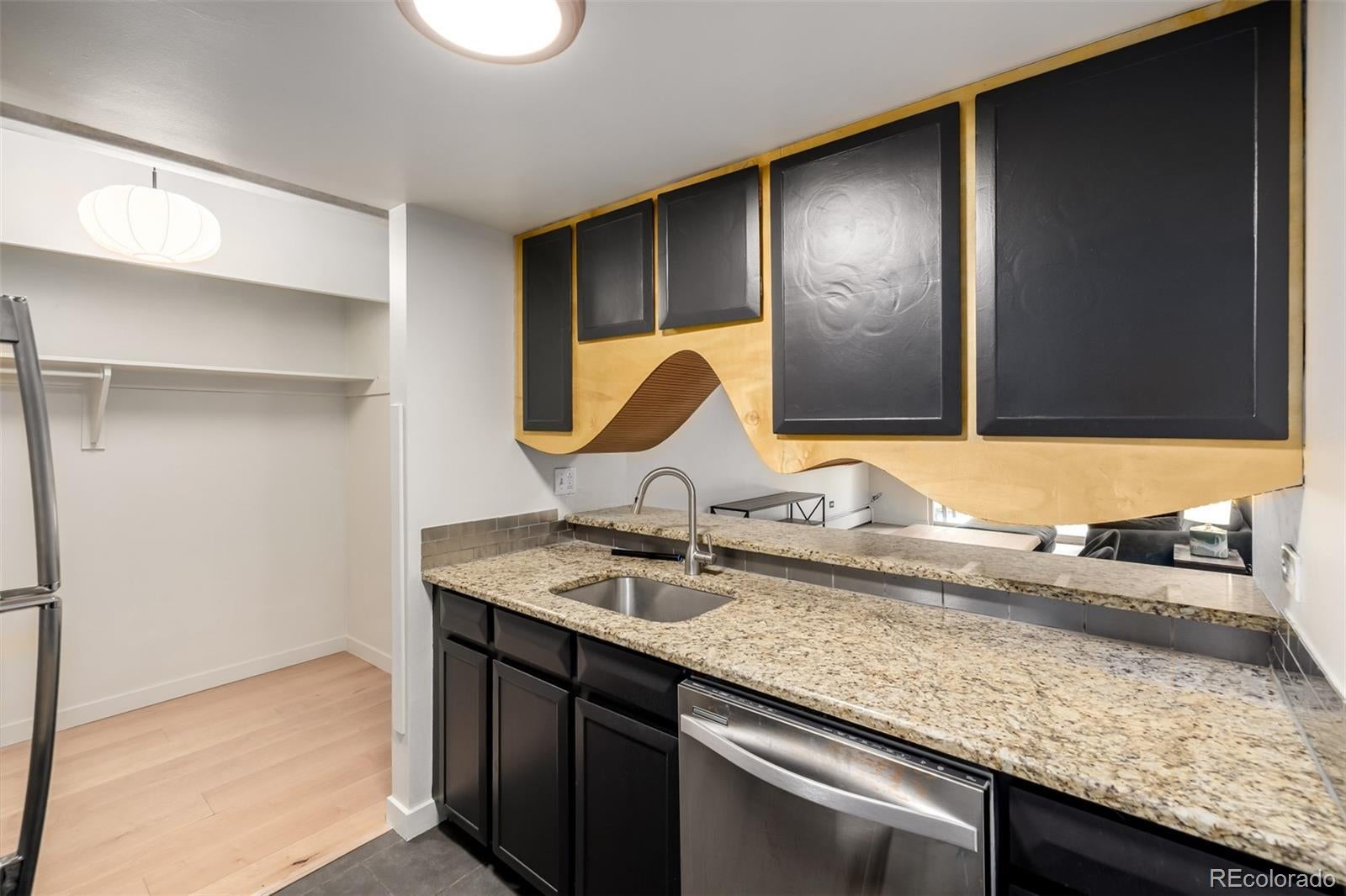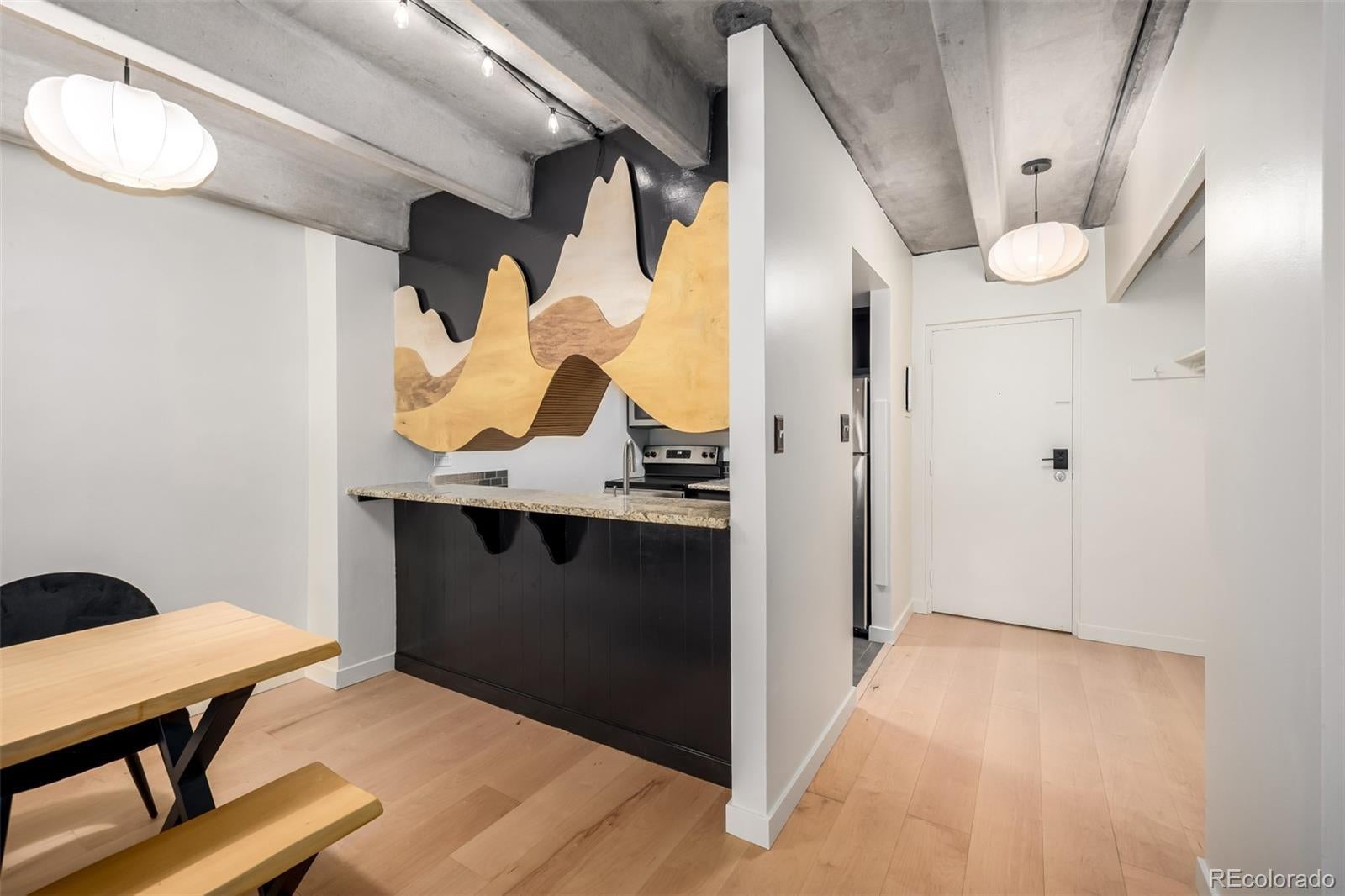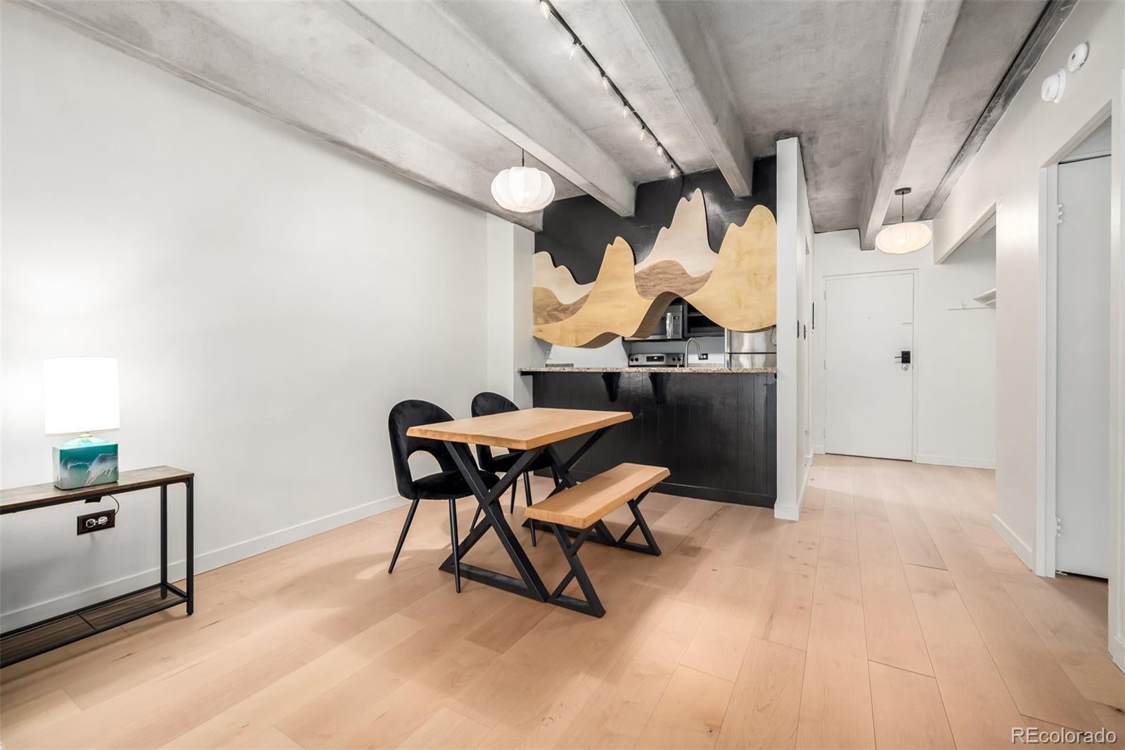 Welcome to The Cameo, a sought-after charming condominium community located in the heart of Denver. This stylish 1 bedroom, 1 bath condo offers a perfect blend of modern updates, functional living space, and unique character. Inside, you’ll find an open-concept with natural light pouring in from large sliding glass doors, with privacy screens on both sides, that lead to a south facing balcony, overlooking mature trees. The living and dining areas are accented by exposed concrete beam ceilings and new engineered wood flooring, creating a sleek yet cozy feel. The kitchen stands out with granite countertops, stainless steel appliances, and custom artistic cabinetry, giving the space unique character while offering plenty of functionality. The spacious bedroom provides a peaceful retreat with ample closet storage, while the full bathroom is clean and bright. Recent updates ensure this home is truly move-in ready, offering comfort and convenience from day one. The Cameo offers fantastic community amenities, including a brand new indoor pool with beautiful new finishes to be completed soon. Residents also enjoy access to coin-operated laundry facilities, secure bike storage, and private parking. A dedicated storage unit is included with the home. Measuring 32” wide by 30” deep it's perfect for floor-to-ceiling shelving and is conveniently located right off the lobby. With controlled building access and a welcoming lobby, you’ll appreciate the sense of comfort and community this building provides. Situated in a prime location near Cheesman Park, the Denver Botanic Gardens, countless cafes and shops this condo places you right in the center of one of Denver’s most vibrant and walkable areas. Easy access to downtown, Cherry Creek, and major transit routes ensures commuting and exploring the city is effortless. Don’t miss the opportunity to make this stylish condo at The Cameo your new home and enjoy all the comfort, convenience, and lifestyle benefits it has to offer!
