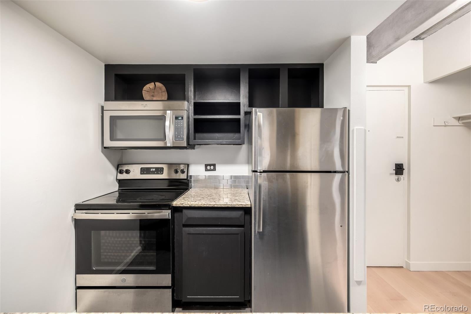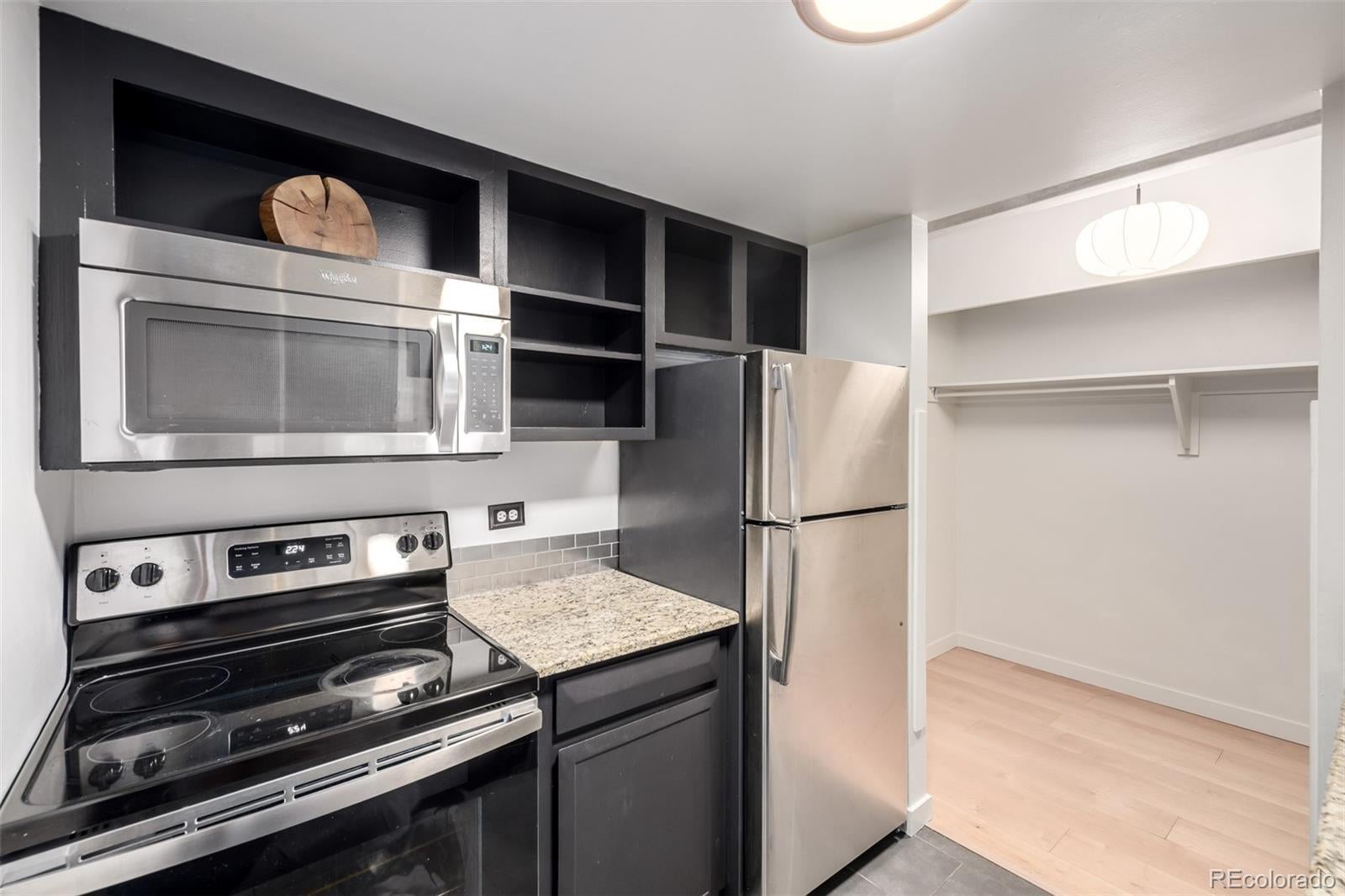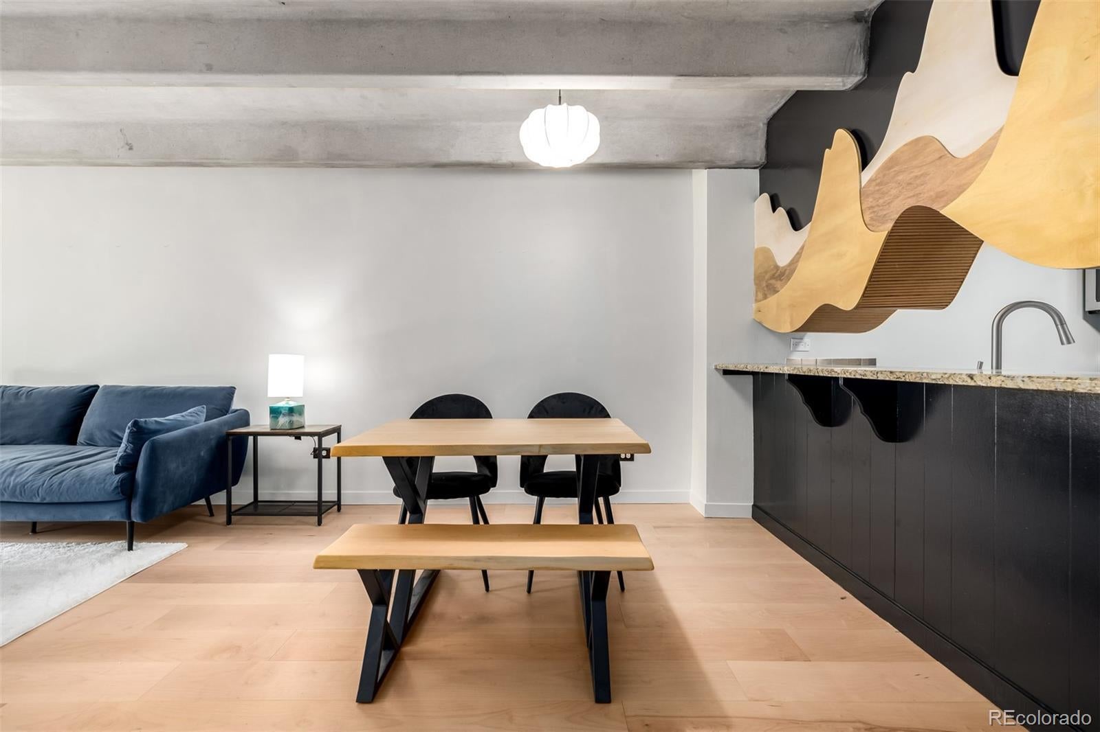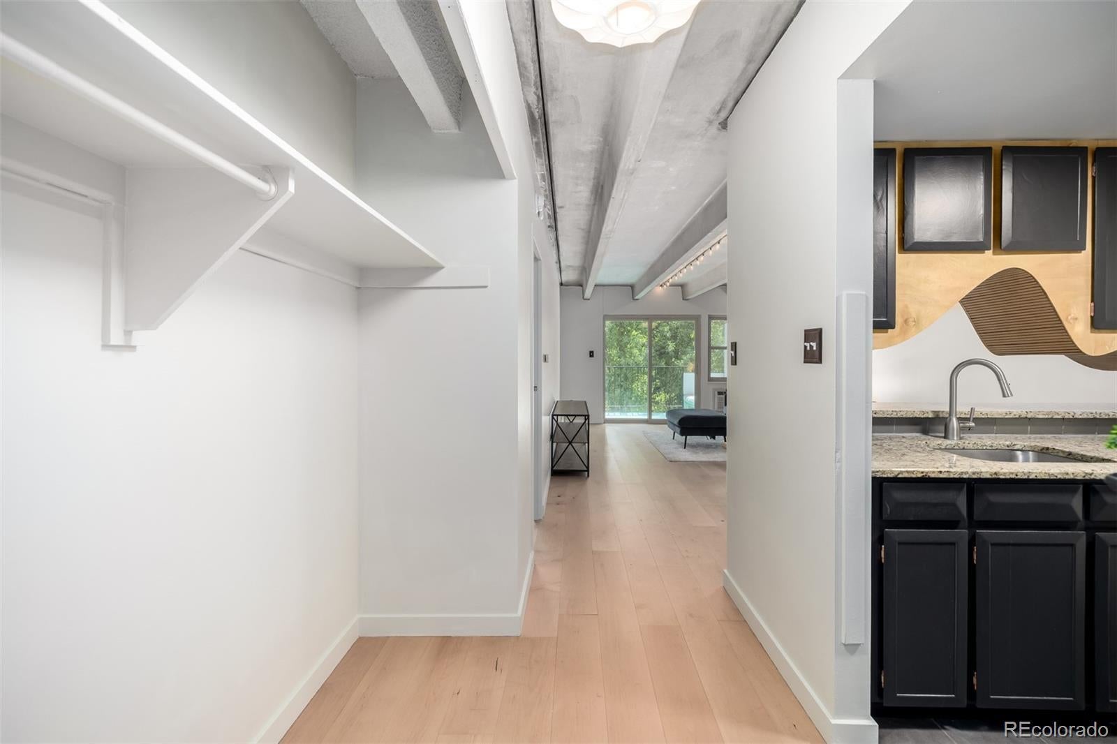 Welcome to The Cameo, a sought-after charming condominium community located in the heart of Denver. This stylish 1 bedroom, 1 bath condo offers a perfect blend of modern updates, functional living space, and unique character. Inside, you’ll find an open-concept with natural light pouring in from large sliding glass doors, with privacy screens on both sides, that lead to a south facing balcony, overlooking mature trees. The living and dining areas are accented by exposed concrete beam ceilings and new engineered wood flooring, creating a sleek yet cozy feel. The kitchen stands out with granite countertops, stainless steel appliances, and custom artistic cabinetry, giving the space unique character while offering plenty of functionality. The spacious bedroom provides a peaceful retreat with ample closet storage, while the full bathroom is clean and bright. Recent updates ensure this home is truly move-in ready, offering comfort and convenience from day one. The Cameo offers fantastic community amenities, including a brand new indoor pool with beautiful new finishes to be completed soon. Residents also enjoy access to coin-operated laundry facilities, secure bike storage, and private parking. A dedicated storage unit is included with the home. Measuring 32” wide by 30” deep it's perfect for floor-to-ceiling shelving and is conveniently located right off the lobby. With controlled building access and a welcoming lobby, you’ll appreciate the sense of comfort and community this building provides. Situated in a prime location near Cheesman Park, the Denver Botanic Gardens, countless cafes and shops this condo places you right in the center of one of Denver’s most vibrant and walkable areas. Easy access to downtown, Cherry Creek, and major transit routes ensures commuting and exploring the city is effortless. Don’t miss the opportunity to make this stylish condo at The Cameo your new home and enjoy all the comfort, convenience, and lifestyle benefits it has to offer!