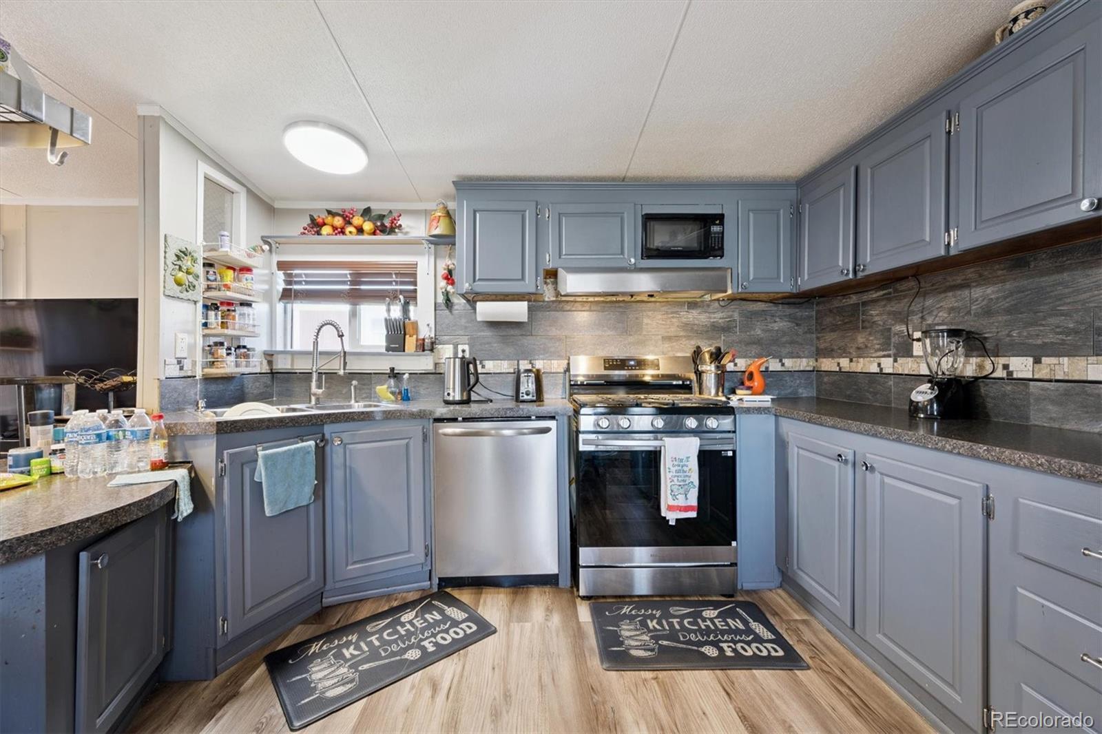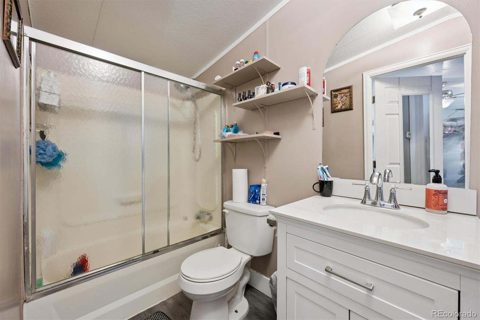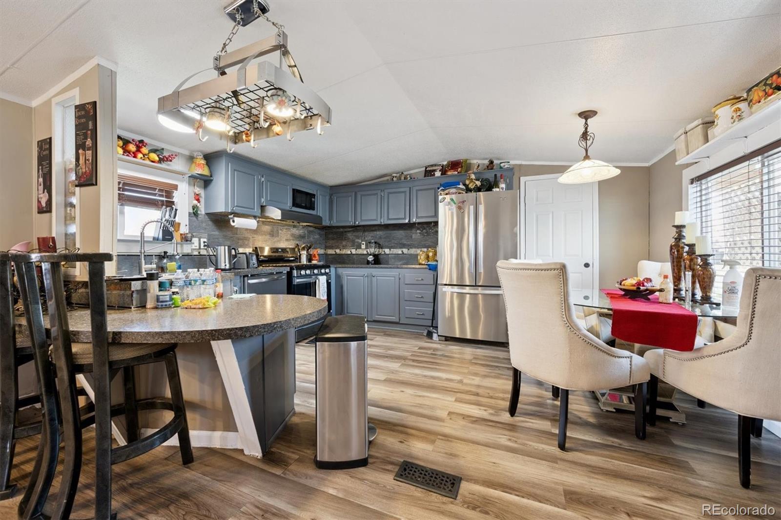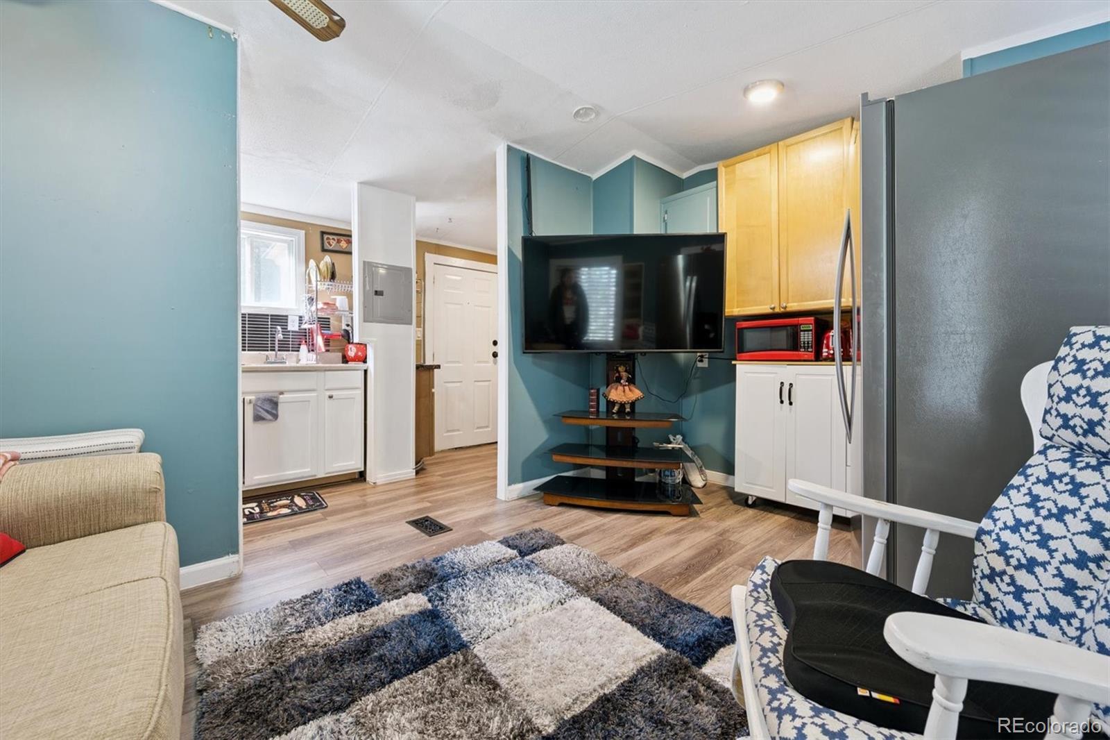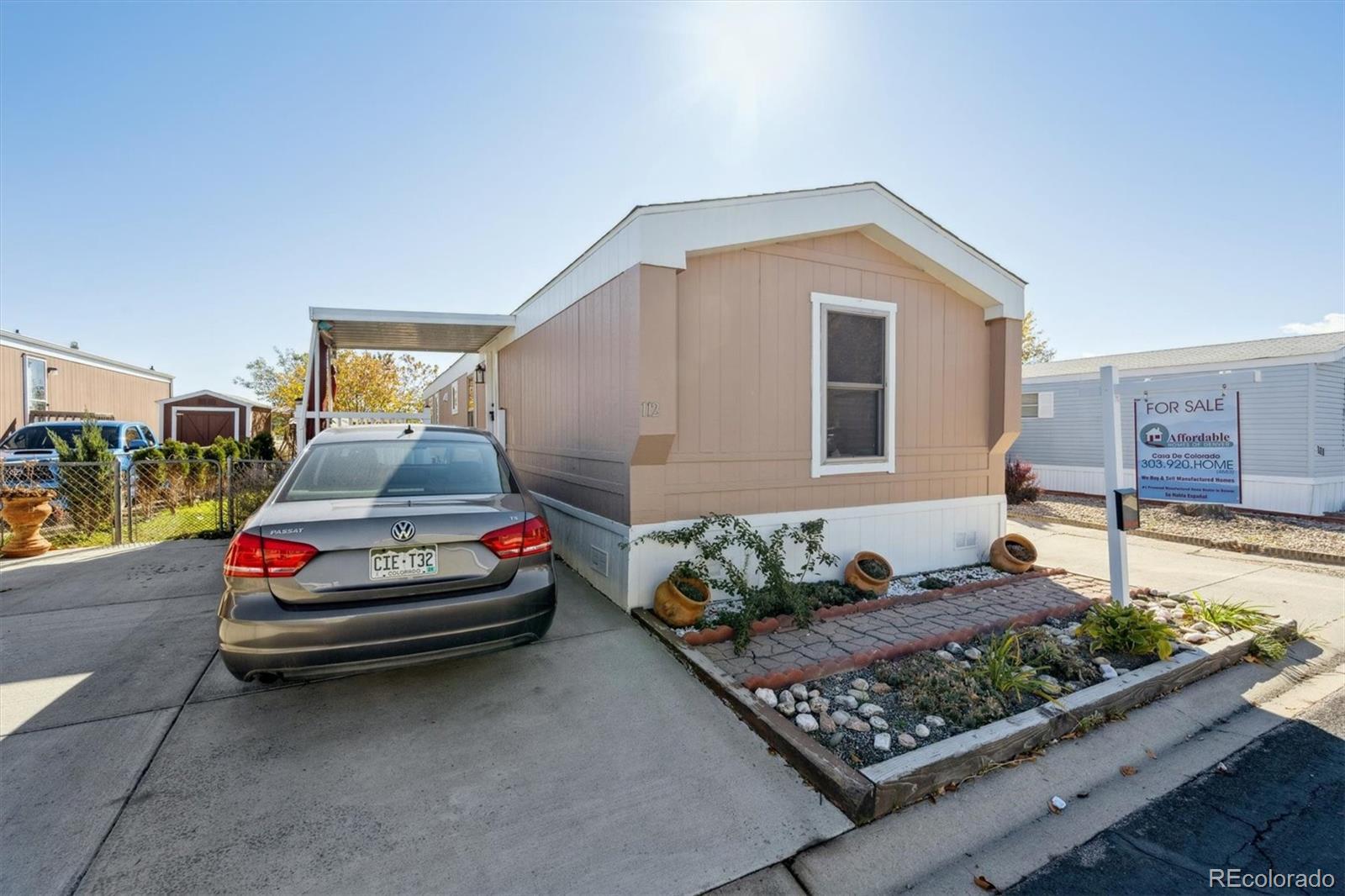 Lot 112 in Casa Estates offers a fantastic opportunity to own a well-maintained single-wide home in a community filled with great amenities, including a clubhouse, pool, and playground. Located within the Adams 12 Five Star School District and close to shopping and dining, this home is conveniently situated for everyday living. Upon arrival, you’ll love the rare find of five parking spaces right at your doorstep! Inside, the home is split into two separate living spaces, perfect for flexibility or multi-generational living. On one side, enjoy a bright family room with vaulted ceilings, laminate flooring, and a ceiling fan. The kitchen features updated cabinetry, new appliances, and a stylish backsplash. The primary bedroom includes double closets and an en-suite bath for added comfort. The opposite side offers another family room and kitchen—also with included appliances and matching laminate flooring—plus a spacious bedroom, well-kept bathroom with updated vanity and walk-in shower, and a new washer and dryer. Don’t miss this unique and versatile home—CALL TO SCHEDULE A SHOWING TODAY!