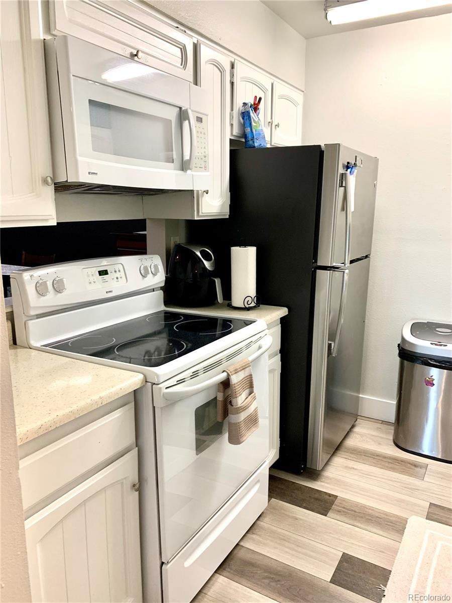 Here is an awesome opportunity to own a well maintained 1 bedroom,1 bath condo within a few minutes walk to the light rail station, shops and restaurants. You will love the formal dining room, brick fireplace and wood style laminate flooring throughout the unit. Living room and bedroom have sliding glass doors to a balcony. Large laundry room with included washer and dryer. Small storage unit off balcony. The property is centrally located providing easy access to I-225, Anschutz Medical Center, Buckley Air Force Base and about a 15 minute drive to DIA. Come see this nice property, thank you!