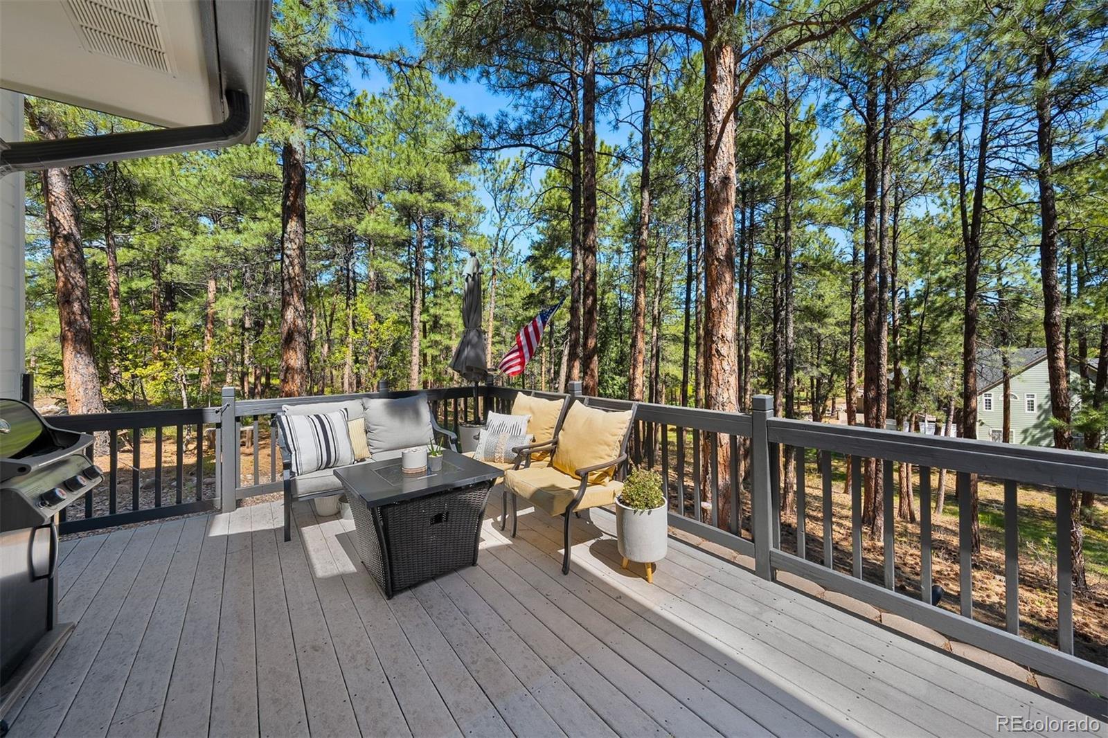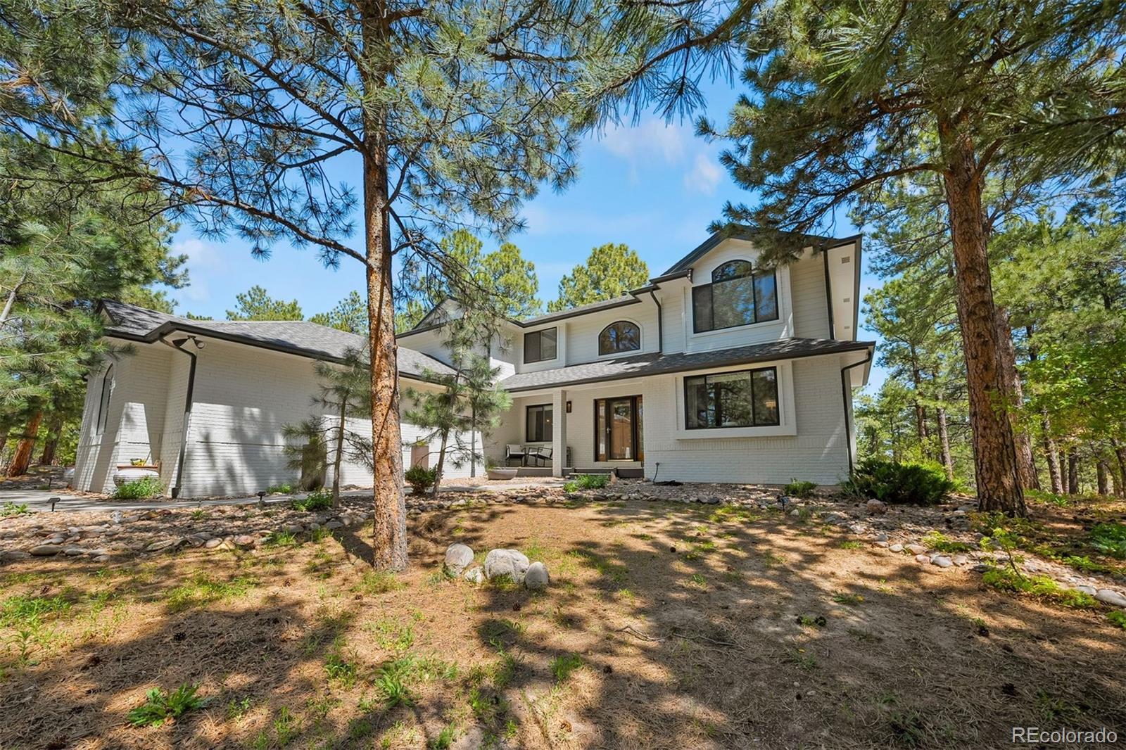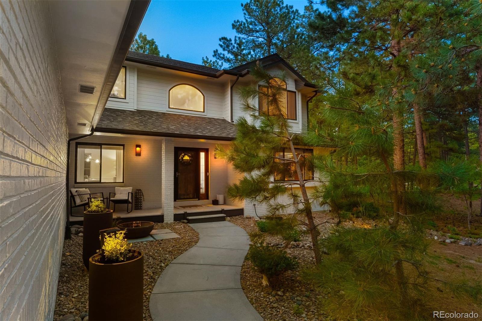 Some places feel like they’re holding their breath just for you—quiet, unhurried, wrapped in the scent of pine and the glow of Colorado sunsets. This two-acre property at the end of a cul-de-sac captures that rare stillness, surrounded by towering evergreens and the rhythms of the forest. Here, deer wander past the front porch, wild turkeys cross the drive, and the occasional bear makes an appearance—reminding you that you’re living in the heart of Colorado. The home is designed to meet its setting head-on, with a full-length deck, covered front porch, and walkways that draw you outside to watch the day fade into night. Inside, vaulted ceilings and walls of windows pull the outdoors in, flooding the great room and kitchen with soft, shifting light. The main level offers a guest suite with deck access, and a walk-in closet, a great room with statement fireplace, and a kitchen built for cooking and connection. Upstairs the primary retreat delivers treetop views and a feeling of calm that stays with you long after you’ve closed your eyes. When it’s time to gather, the finished lower level—with wet bar, recreation room, and hidden gun room—welcomes friends and family with ease. An oversized three-car garage with high ceilings and built-in storage keeps everything organized and ready for your next project or adventure. With easy access to both Denver Metro and Colorado Springs, you’re never far from what you need, but you still feel worlds away.