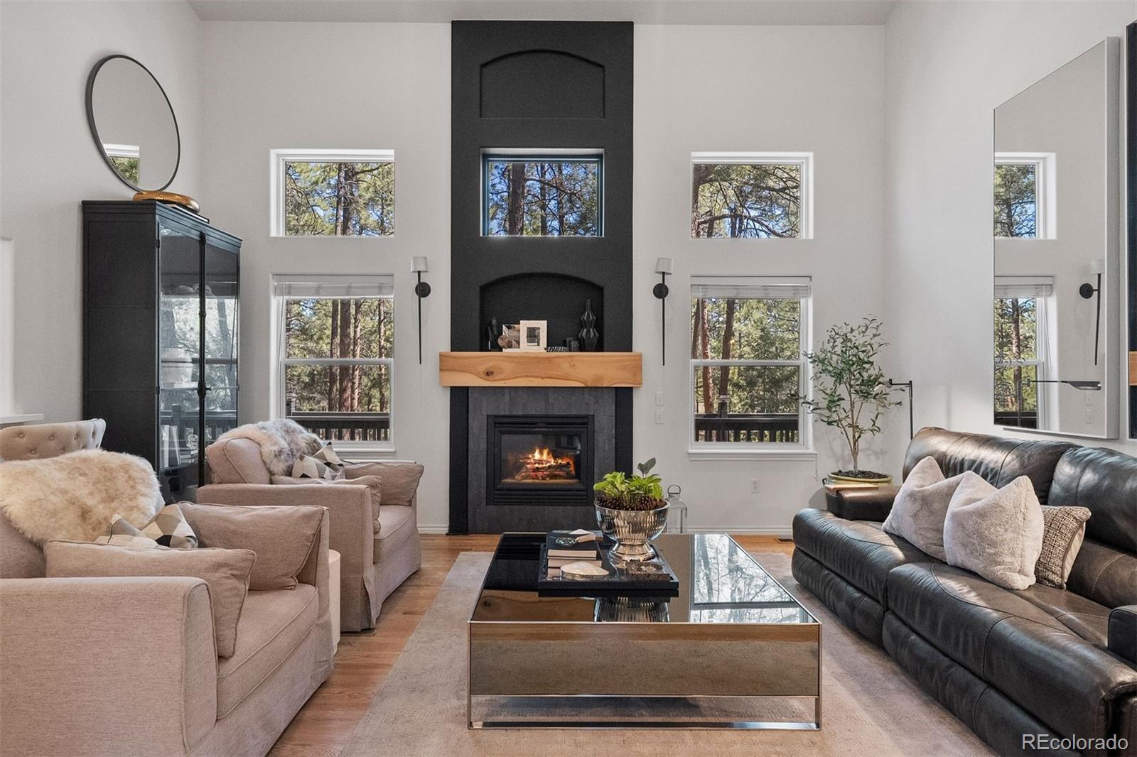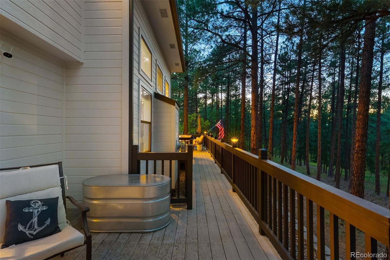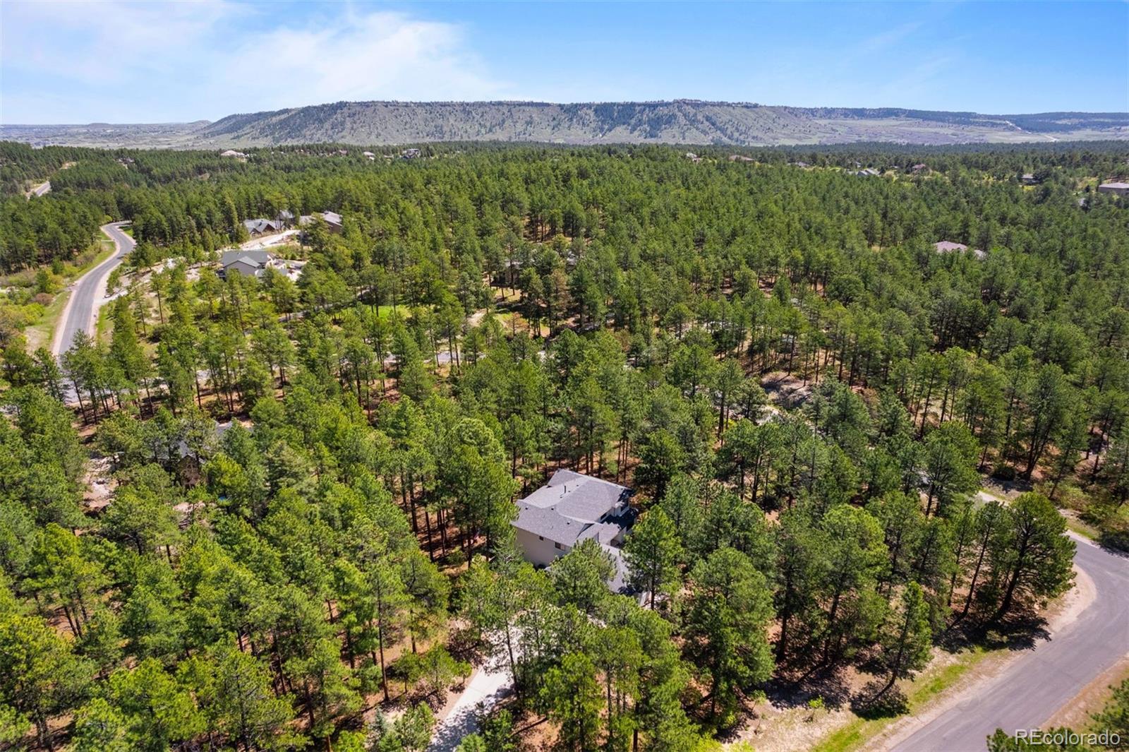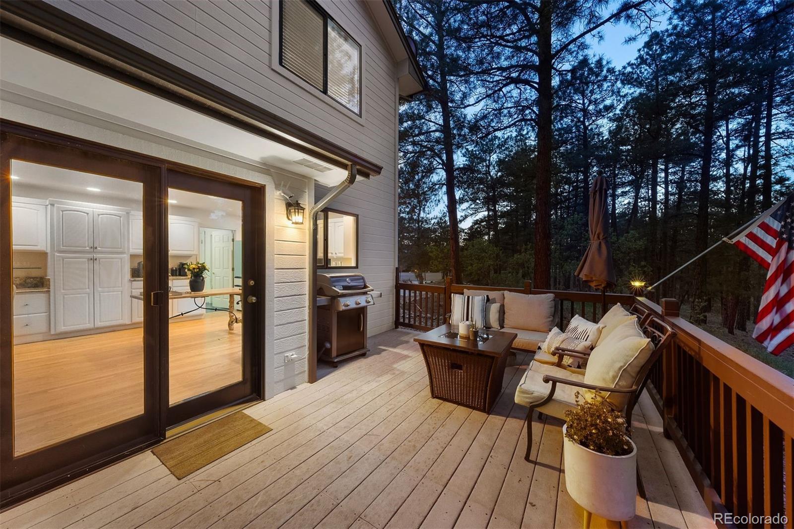 Some places feel like they’re holding their breath just for you—quiet, unhurried, wrapped in the scent of pine and the glow of Colorado sunsets. This two-acre property at the end of a cul-de-sac captures that rare stillness, surrounded by towering evergreens and the rhythms of the forest. Here, deer wander past the front porch, wild turkeys cross the drive, and the occasional bear makes an appearance—reminding you that you’re living in the heart of Colorado. The home is designed to meet its setting head-on, with a full-length deck, covered front porch, and walkways that draw you outside to watch the day fade into night. Inside, vaulted ceilings and walls of windows pull the outdoors in, flooding the great room and kitchen with soft, shifting light. The main level offers a guest suite with deck access, and a walk-in closet, a great room with statement fireplace, and a kitchen built for cooking and connection. Upstairs the primary retreat delivers treetop views and a feeling of calm that stays with you long after you’ve closed your eyes. When it’s time to gather, the finished lower level—with wet bar, recreation room, and hidden gun room—welcomes friends and family with ease. An oversized three-car garage with high ceilings and built-in storage keeps everything organized and ready for your next project or adventure. With easy access to both Denver Metro and Colorado Springs, you’re never far from what you need, but you still feel worlds away.