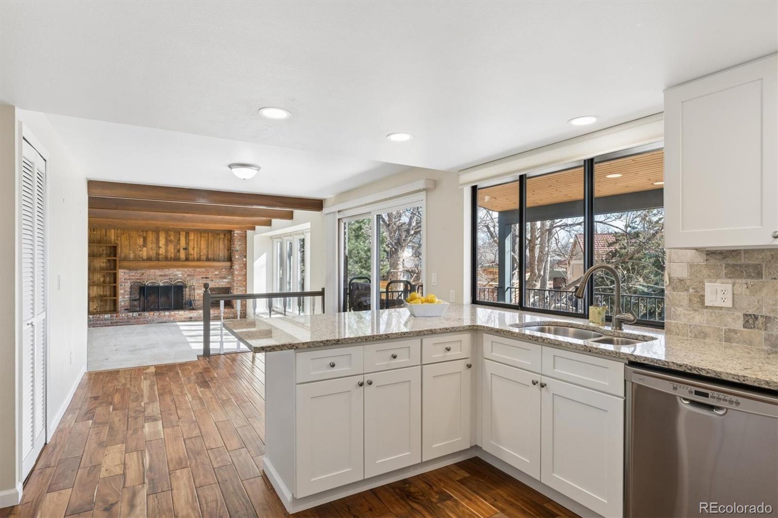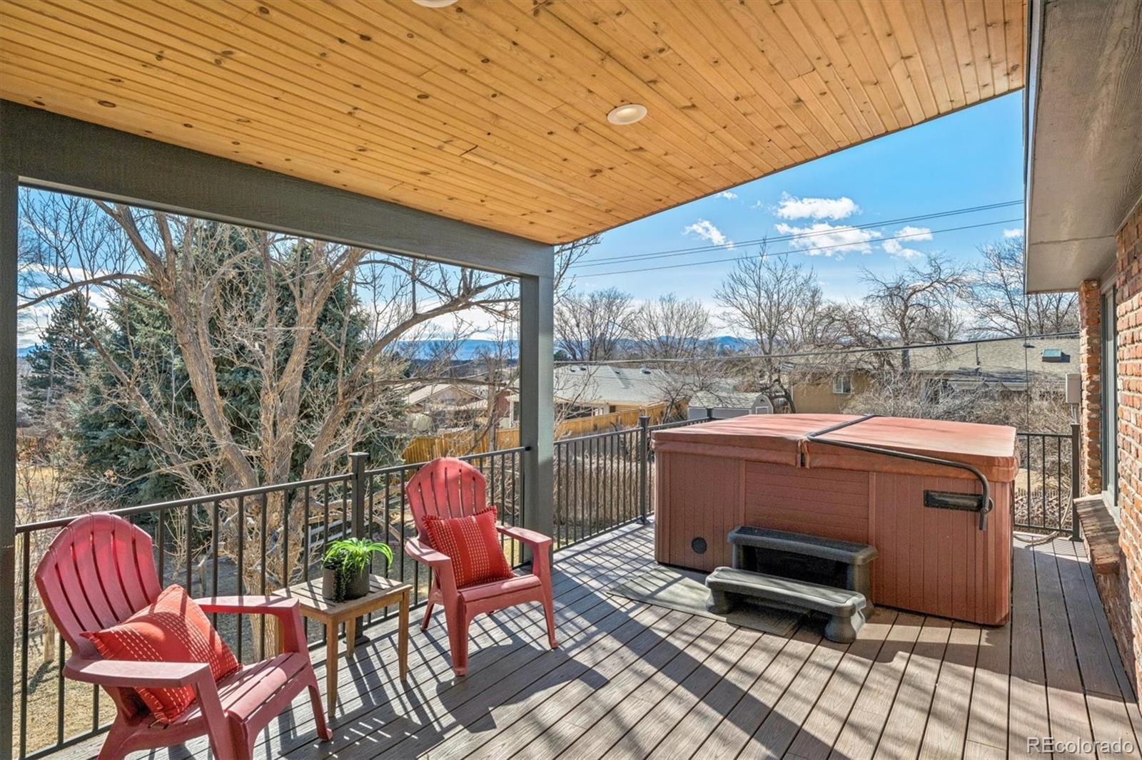 Perched on a quiet & private lot in Southwest Denver, 3582 W Dartmouth Avenue embodies refined Colorado living. Surrounded by mature trees, mountain views, & set on a generous 9,900+ square foot lot, this exceptional home offers more than 4,000 square feet of thoughtfully designed space that balances comfort, scale, & timeless appeal. Double front doors open to a grand entry, flanked by an elegant formal living room & a sophisticated den ideal for a study or office. Sunlight fills the front rooms, creating a warm & inviting atmosphere. The formal dining room provides the perfect setting for both intimate dinners & larger gatherings. At the heart of the home, the kitchen features granite countertops, newer appliances, & a spacious layout that flows seamlessly into the breakfast nook & adjoining family room with a cozy fireplace. The main level’s generous proportions reflect quality craftsmanship & enduring design. Upstairs, four bedrooms include a serene primary suite with ample space & a well-appointed walk-in closet. A newly added upstairs laundry area enhances everyday convenience. One of the home’s standout features is the expansive covered composite deck, complete with built-in lighting, hot tub, & dedicated gas line. Designed for year-round enjoyment, this outdoor space is ideal for relaxing mornings, entertaining, or taking in Colorado’s beautiful evenings. The walk-out basement offers exceptional versatility with multiple flex rooms suited for a media room, fitness space, office, or creative studio, enhanced by newer flooring & abundant room to personalize. Recent upgrades include an efficient heat pump with AC upstairs, Acacia hardwood floors, newer siding, smart thermostats, sprinklers, & additional improvements for modern comfort. Conveniently located near downtown Denver, the foothills, Highway 285, Santa Fe, light rail, & nearby Loretto Heights Park, this home provides easy access to both city amenities & outdoor recreation