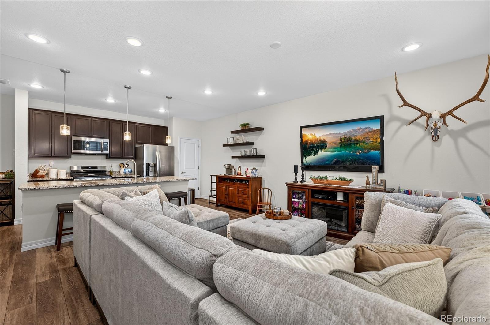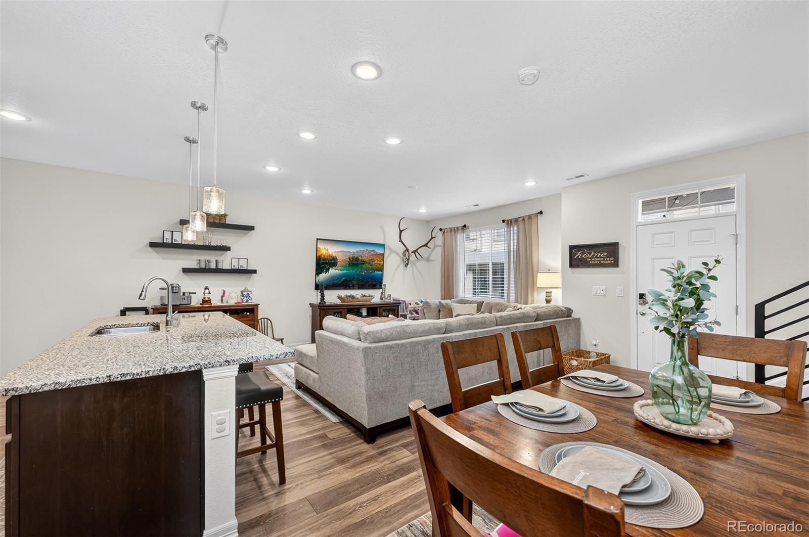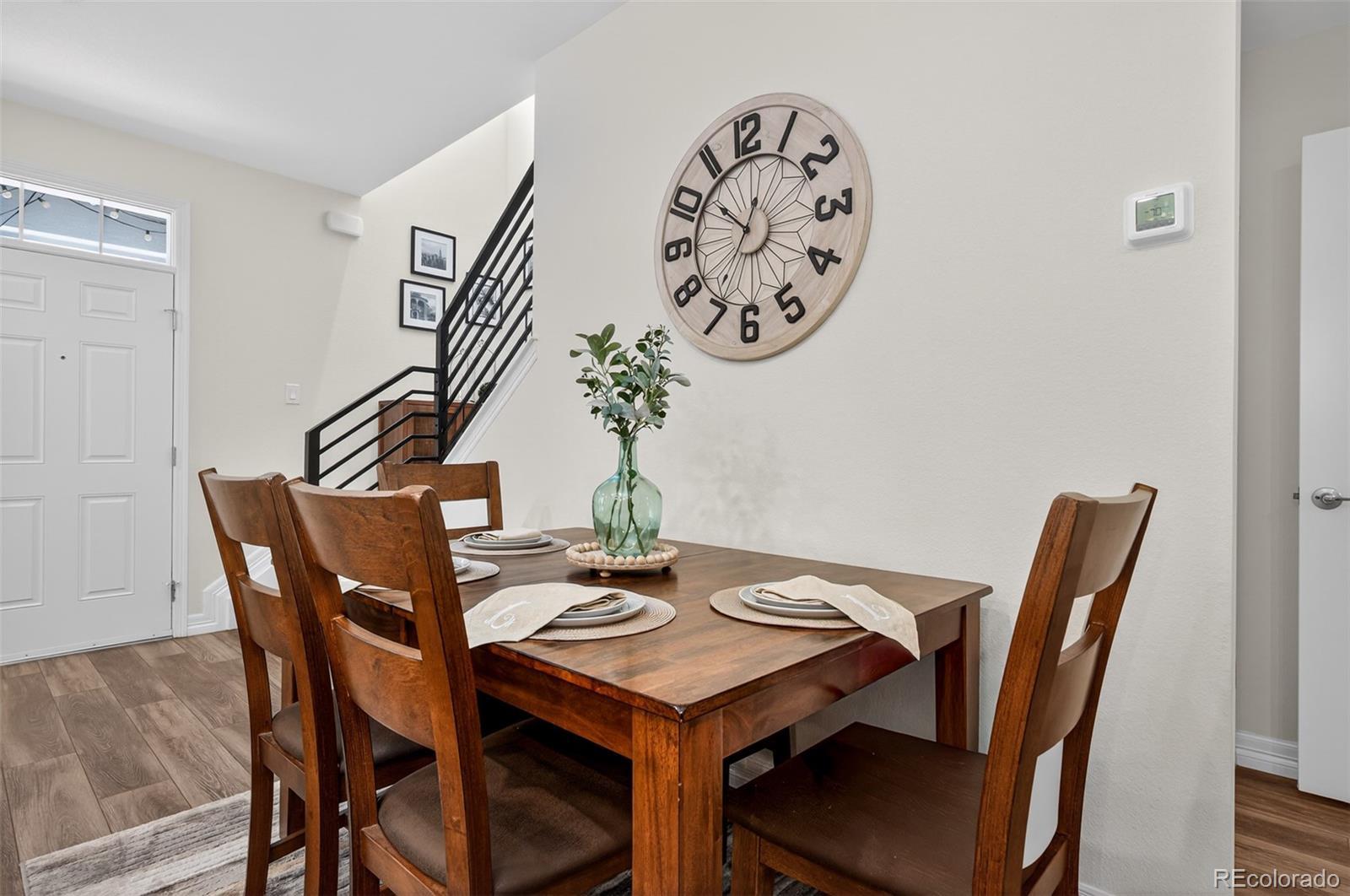 Welcome to this charming, impeccably maintained townhome in the desirable Buffalo Run East community. Thoughtfully upgraded to meet today’s buyer’s expectations, the home features luxury vinyl plank flooring throughout the entire main level. The kitchen is beautifully appointed with rich cabinetry, a pantry for ample storage, an expansive island with granite countertops, and stainless steel appliances—all included. The spacious family room easily accommodates a large sectional and accent tables, while a dedicated dining area provides the perfect setting for dinners or entertaining family and friends. Just off the staircase, an upgraded office nook offers an ideal space for remote work, homework, or creative projects. Upstairs, retreat to the true primary suite showcasing a bright, generously sized bedroom, walk-in closet, and a stunning en suite bath with dual sinks and an oversized shower. Two additional bedrooms and a full bathroom complete the upper level. Additional highlights include storage under the stairs, in the garage, and within the vapor-barrier–protected crawlspace. Enjoy weekends on the fairways of Buffalo Run Golf Course or explore nearby dining and shopping options just minutes away at the Prairie View Shops. Conveniently located only 10 minutes from Denver International Airport and about 20 minutes to Downtown Denver for games, concerts, and city nightlife. Schedule your private showing today and experience all the lifestyle this home has to offer.