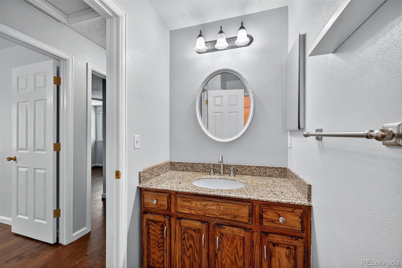 Beautifully updated townhome with the option for true main-level living sitting quietly in the heart of the high demand neighborhood of the Colony. The Colony is a wonderful community of quality townhomes tucked into a peaceful setting. The winding streets are lovely and the curb appeal of the units are impressive but the real show starts once you step inside this special home. You'll immediately be enveloped by a feeling of warmth provided by the soaring vaulted ceilings which is further enhanced by the natural light that flows perfectly through the huge picture windows. Hand-scraped wood flooring has been installed throughout the entire unit adding a quality feel that's hard to find. The family room flows nicely into the dining room and has a lovely gas fireplace serving as the main focal point. The eat-in kitchen has been upgraded with full-height white raised-panel cabinets, Quartz counter tops, subway tile backsplash and stainless steel appliances (all included). Venture to the back of the home and there's a spacious main level bedroom with an adjacent full bathroom, providing the opportunity for one-level living. Access to the private, fenced-in backyard is gained through the laundry room. Outside, you'll find a huge low maintenance deck overlooking a beautiful garden area with a circular flagstone walking path. It's your own private oasis that makes it easy and appealing to enjoy the Colorado weather. The upstairs boasts two generously sized bedrooms as well as another full bathroom. Both bathrooms have been upgraded with quality tile work and solid surface counters. Conveniently located within walking distance of the Southwest Rec center and Sprouts market (just a few blocks). Close to lots of wonderful restaurants along Wadsworth, Shopping, golf and outdoor recreation and trails at Bear Creek Lake Park. Quick to downtown and the mountains. This is an incredible townhome in a special location!