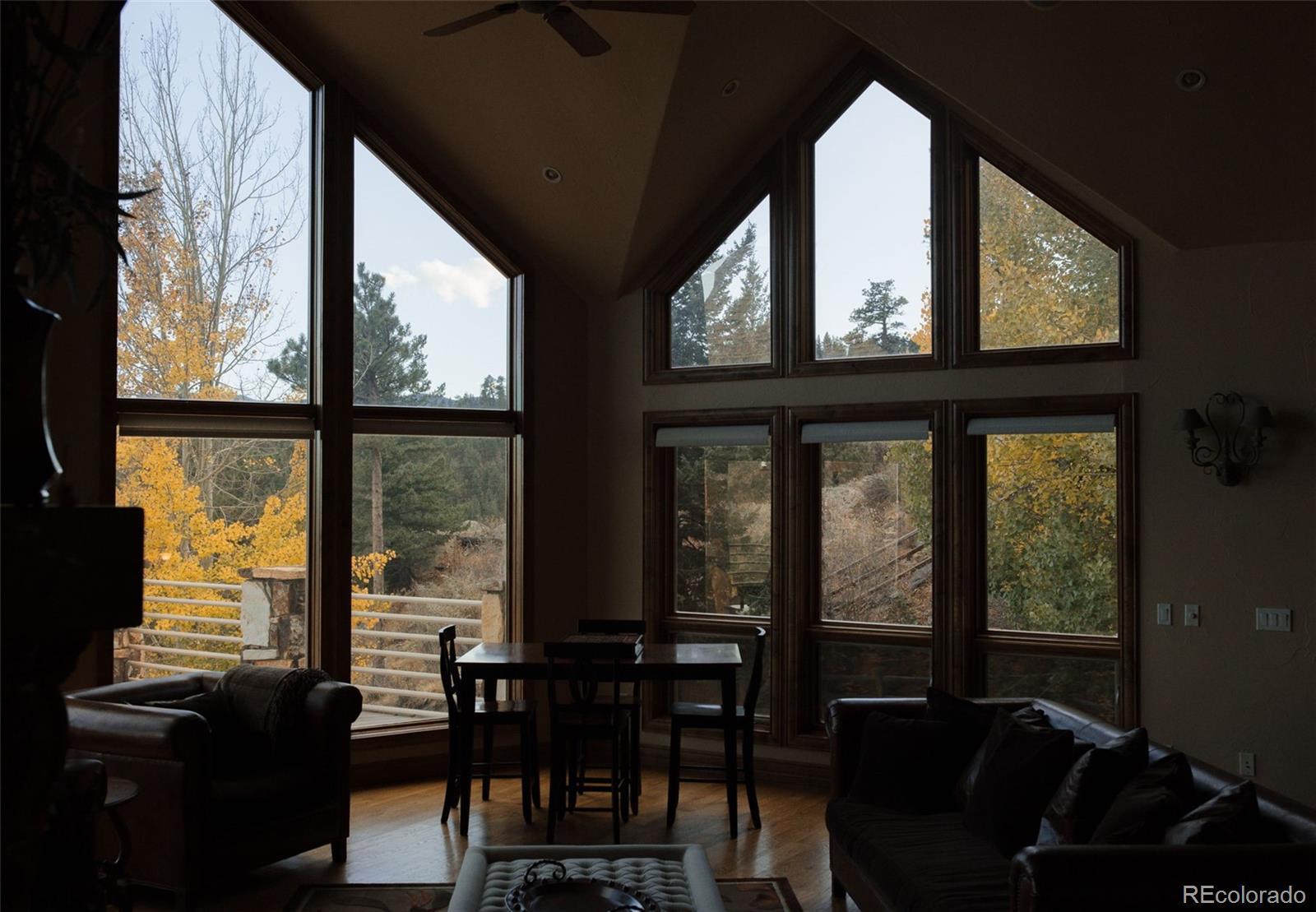 Your private luxury escape awaits on over 10 acres in Evergreen. This custom-built 5,900+ sq. ft. mountain home delivers high-end living with low-maintenance design, low utility costs, and low taxes—thanks to natural gas, full-home radiant floor heating, and efficient construction. Inside, vaulted ceilings and a dramatic two-sided fireplace set the tone for the open main level. The chef’s kitchen features Wolf and Sub-Zero appliances, a walk-in pantry, and seamless flow for cooking and entertaining. The home offers 4 spacious bedrooms, 2 dedicated offices, and 7 bathrooms (5 ensuite), including a hidden bath tucked behind custom shelving. Retreat to the primary suite with its spa-level steam room and separate private deck, or unwind on the lower level with the fully equipped theater room. Nearly every space is framed by mountain views. A massive wrap-around deck overlooks aspens and 360-degree scenery, creating the perfect backdrop for both quiet mornings and evenings with friends. The gated entrance, paved driveway, and oversized 3-car garage add privacy and ease. Bordering Beaver Brook Watershed trails and close to Upper Bear Creek, this property offers instant access to some of Evergreen’s best outdoor experiences. A rare blend of luxury, simplicity, and mountain serenity—your exclusive Colorado retreat.