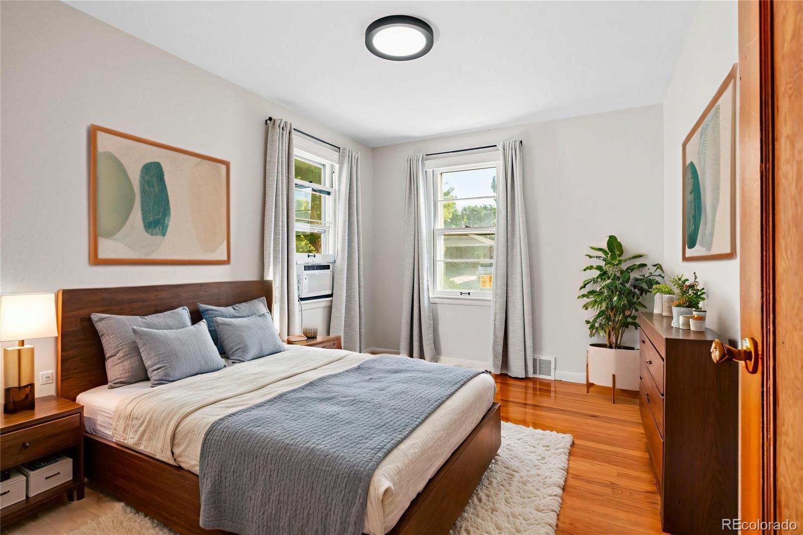Stylish and move-in ready, this upgraded ranch on a corner lot in Englewood offers 4 bedrooms, a finished basement, and flexible living spaces. The main floor features an updated kitchen with painted cabinets, newer appliances, and a refreshed bathroom. Fresh interior and exterior paint, and new shutters. A two car detached garage is there for all your parking, shop, and extra storage needs! The renovated basement includes a spacious family room, legal bedroom with egress window, and flex space perfect for entertaining, workouts, or a home office. Major updates provide peace of mind with a new electrical panel, energy-efficient furnace, water heater, and upgraded lighting and wiring. Enjoy the unbeatable location, close to parks, schools, shopping, and dining, with easy access to light rail and just minutes from downtown Denver. Extras include 3 window A/C units, a mobile A/C, and a nearly new washer and dryer. This Englewood gem blends modern upgrades, flexible living, and prime walkability.