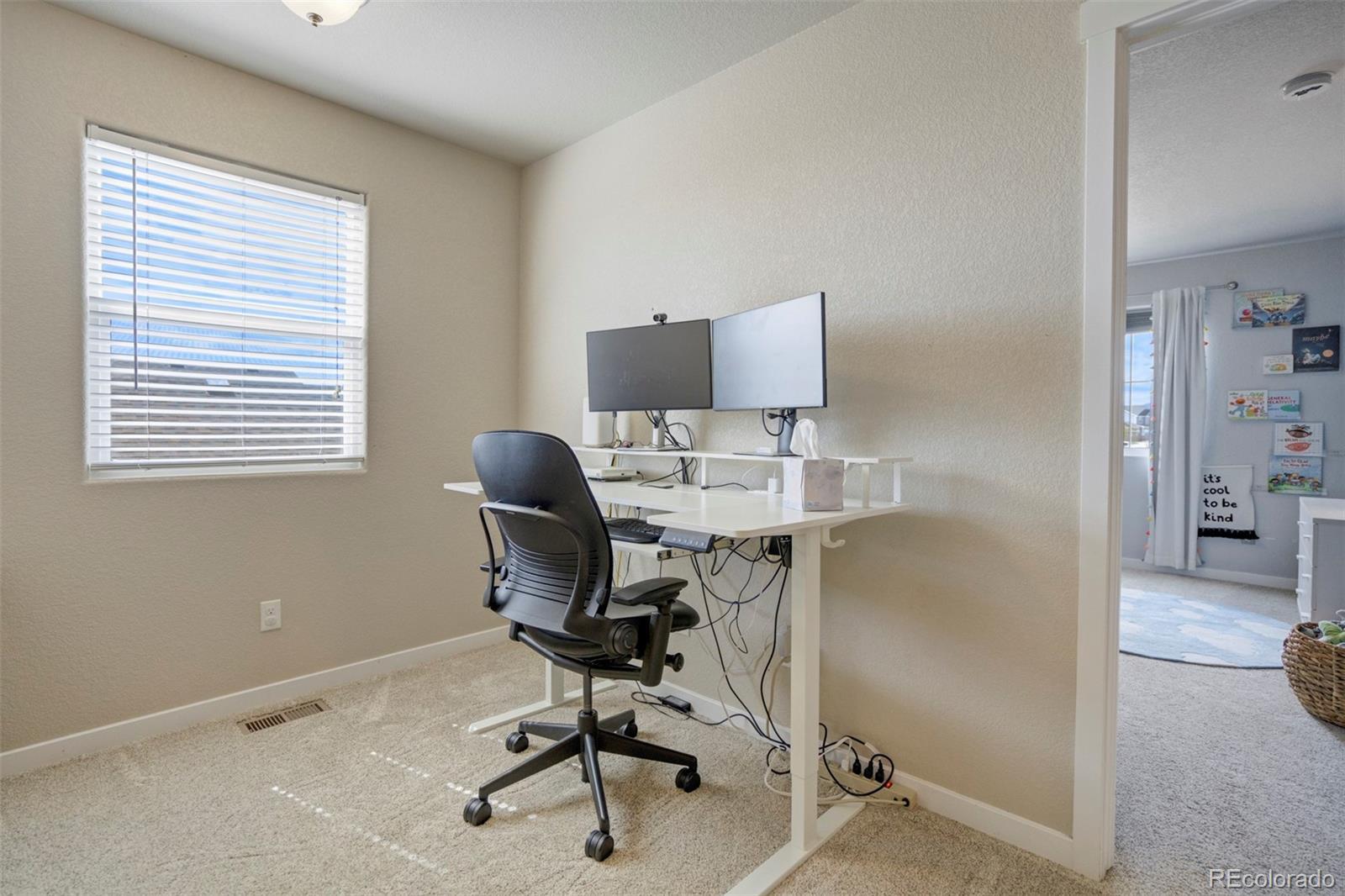Spacious 4-Bedroom Home with Pikes Peak Views in Dublin North! Welcome to this beautifully maintained 4-bedroom home nestled in the sought-after Dublin North community. Step into the open-concept main level, where natural light pours into the expansive living space featuring a custom built-in entertainment system—perfect for cozy nights or lively gatherings. The large kitchen has tons of cabinets, stainless steel appliances and a pantry for storage. A dedicated home office offers privacy and productivity, ideal for remote work or study. With laundry conveniently located upstairs alongside all four bedrooms, daily living is a breeze. Take in the stunning Pikes Peak vies from many of these upstairs windows. Out back, enjoy two oversized patios in a backyard designed for entertaining or relaxing. Whether hosting summer barbecues or enjoying quiet evenings, this outdoor space delivers. The unfinished basement provides a blank canvas for your dream rec room, gym, or guest suite. Recent updates include a brand-new hot water heater, newer kitchen appliances, and newer plush carpet throughout. Located just minutes from the Powers corridor, you'll have quick access to shopping, dining, parks, and top-rated schools. This home combines comfort, convenience, and potential—all in one unbeatable package. Don’t miss your chance to own in one of Colorado Springs’ most desirable neighborhoods. Schedule your showing today!