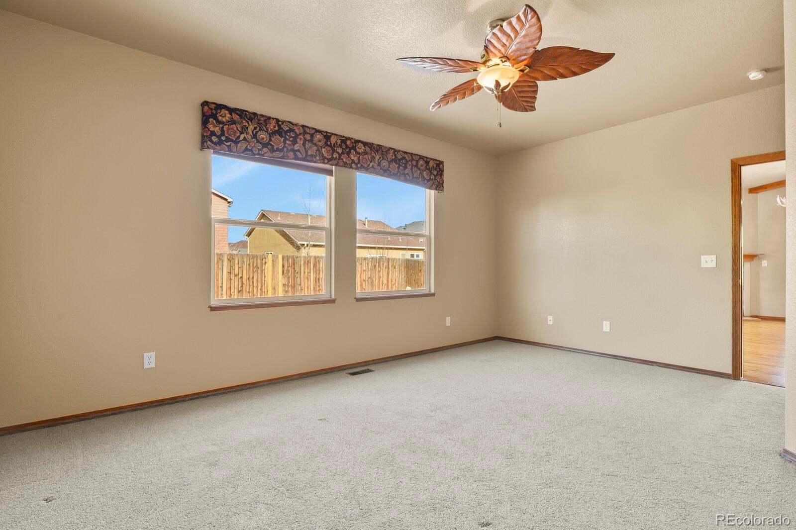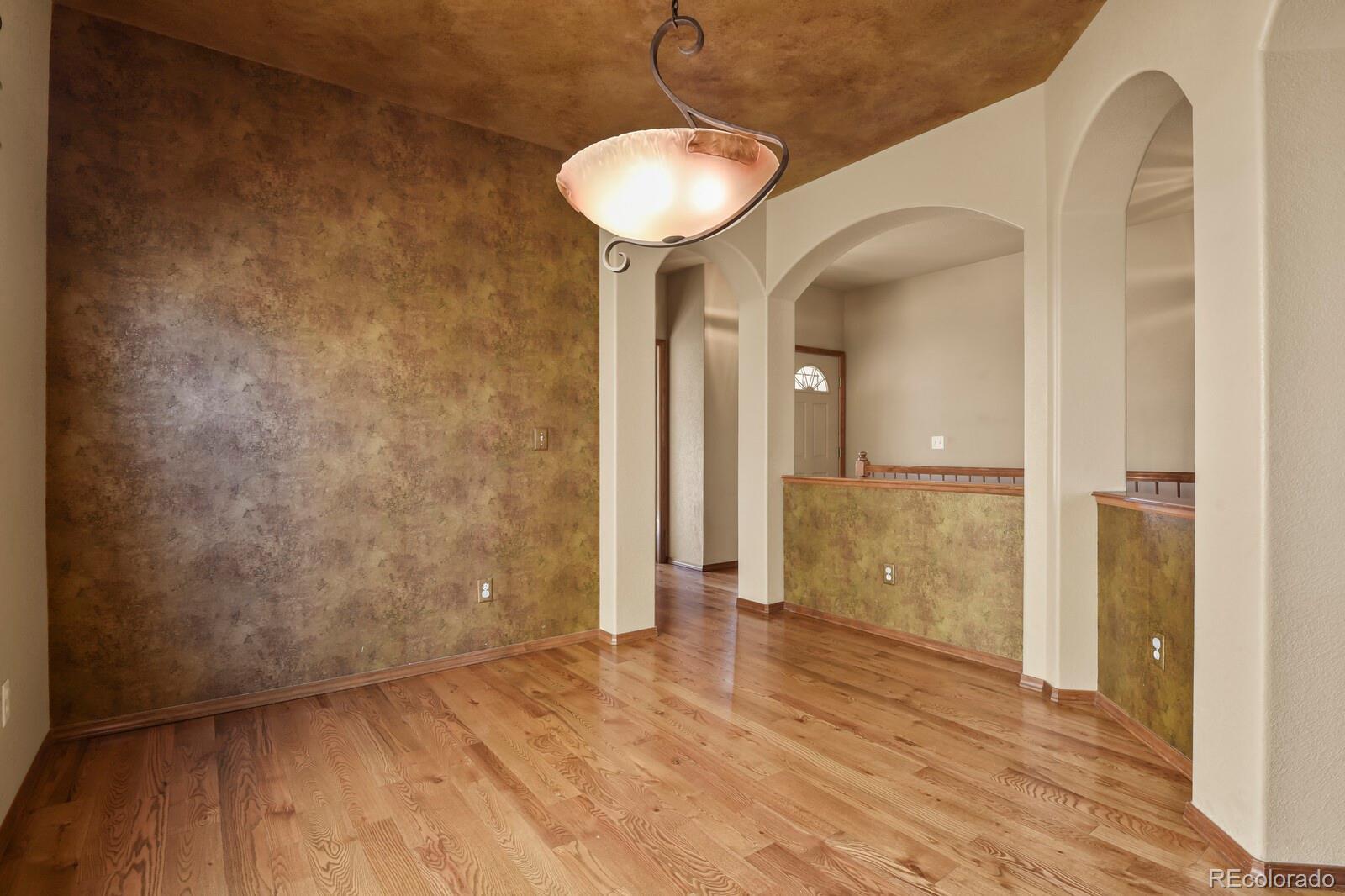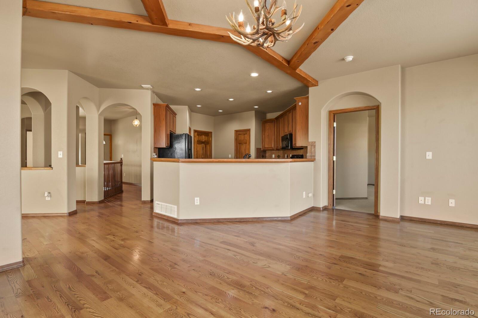 This is a beautifully designed semi-custom 4-bedroom, 3-bath home in the heart of Meridian Ranch. With just over 3,000 square feet, this property delivers the perfect blend of space, style, and functionality. Step inside to a main level highlighted by rich hardwood floors, high wood beamed ceilings and a layout designed for both easy living and effortless entertaining. The kitchen, dining, and living areas flow seamlessly, ideal for hosting, relaxing, or simply enjoying everyday life. Whether you're cooking a family meal or entertaining friends, the large open kitchen with pantry, has ample countertops, a center island and a breakfast bar. You'll find generously sized bedrooms throughout and a primary suite that truly feels like a retreat — the perfect mix of comfort and privacy. Need extra space? This floor plan delivers... offering room for guests, hobbies, or a home office. The finished basement expands your possibilities with a large rec room, guest space, or media zone. Perfect for movie nights, game days, or creating the ultimate hangout. Outside, enjoy Colorado living at its best with an oversized patio with your own private hot tub. The fully fenced low maintenance backyard is ready for summer barbecues, quiet mornings, or letting the kids and pets play freely. And of course, living in Meridian Ranch means you get so much more — miles of walking trails, a recreation center, pools, fitness facilities, parks, golf, and a community atmosphere that’s second to none. One of Peyton’s most desirable master-planned communities. If you’re looking for a home that checks all the boxes in a community that offers it all, this one is a must-see.