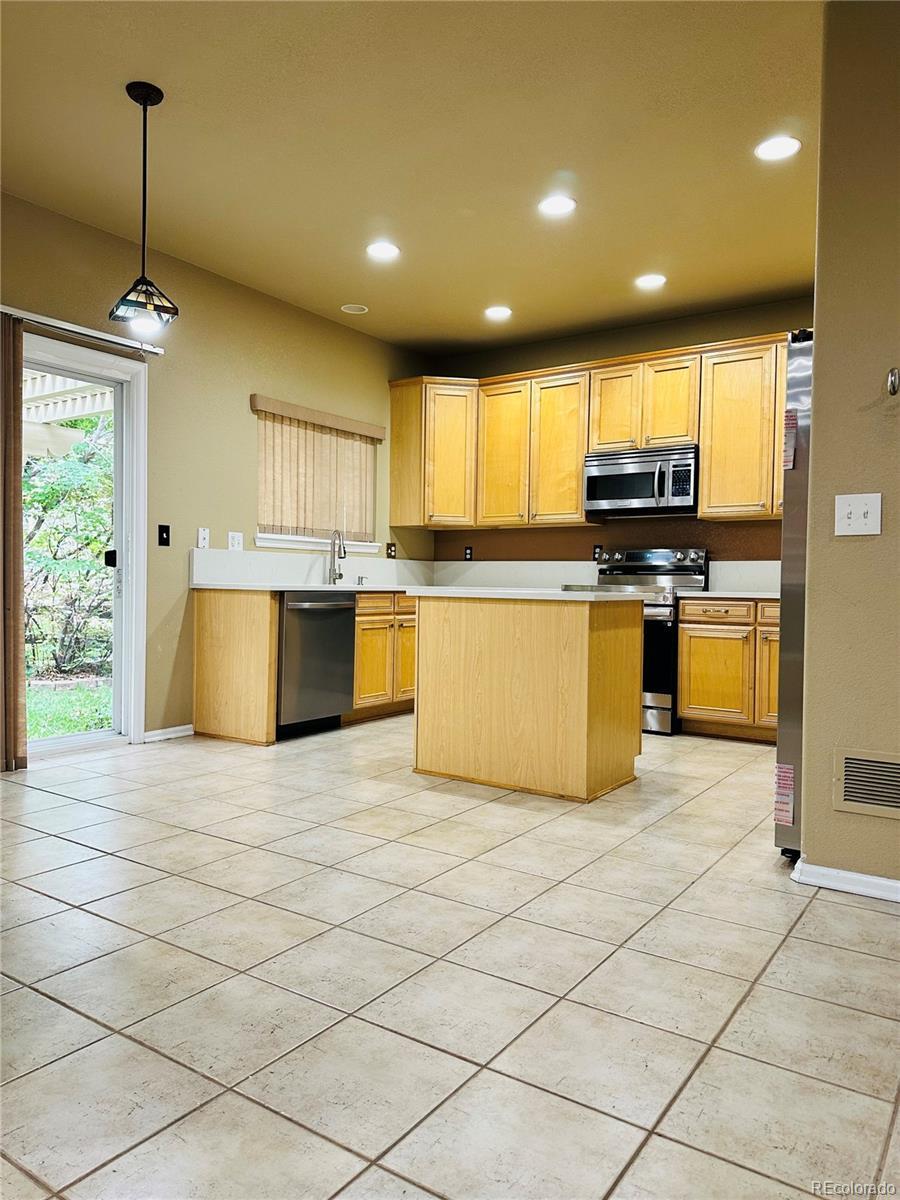Price Reduced. Updated, Quick Possession, Ready Move in home in The Farm. Cherry Creek Schools, Liberty Middle & Grandview High with the school bus stop right in front of the home. Brand new Samsung Stainless Steel Refrigerator, Stove and Dishwasher. All Quartz counter tops in the kitchen with matching gas fireplace in the living room. Dining table in the kitchen with Granite Top & Quartz Legs is yours to keep it. Washer included. Roof & Gutter replaced in 2023. Great location near I-225 and I -25, easy commute to Downtown, DIA or DTC. Close to shopping, dining in minutes.