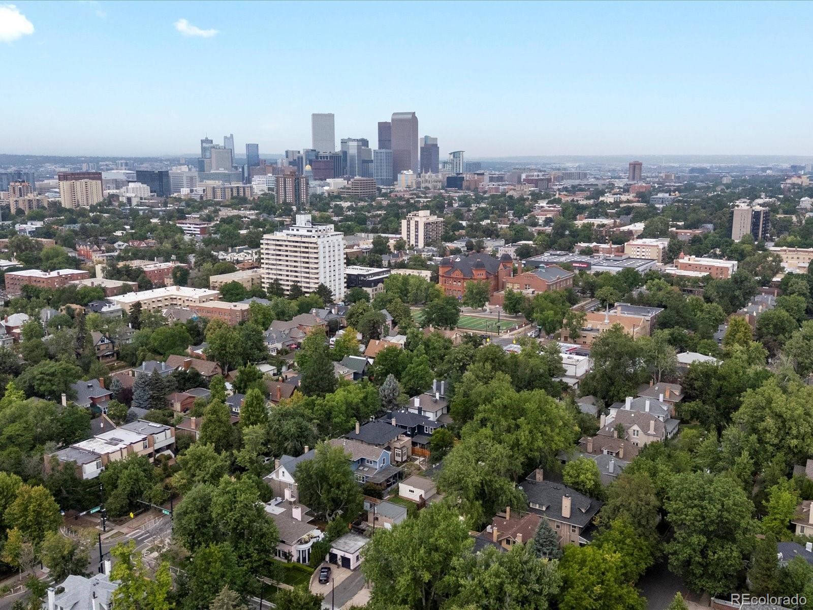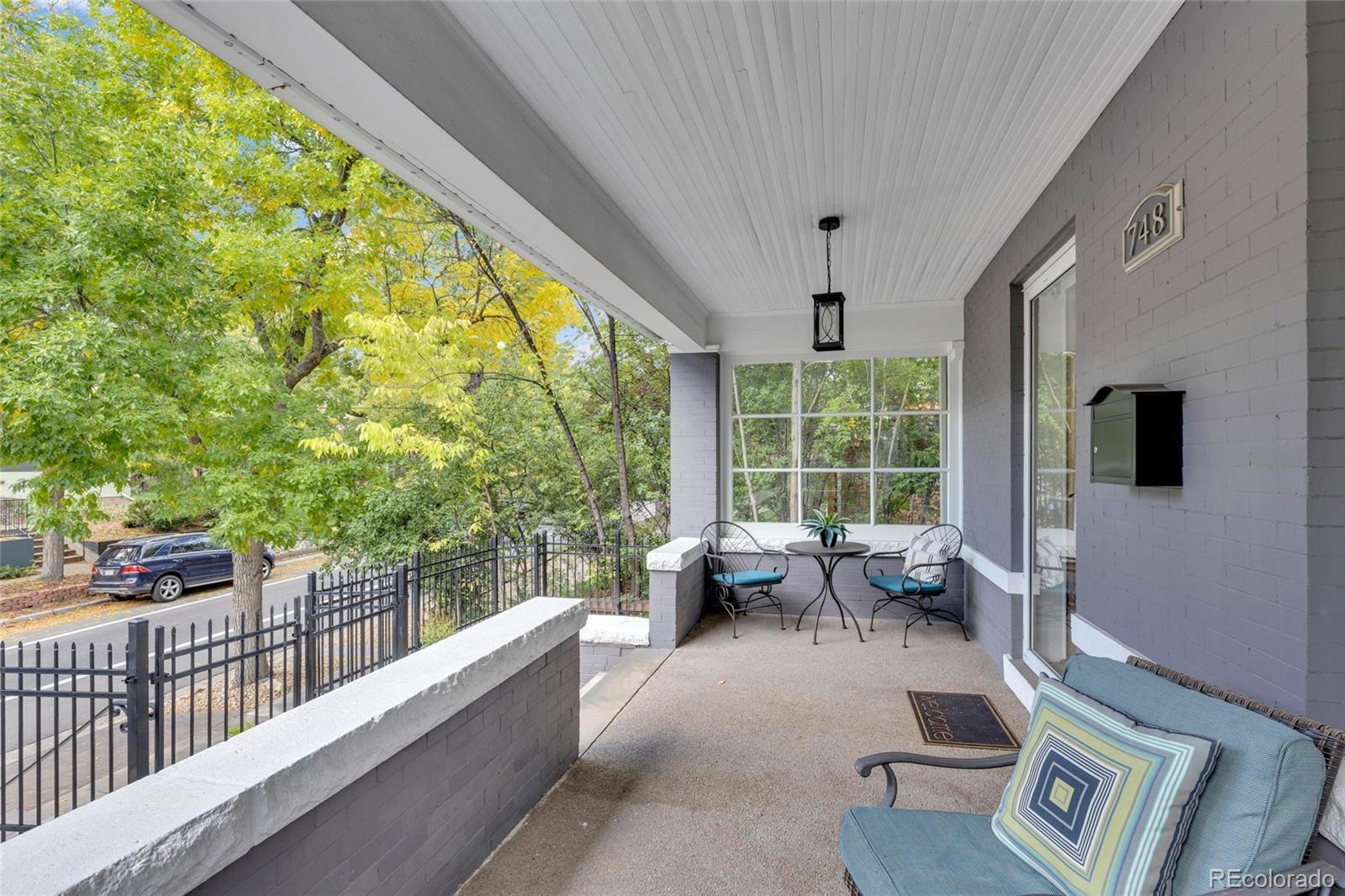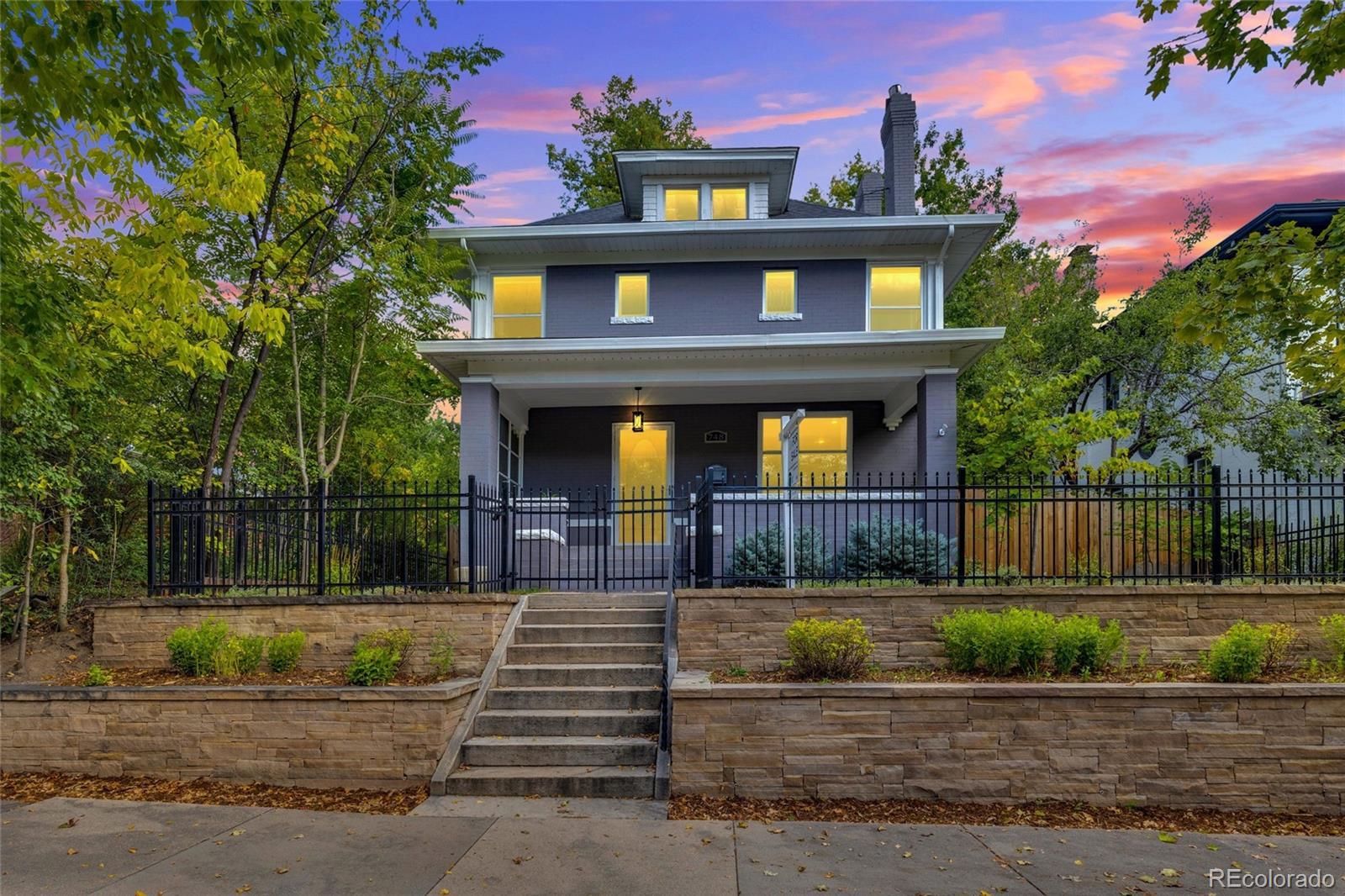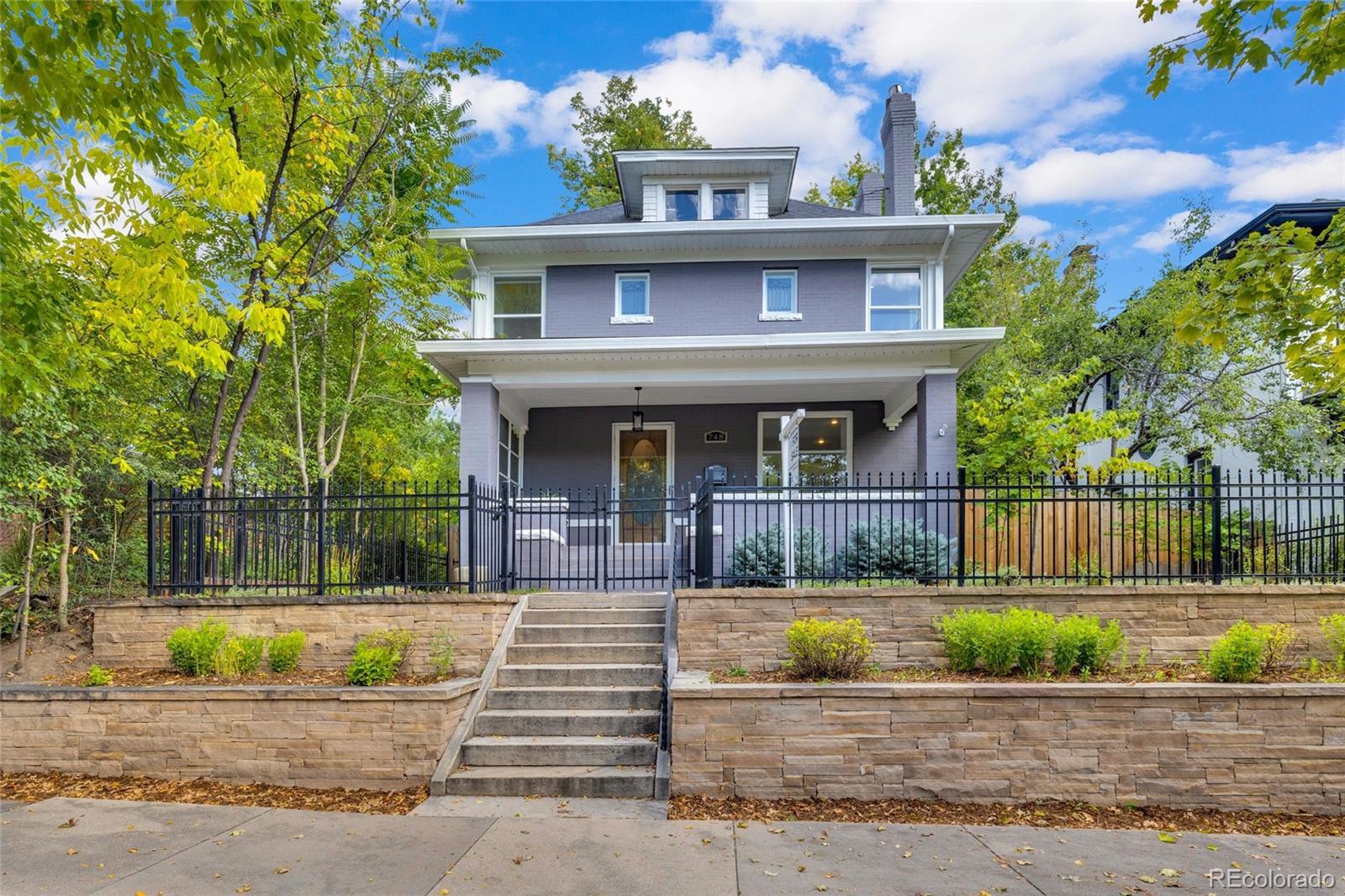 In the coveted 7th Avenue Historic District, where century-old trees line the streets and history lingers in brick and stone, a rare gem awaits. Built in 1907 and restored for modern living, this stunning Denver Square seamlessly blends timeless craftsmanship with refined designer detail. Set along one of Denver’s most iconic streets, the home welcomes you with lush landscaping and a gracious front porch. Inside, a parlor fireplace wrapped in Ann Sacks tile sets a warm, sophisticated tone, while the formal dining room glows alongside an original curved glass bay window. The gourmet kitchen, remodeled with cherry cabinetry and Bosch appliances, flows into a spacious family room that opens through French doors to a remarkable outdoor oasis. Entertain or unwind on the 400 sq. ft. patio beneath a pergola and bistro lighting, surrounded by a Hügelkultur garden, rose beds, and the original carriage house (turned garage) framed by a historic masonry wall. Upstairs, the spa-like primary suite features a luxurious bathroom and an oversized walk-in closet, complemented by a second bedroom and a full bath. The third floor expands the possibilities, offering flexible space for a home office, reading nook, creative studio, or additional guest suite. A rare finished basement adds yet another layer of functionality, featuring a private suite with its own entrance and laundry, making it perfect for multigenerational living, visiting guests, live-in support, or as an income-producing rental. This is more than a beautifully restored historic home: it’s a living piece of Denver history, with updates for peace of mind: new furnace (2025), custom Jellyfish lighting (2023), updated electrical and plumbing (2016), sewer line (2022), A/C (2017), and exquisite woodwork throughout. With a Walk Score of 91 and just blocks to Cheesman Park, Denver Botanic Gardens, Cherry Creek, and local shops, this home is rooted in one of the city’s most walkable, bikeable, and beloved neighborhoods.