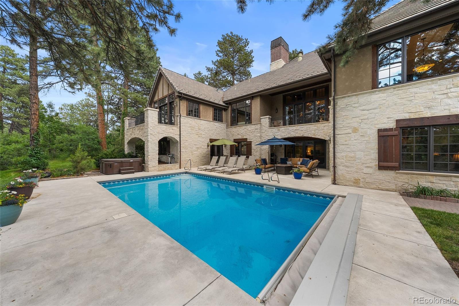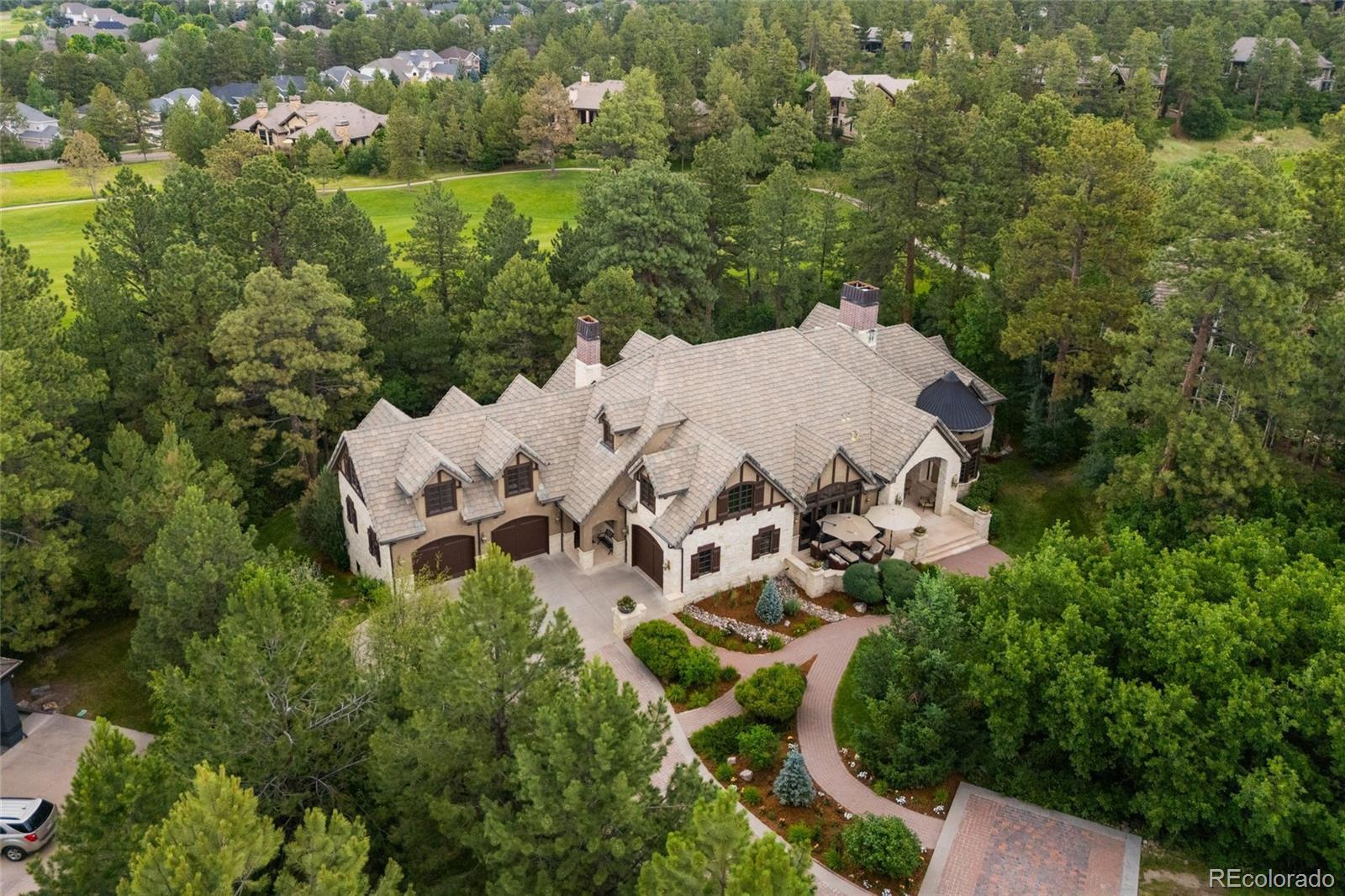 Set against a breathtaking, tree-filled backdrop on nearly an acre along the 5th fairway of the Country Club at Castle Pines, this extraordinary estate offers a rare blend of privacy, luxury, and lifestyle. Located in gated Castle Pines Village, the home feels like a secluded retreat where golf course views and towering pines create an unforgettable Colorado setting. Designed for both everyday enjoyment and effortless hosting, the residence is rich with private amenities and thoughtfully designed spaces. The walkout lower level opens to a resort-style backyard featuring a private pool, expansive patio, and lush lawn—ideal for relaxing ot entertaining. Inside, enjoy a dedicated fitness area, a television lounge with bar, a gaming and pool table space, and a home theater, creating endless options for recreation and hobbies without ever leaving home. Multiple bedrooms and flexible rooms throughout the home provide exceptional accommodations for guests, remote work, or creative pursuits, while generous living and entertaining areas invite gatherings both large and small. Upper decks offer sweeping views of the golf course and surrounding trees, and a separate lower-level garage adds valuable space for storage, gear, or collector vehicles. This is more than a residence—it’s a private golf course retreat designed to support every passion. Residents of The Village at Castle Pines enjoy a true mountain setting with 24-hour security, miles of trails, pools, tennis and pickleball courts, fitness facilities, playgrounds, and a vibrant calendar of community events. A rare opportunity to own an exceptional estate in one of Colorado’s most prestigious gated communities. Call Me Today for your private tour of this estate and the community amenities.