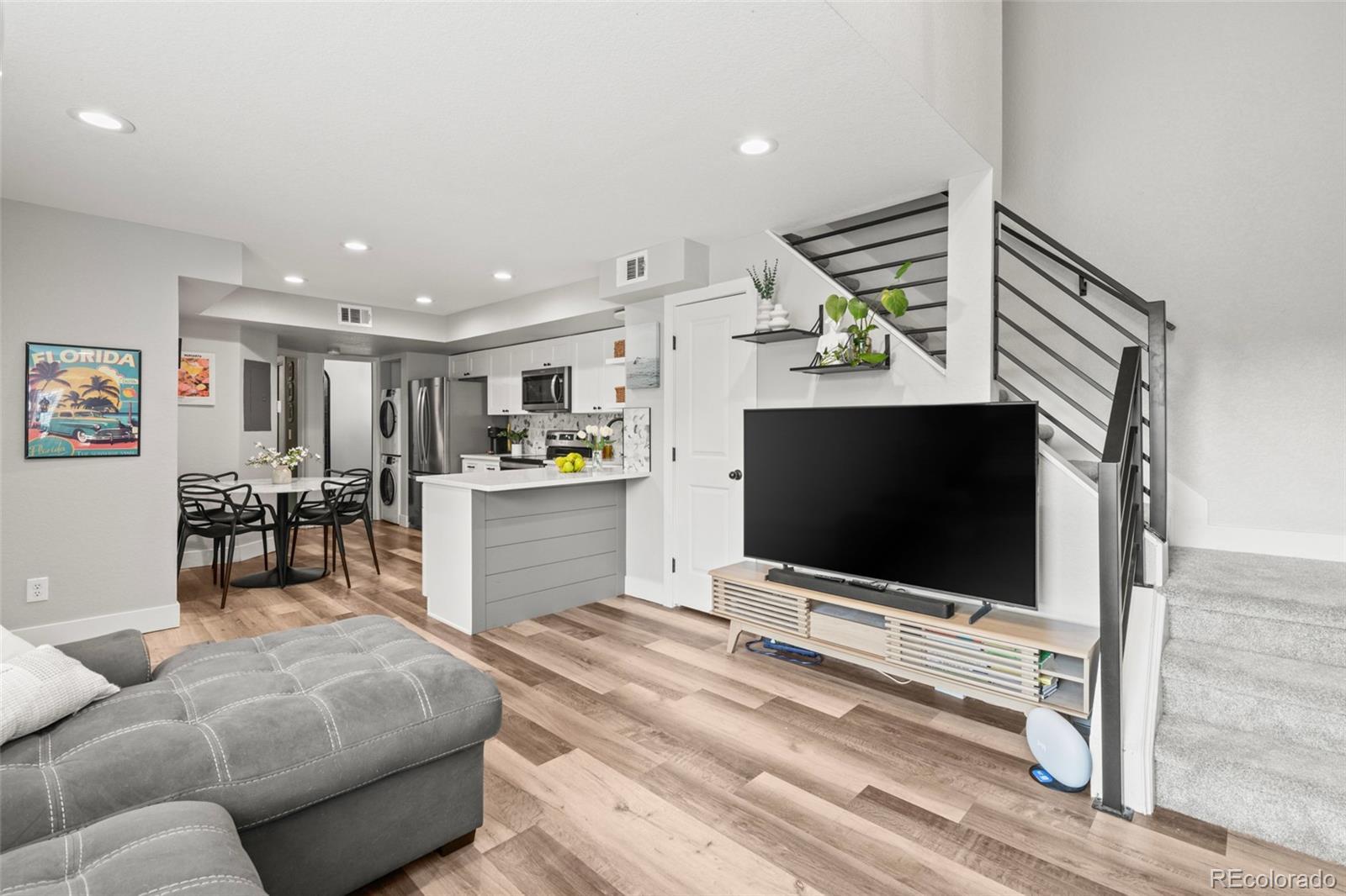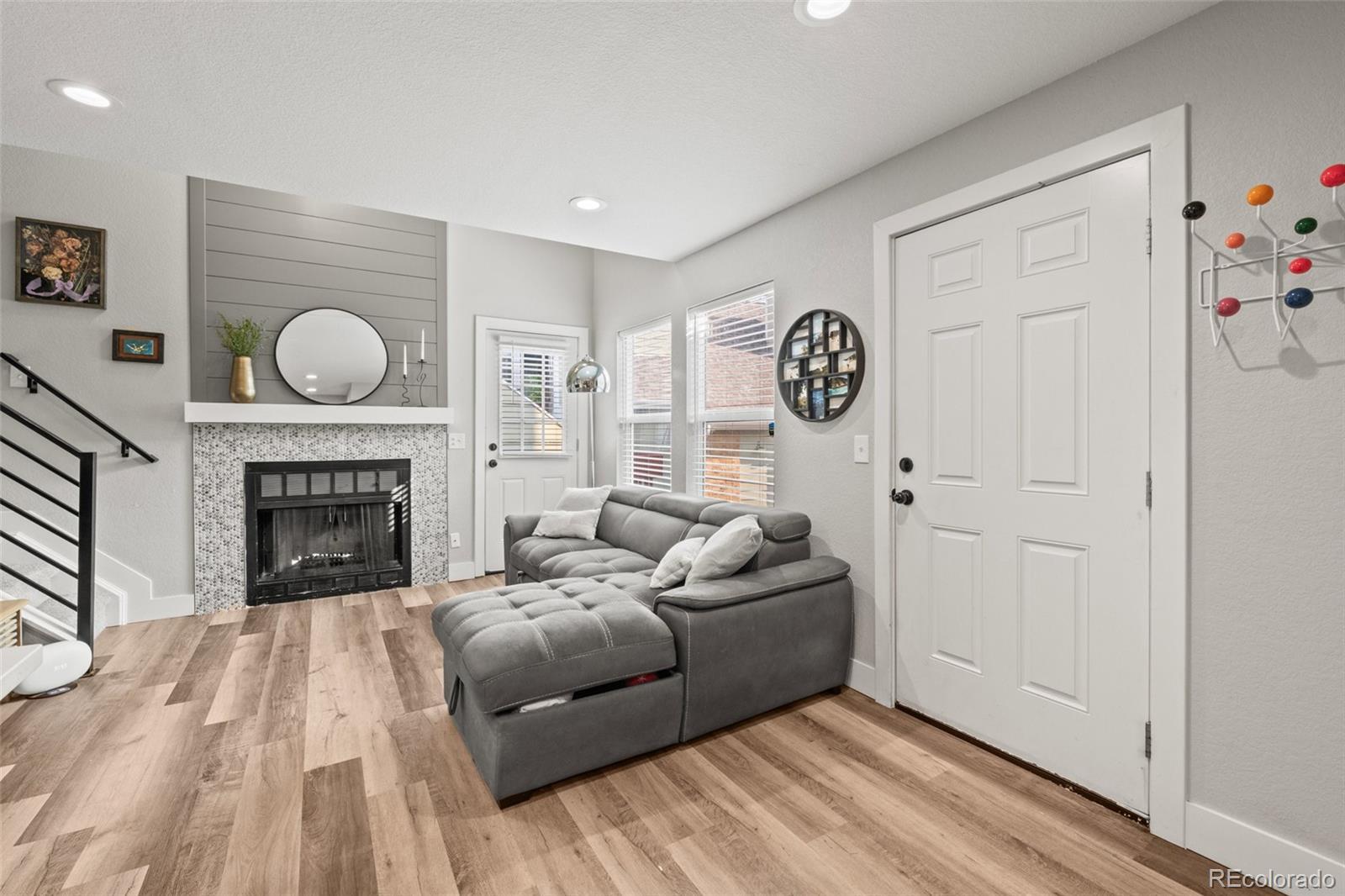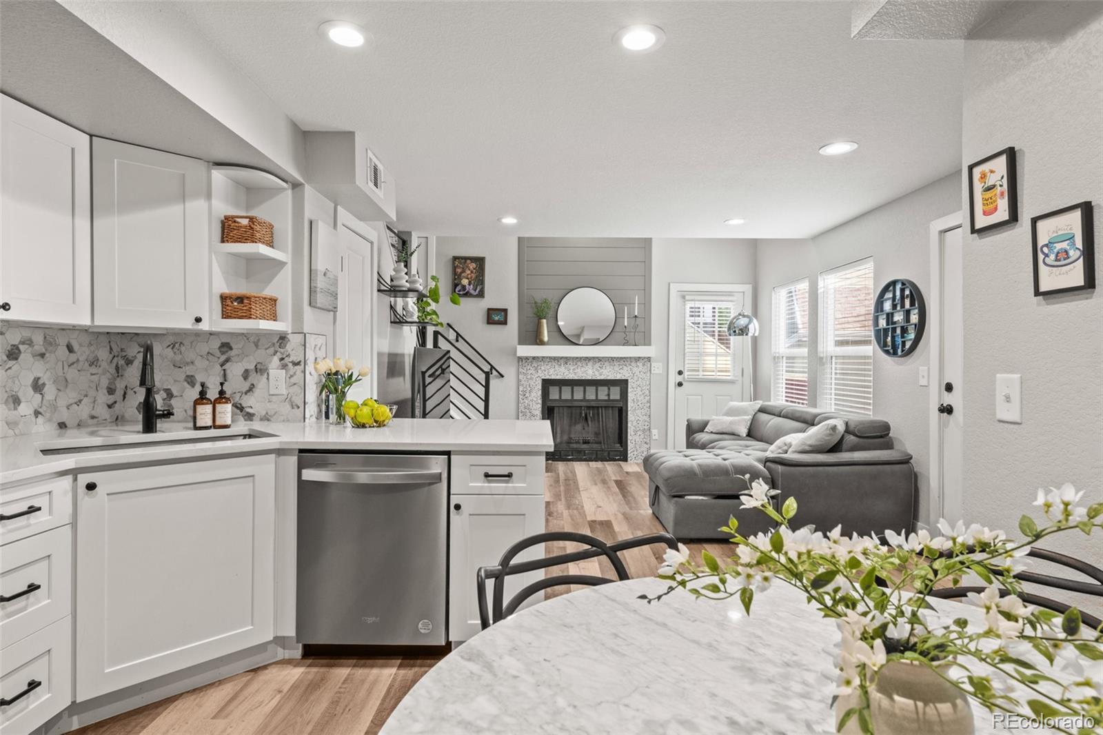 Welcome to a beautifully updated retreat in Aurora—where modern design, comfort, and convenience come together in one inviting package! This thoughtfully renovated 2-bedroom, 1-bathroom condo stands out from the rest with its bright, open layout, soaring vaulted ceilings, and stylish finishes throughout. Step into the light-filled kitchen, where quartz countertops, stainless steel appliances, and sleek cabinetry create the perfect blend of function and style. The open living area is anchored by a cozy fireplace with a striking shiplap accent wall—adding warmth and personality to the space. Upstairs, a versatile lofted second bedroom offers flexibility for a guest room, home office, or creative studio. The custom-designed bathroom is a true showpiece, featuring rich green tile, elegant gold accents, and a modern aesthetic that elevates daily routines. A private deck with extra storage extends your living space outdoors, while in-unit laundry adds everyday convenience. Beyond your front door, you’ll enjoy access to a refreshing community pool, perfect for relaxing on sunny Colorado days. Ideally situated near shopping, dining, parks, and easy commuter routes, this home offers a low-maintenance lifestyle without sacrificing comfort or style. Don’t miss your chance to own one of the most updated condos in the community—schedule your private showing today! ***** UP TO 1% LENDER-PAID CREDIT AVAILABLE WHEN YOU CHOOSE PREFERRED LENDER, LOAN OFFICER WITH OPTION 1 MORTGAGE FOR FINANCING THIS PROPERTY. INCENTIVE AVAILABLE ONLY FOR ELIGIBLE LOAN PROGRAMS. ADDITIONAL BORROWER AND PROPERTY QUALIFICATIONS APPLY. COST AND BENEFIT OF CREDIT DETERMINED AT TIME OF RATE LOCK.*****