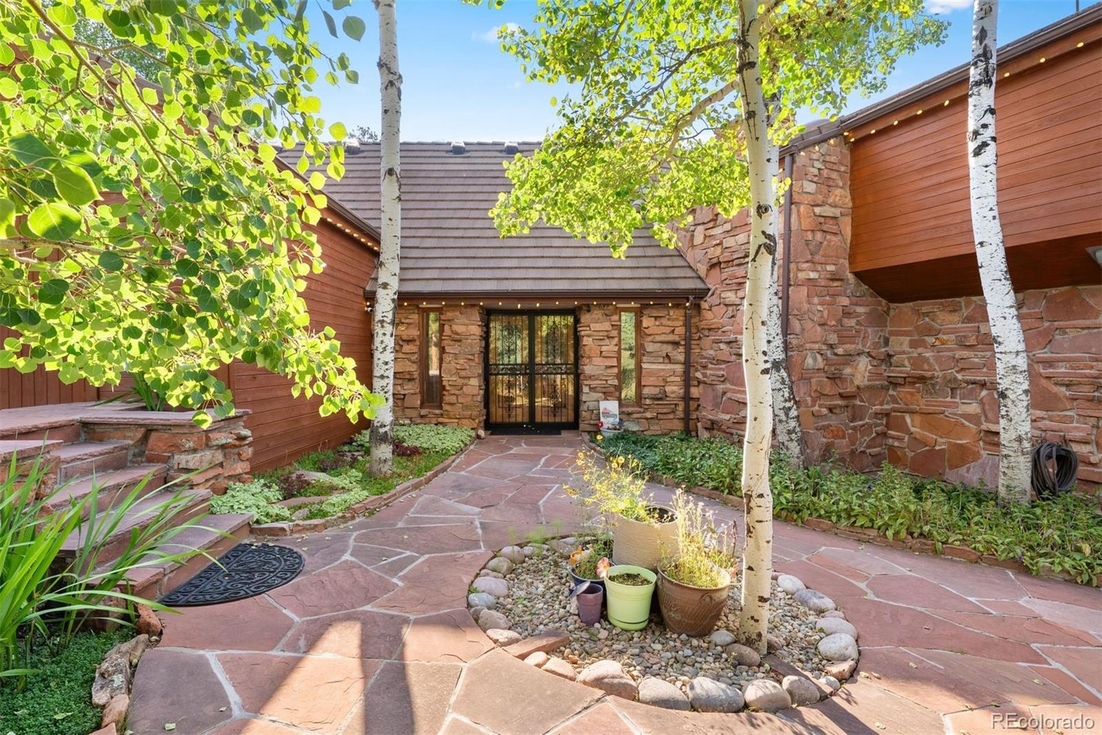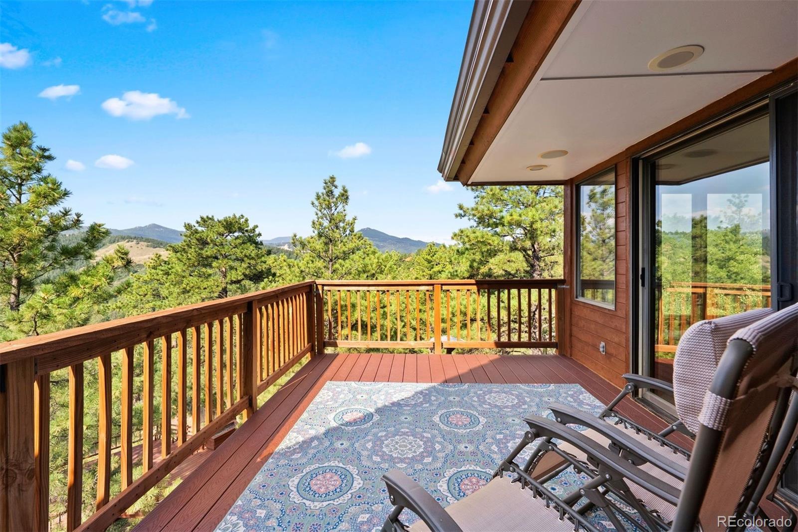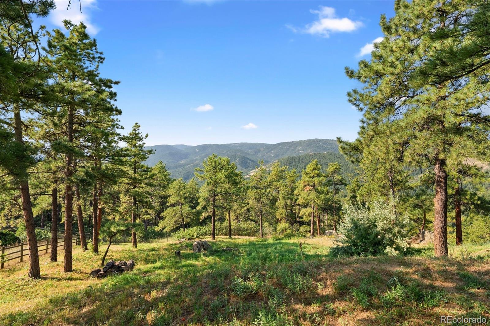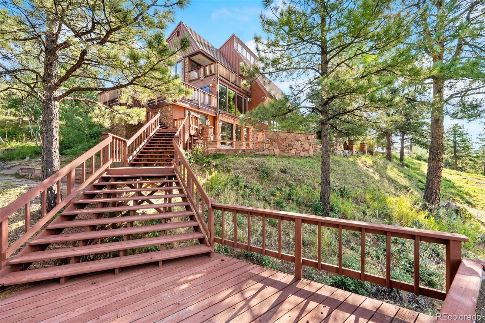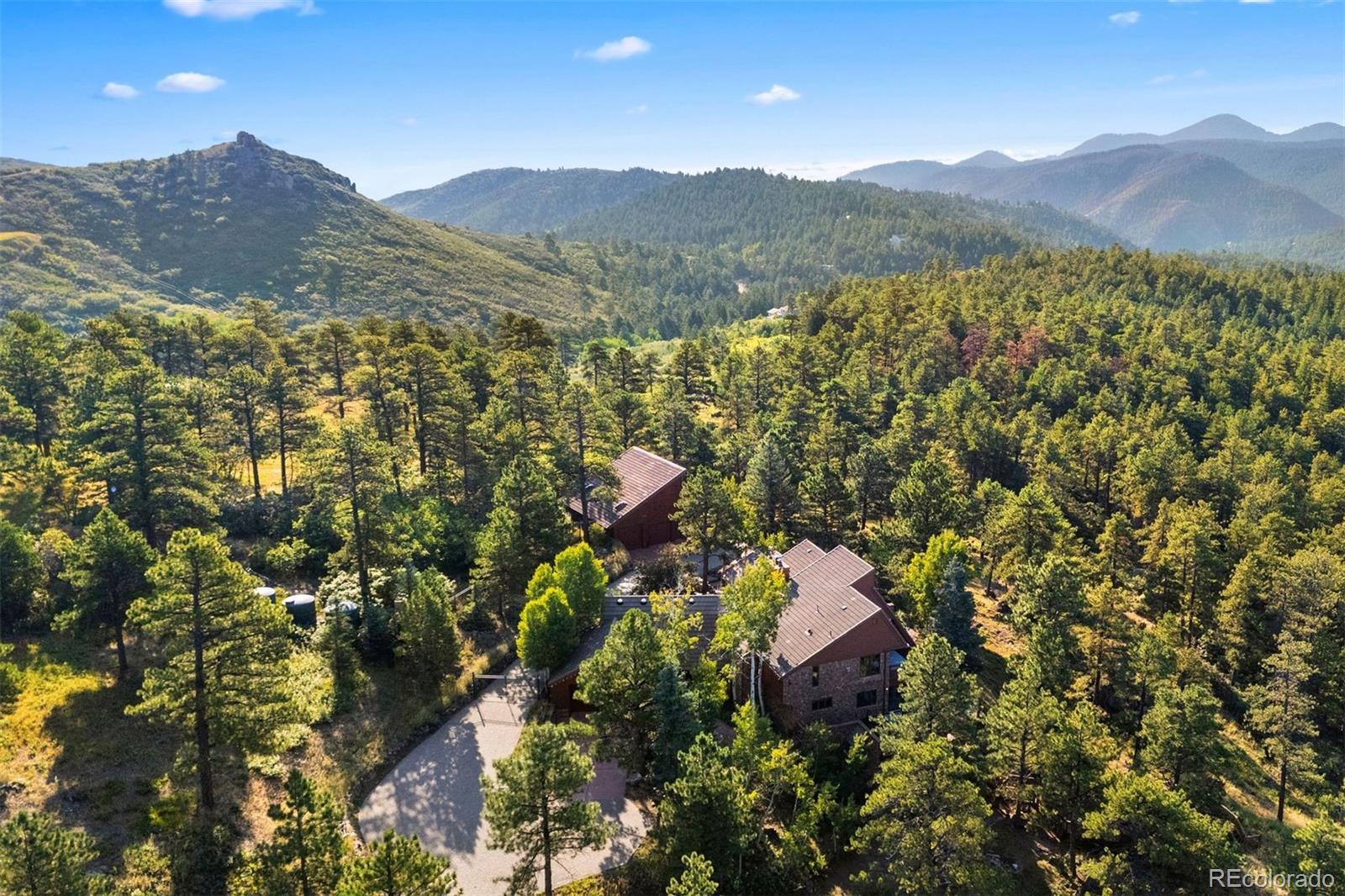 Set upon expansive acreage in a secluded gated mountain sanctuary known as West Ranch, this extraordinary estate captivates with breathtaking Colorado views. Originally constructed in 1977 by a Denver Broncos player, this residence is special in every sense of the word. It has undergone several renovations to maintain its luxurious appeal while preserving its unique character. The 7,285 square feet of impeccably designed living space is enhanced by extensive decks, providing unparalleled mountain viewing and sophisticated entertaining opportunities. The open floor plan floods the home with natural light through expansive windows framing stunning views. The gourmet kitchen boasts alder cabinetry, quartz countertops, a gleaming tile backsplash, premium appliances, and eye-catching light fixtures. Wood flooring flows throughout the main level, encompassing a custom office, television room, hearth room, and dining area. The upper level houses a magnificent primary suite with private deck for capturing panoramic views, plus an additional spacious bedroom with full bathroom. Multiple fireplaces create inviting ambiance throughout the residence, while the finished basement offers a kitchenette, recreation room with fireplace, and remarkable walk-in wine cellar. Outdoor entertainment flourishes on the walkout basement patio featuring grilling areas, water features, and gas fire pit. The impeccably kept grounds feature lush landscaping, a flat backyard lawn, and a central courtyard with vibrant plantings that evoke an enchanting English garden. Equestrians will appreciate the three-stall barn with paddock area, perfectly blended with mountain living. With 1,250 acres and just 52 home-sites, surrounded by 500 acres of preserved open space, this remarkable community prioritizes environmental stewardship, wildlife preservation, and beauty while maintaining exceptional privacy and security. You'll enjoy unparalleled mountain tranquility while finding convenience to amenities.