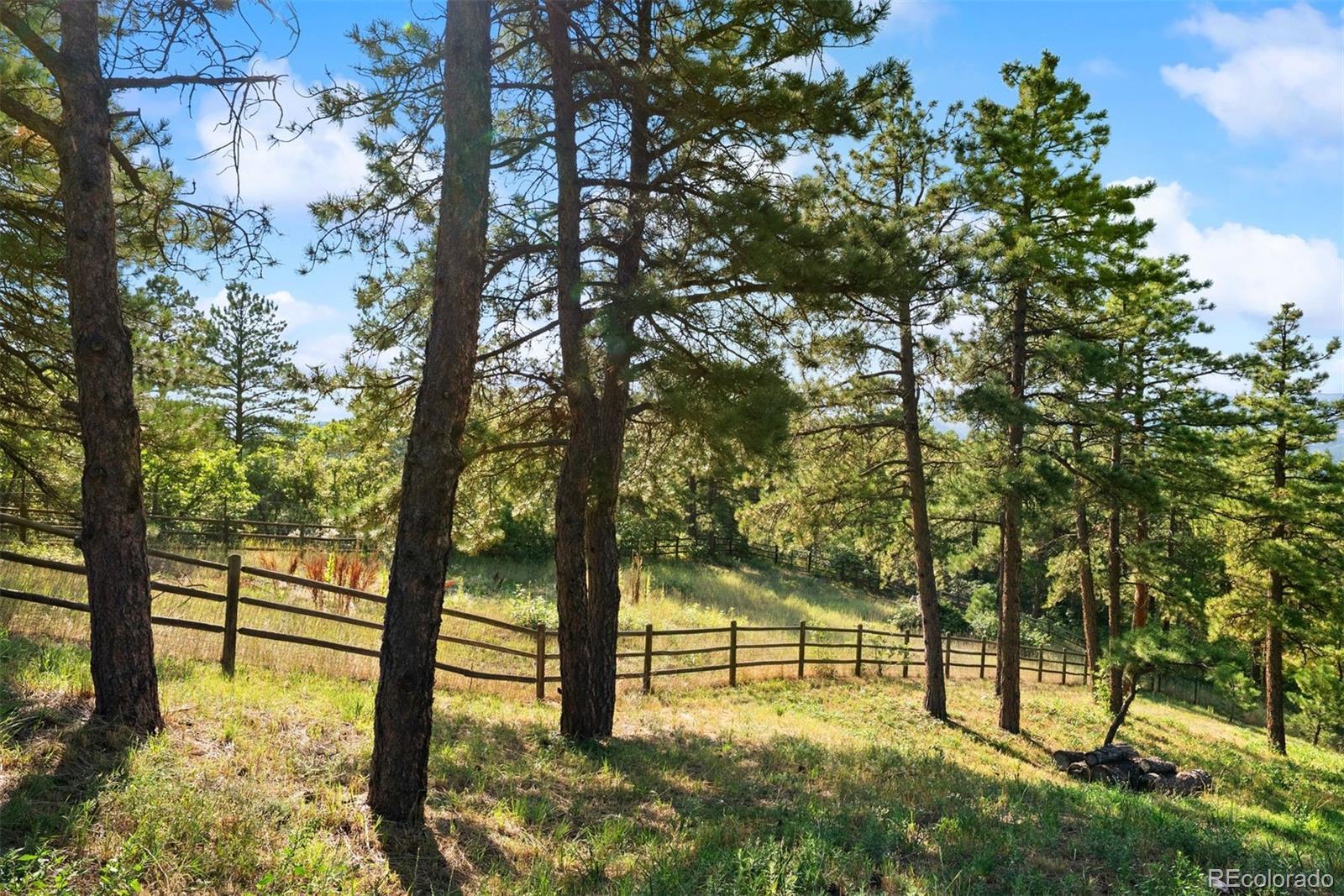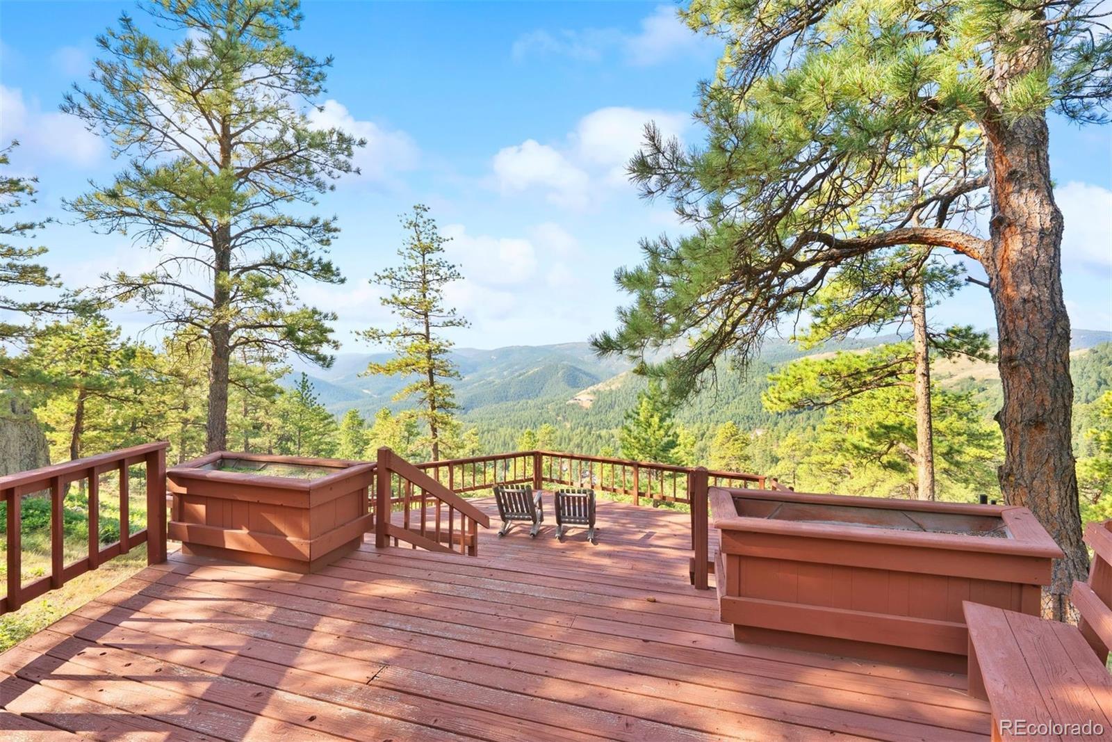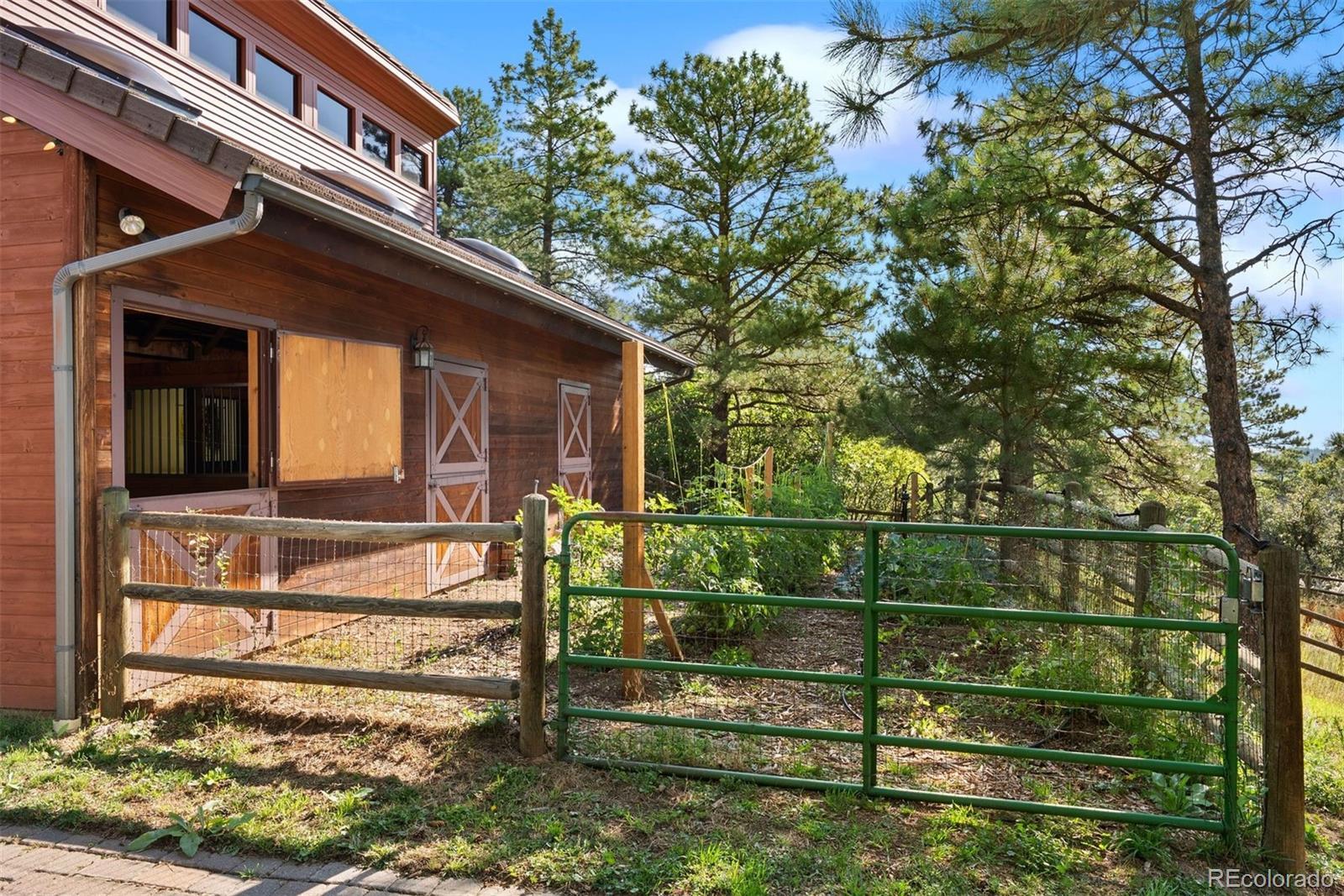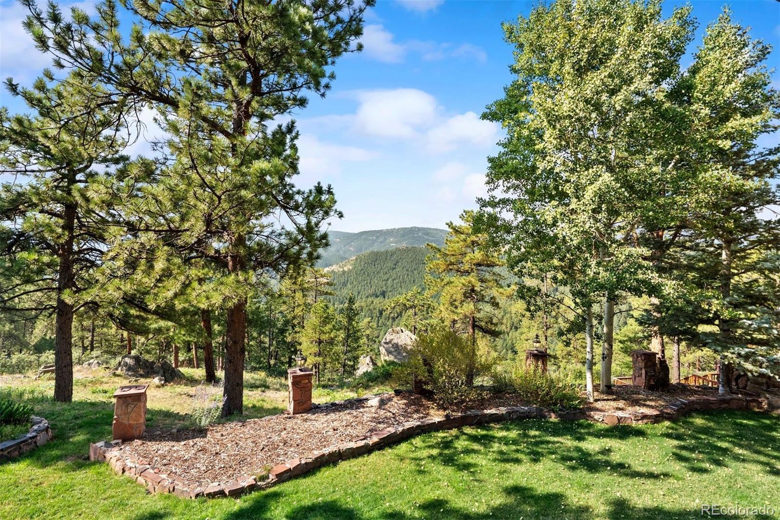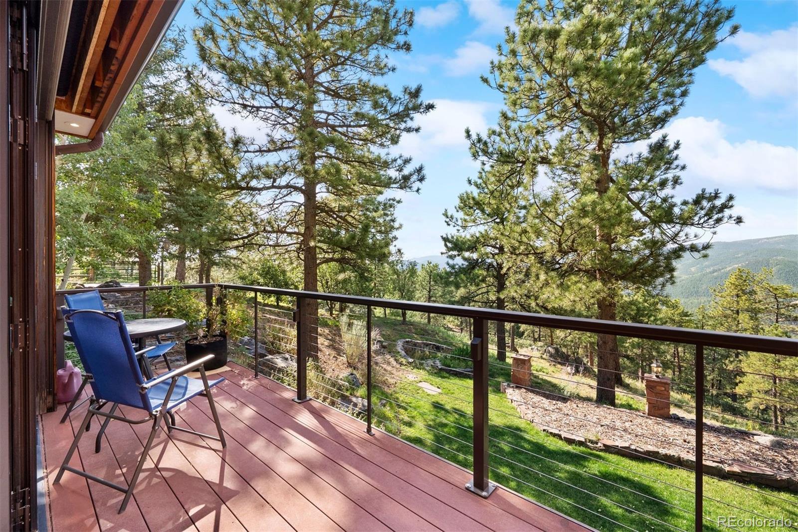 Set upon expansive acreage in a secluded gated mountain sanctuary known as West Ranch, this extraordinary estate captivates with breathtaking Colorado views. Originally constructed in 1977 by a Denver Broncos player, this residence is special in every sense of the word. It has undergone several renovations to maintain its luxurious appeal while preserving its unique character. The 7,285 square feet of impeccably designed living space is enhanced by extensive decks, providing unparalleled mountain viewing and sophisticated entertaining opportunities. The open floor plan floods the home with natural light through expansive windows framing stunning views. The gourmet kitchen boasts alder cabinetry, quartz countertops, a gleaming tile backsplash, premium appliances, and eye-catching light fixtures. Wood flooring flows throughout the main level, encompassing a custom office, television room, hearth room, and dining area. The upper level houses a magnificent primary suite with private deck for capturing panoramic views, plus an additional spacious bedroom with full bathroom. Multiple fireplaces create inviting ambiance throughout the residence, while the finished basement offers a kitchenette, recreation room with fireplace, and remarkable walk-in wine cellar. Outdoor entertainment flourishes on the walkout basement patio featuring grilling areas, water features, and gas fire pit. The impeccably kept grounds feature lush landscaping, a flat backyard lawn, and a central courtyard with vibrant plantings that evoke an enchanting English garden. Equestrians will appreciate the three-stall barn with paddock area, perfectly blended with mountain living. With 1,250 acres and just 52 home-sites, surrounded by 500 acres of preserved open space, this remarkable community prioritizes environmental stewardship, wildlife preservation, and beauty while maintaining exceptional privacy and security. You'll enjoy unparalleled mountain tranquility while finding convenience to amenities.