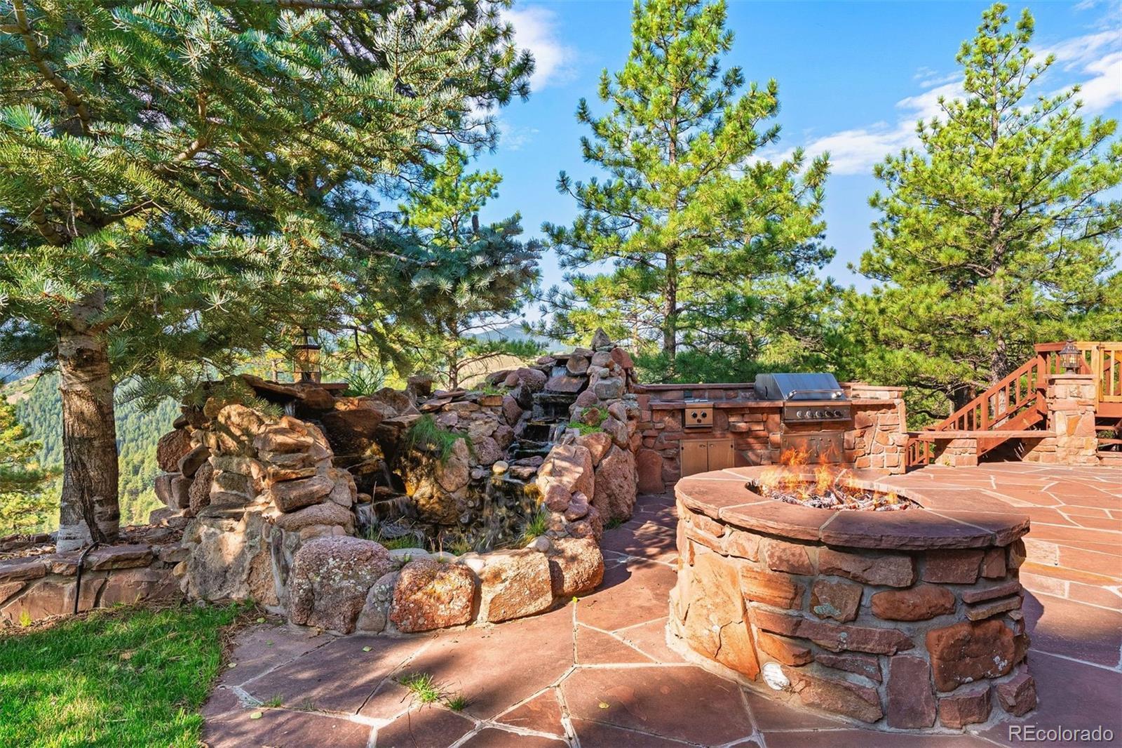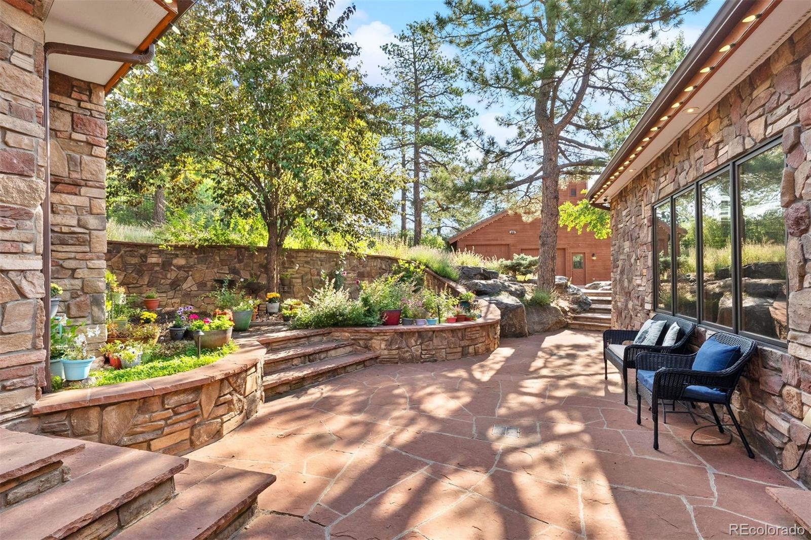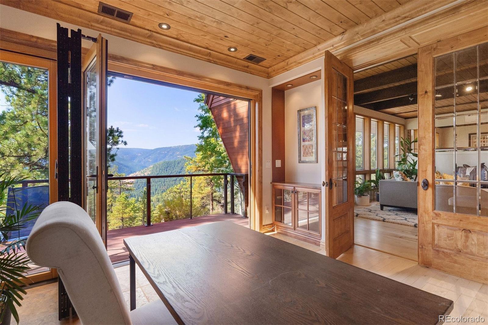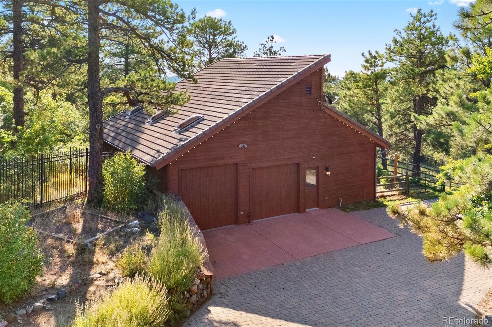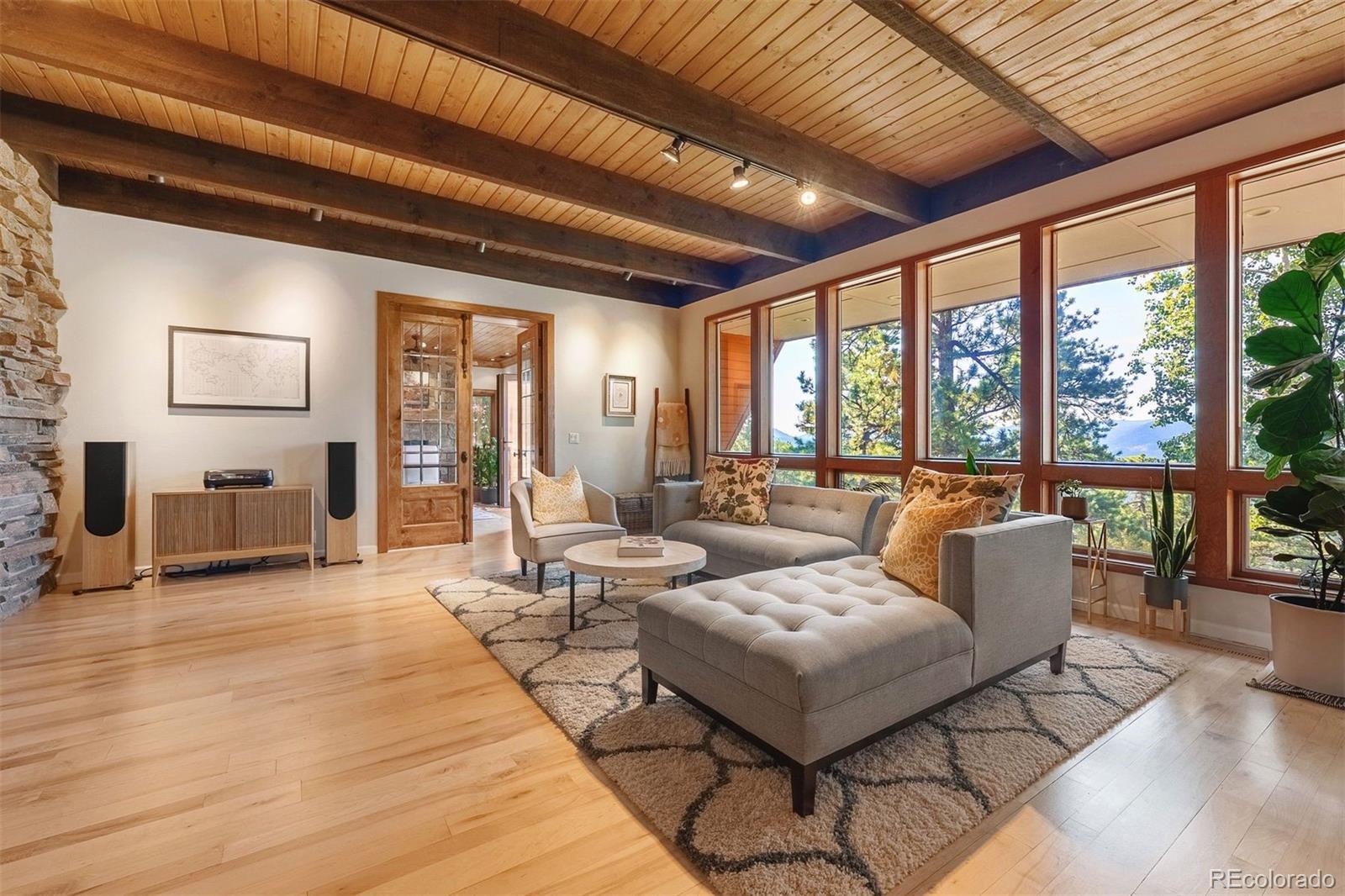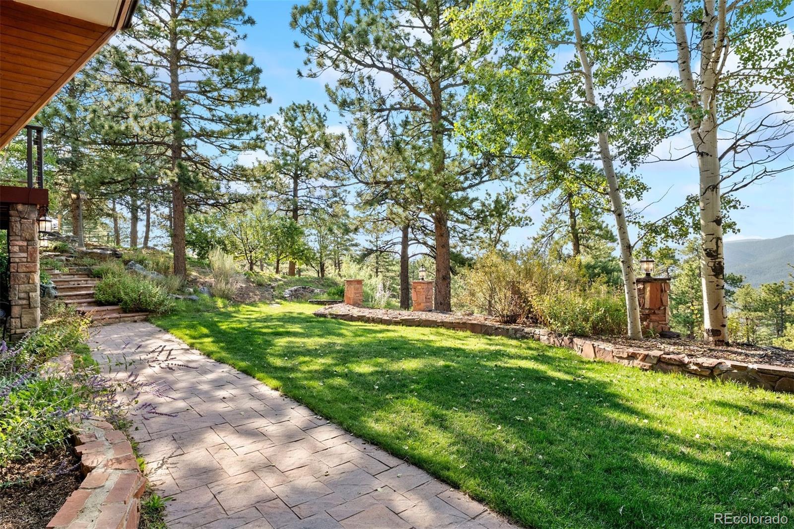 Set upon expansive acreage in a secluded gated mountain sanctuary known as West Ranch, this extraordinary estate captivates with breathtaking Colorado views. Originally constructed in 1977 by a Denver Broncos player, this residence is special in every sense of the word. It has undergone several renovations to maintain its luxurious appeal while preserving its unique character. The 7,285 square feet of impeccably designed living space is enhanced by extensive decks, providing unparalleled mountain viewing and sophisticated entertaining opportunities. The open floor plan floods the home with natural light through expansive windows framing stunning views. The gourmet kitchen boasts alder cabinetry, quartz countertops, a gleaming tile backsplash, premium appliances, and eye-catching light fixtures. Wood flooring flows throughout the main level, encompassing a custom office, television room, hearth room, and dining area. The upper level houses a magnificent primary suite with private deck for capturing panoramic views, plus an additional spacious bedroom with full bathroom. Multiple fireplaces create inviting ambiance throughout the residence, while the finished basement offers a kitchenette, recreation room with fireplace, and remarkable walk-in wine cellar. Outdoor entertainment flourishes on the walkout basement patio featuring grilling areas, water features, and gas fire pit. The impeccably kept grounds feature lush landscaping, a flat backyard lawn, and a central courtyard with vibrant plantings that evoke an enchanting English garden. Equestrians will appreciate the three-stall barn with paddock area, perfectly blended with mountain living. With 1,250 acres and just 52 home-sites, surrounded by 500 acres of preserved open space, this remarkable community prioritizes environmental stewardship, wildlife preservation, and beauty while maintaining exceptional privacy and security. You'll enjoy unparalleled mountain tranquility while finding convenience to amenities.