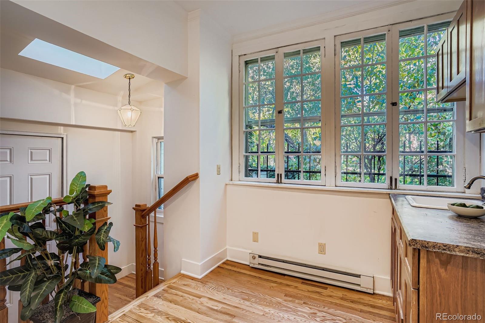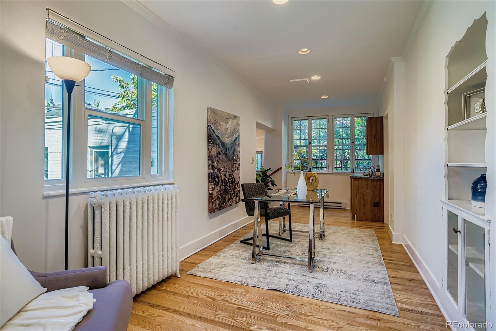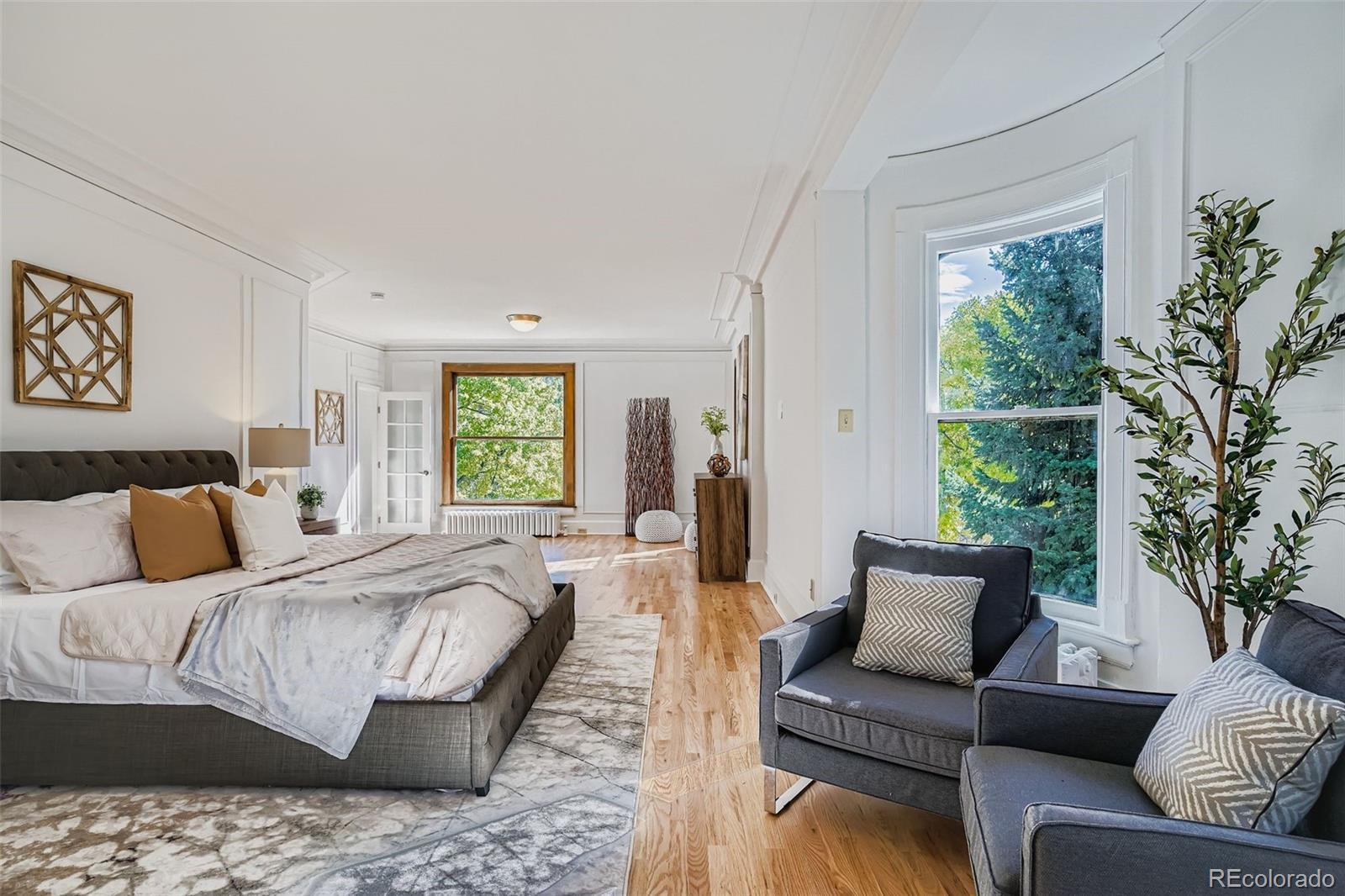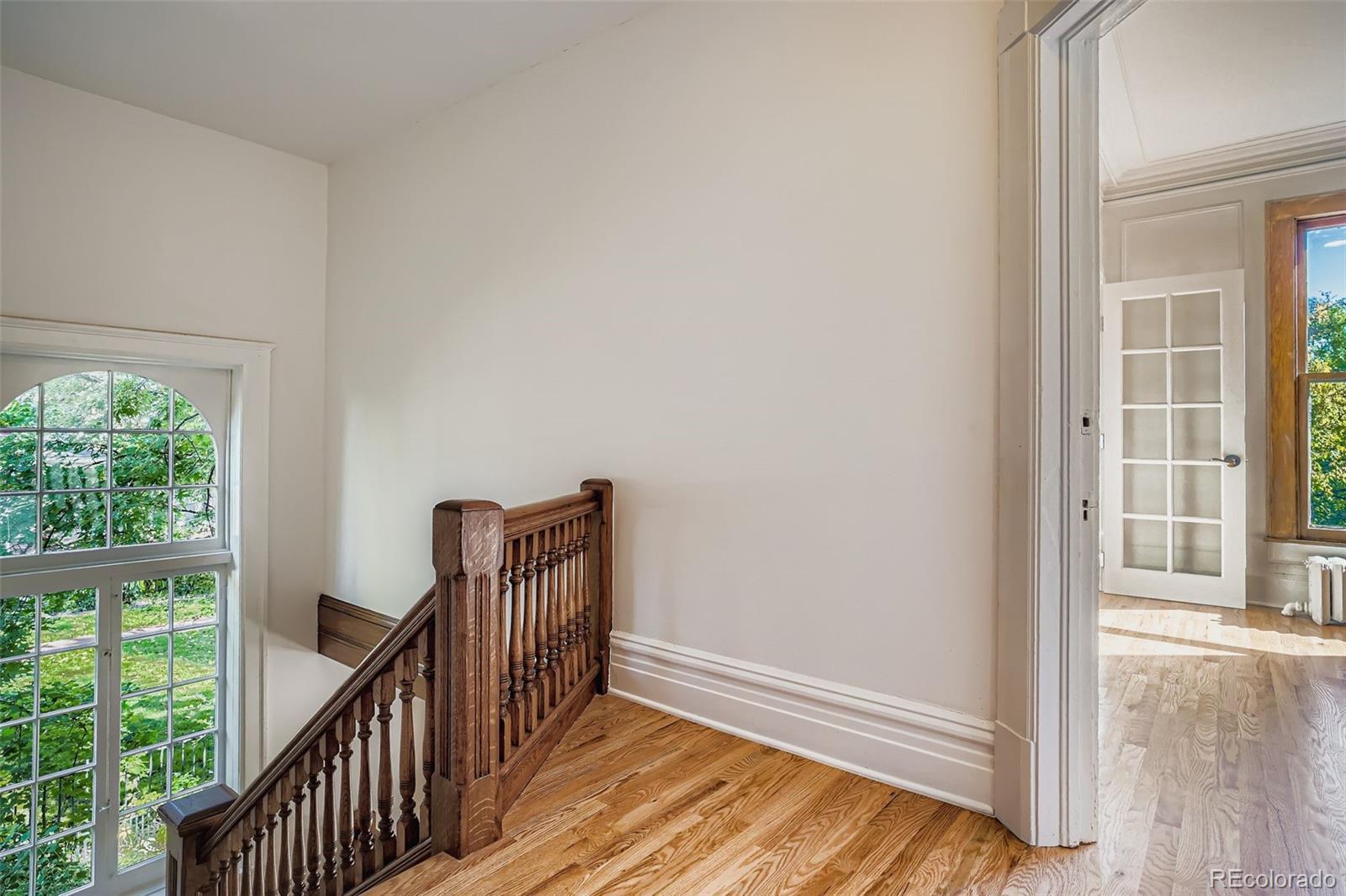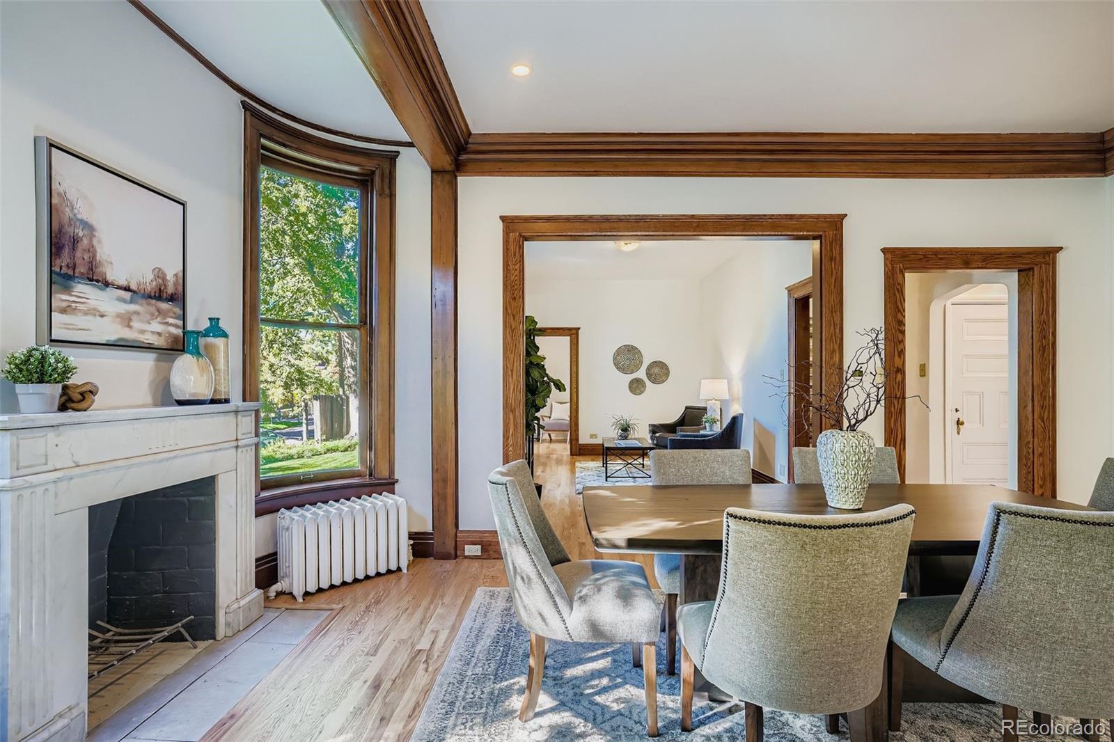 The 7th Ave Historic District is listed on the National Register of Historic Places recognizing its significance in preserving the architectural and historical heritage of Denver. In 2024-25 this home has undergone extensive remodeling while retaining as much as possible its original character, charm and attractive vintage feel. It is showcased with 10 (rarely seen) curved windows, massive open archways and a fully restored grand staircase made of stunning red oak plus new hardwood floors throughout the main level. All interior walls and ceilings have been remodeled with a very smooth skim coat to mimic the original condition of this turn of the century mansion. The main level offers 2-3 bedrooms and 2 baths while the upper floors have 2 more bedrooms including the massive size primary suite and two baths. Heading to the basement via outside entry is a private living area including a bedroom, bath, living area and kitchenette. The outside of this house is built with a combination of vintage brick and stone and located on a large corner lot with mature trees and lots of privacy. Notice on the front porch is a lovely covered domed patio plus additional patio seating in the back of the home ideal for entertaining and privacy. The 12-zone sprinkler system maintains a beautiful, lush green lawn surrounding the property. With an approx. total of $321,000 in renovation expenses including updated electrical, plumbing, boiler, painting etc. seller has left room for the buyer to design the kitchen and primary bath to their own personal taste. The 7th Ave Historic District continues to be one of the most desirable neighborhoods in the city of Denver and 707 N Corona St. is a premier location. This is a must see home, a rare listing in North Country club just minutes aways from Washington Park, City Park, Cheeseman Park, The Botanic Gardens, Cherry Creek, to name a few.
