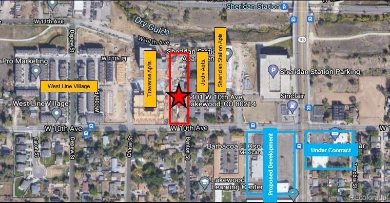5401 W 10th Ave is an exceptional development opportunity to introduce more TOD housing to round out the existing and proposed developments in the area. The site offers 55,022.70 SF of gross land area suitable for a mixed-use residential development from 4 to 7- stories. The adjacent developments top out at 5 stories, so there is an opportunity to capture some panoramic vistas of the full front range and downtown Denver. Alternatively, at this price, a for rent townhome project with rooftop desks could compliment the character of the neighborhood. Located across from Benton St and fronting both W 10th and W 11th Avenues provides an opportunity for easy access. The site is mostly level with except for a portion of the property that slopes down to 11th Avenue along the Gultch. The lot has 110 feet of frontage on both 10th and 11th Avenues with a depth of 496.22 feet, There is an 1800 square foot 2 bedroom 2 bath single family home currently occupied by a family member that could be leased for interim income or used as a pre-construction trailer.