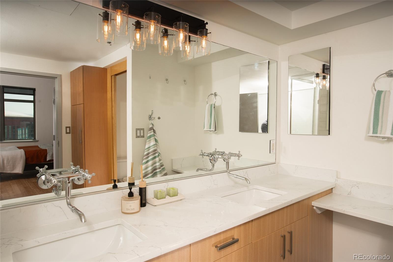 The world is at your door step. Ten minute walk to Union Station, ride the A-line to DIA, and your off to see the world. Leave all your treasures safely behind in a secured building awaiting your return home. Welcome to your urban oasis in the sky! This stunning 2-bedroom, 2-bath high-rise loft combines sleek modern living with unbeatable convenience and 24 hour security. Featuring an open floor plan with soaring ceilings, this home is filled with natural light and framed by breathtaking mountain views. Enjoy new bamboo floors throughout, a chef-inspired kitchen with a massive island—perfect for entertaining—and spacious bedrooms designed for comfort and style. The home is in excellent condition and move-in ready. Your car and your bicycle will be safe and warm in the heated garage. Located just steps from hundreds of shops and restaurants, you'll love being in the heart of the action. Whether you're catching a game, heading to a concert, or exploring the nearby trails, and you’re just minutes from all the major sports venues and Union Station. Bring your furry friend because this building is also pet friendly! This is city living at its best—don't miss your chance to own a piece of the skyline! *SELLER IS PAYING THE SPECIAL ASSESSMENT*