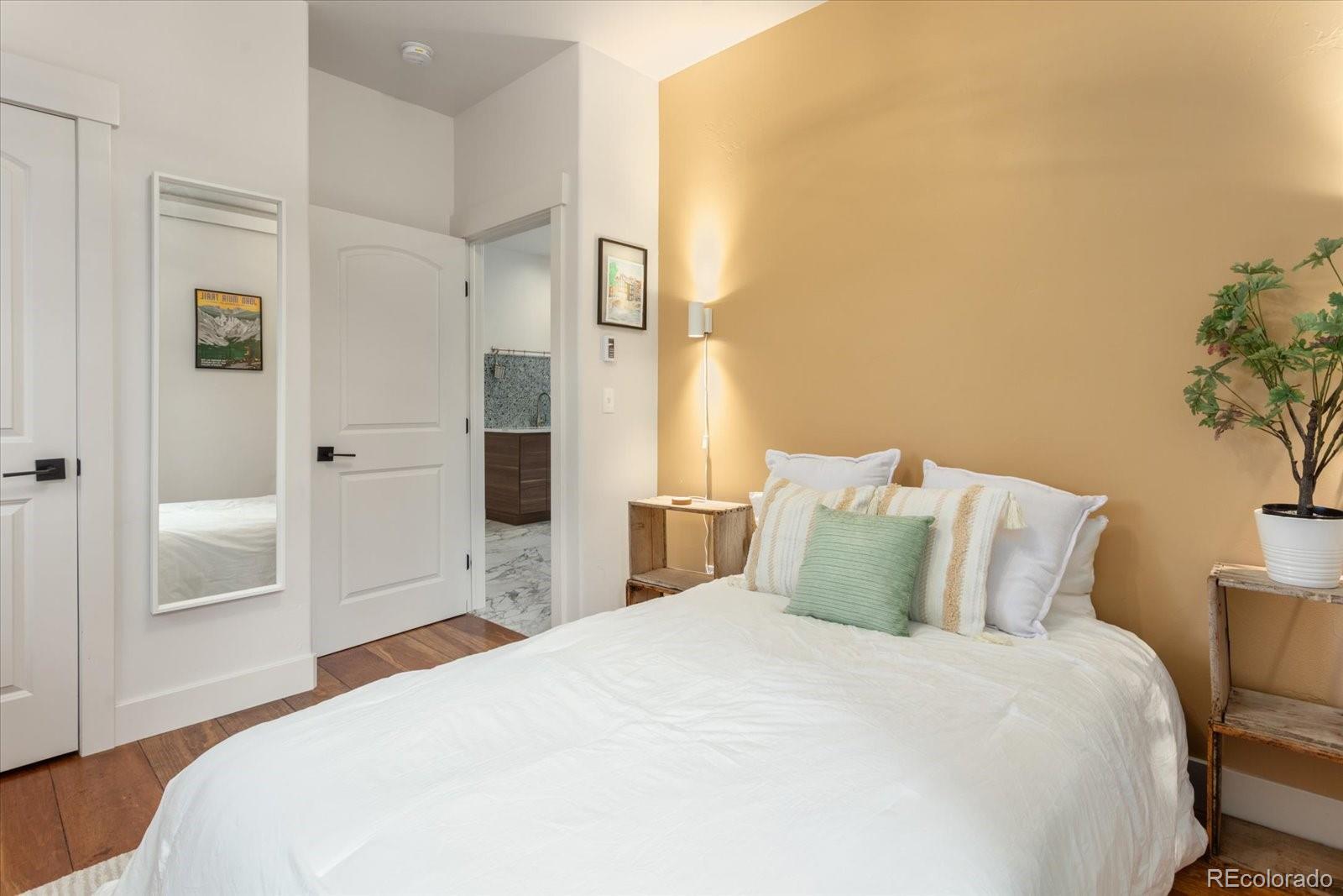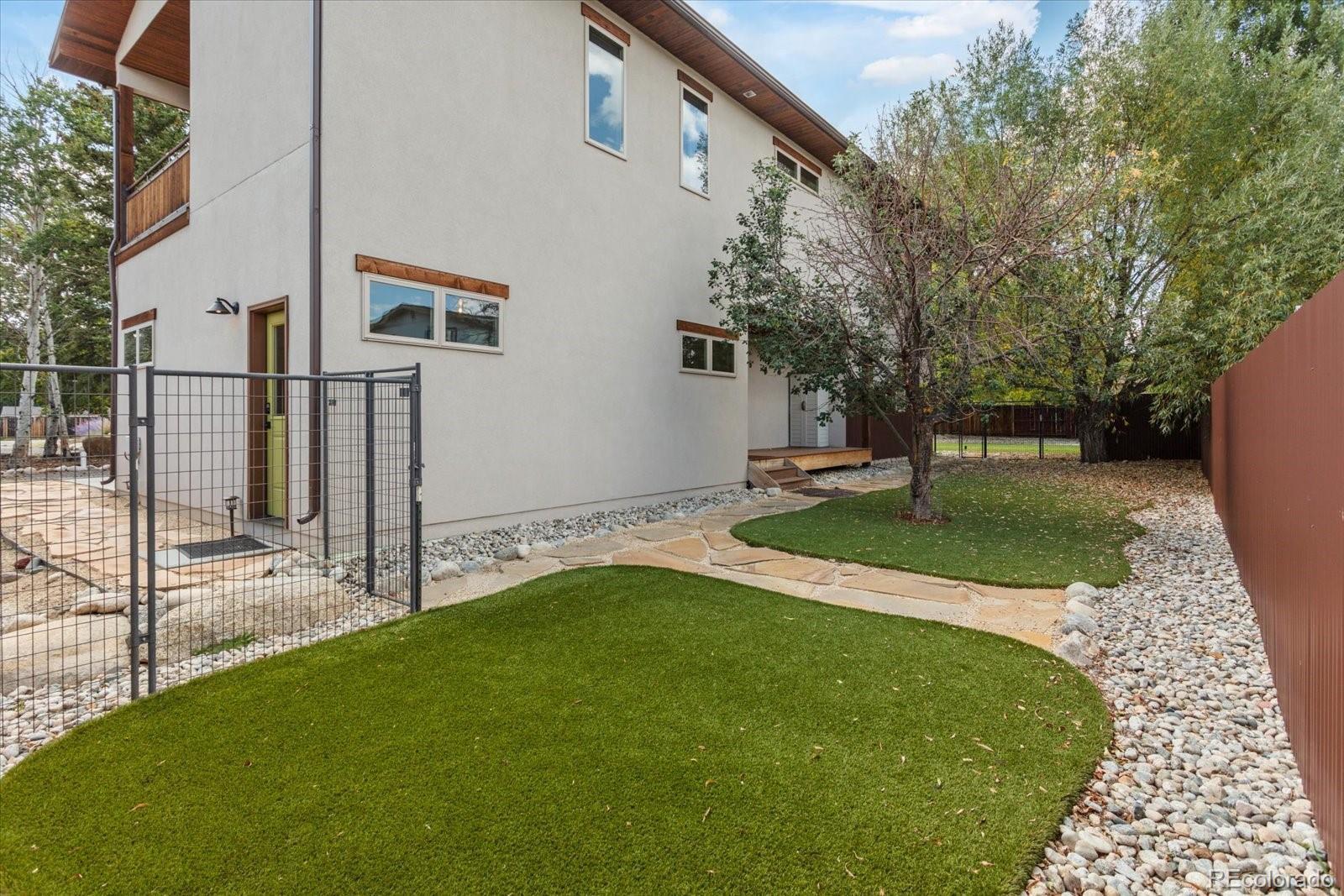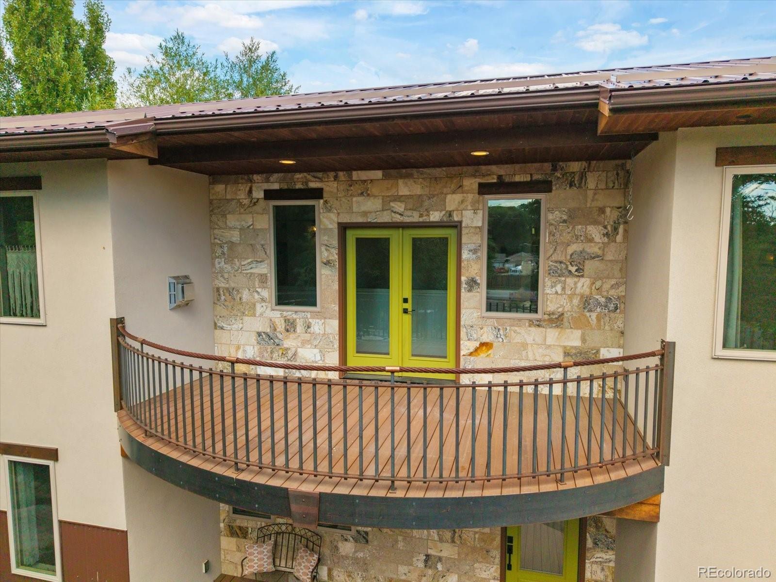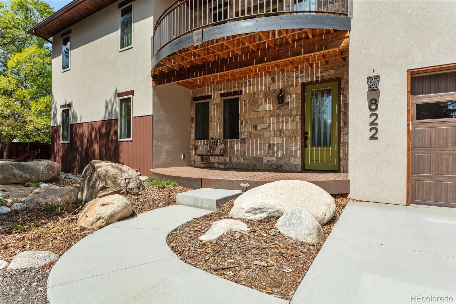 822 Yale Avenue is a one-of-a-kind home that blends mountain character with modern luxury. Situated on a quiet street just a short walk from downtown, this residence was designed with multi-generational living in mind and showcases the highest quality materials throughout. Every detail was carefully considered, from the travertine stone tile exterior to the custom finishes inside, creating a home that is as stylish as it is functional. The main living area is located upstairs to take advantage of the views. A custom kitchen anchors the space with quartz countertops, premium cabinetry, gas range, and a handcrafted wood dining table made specifically for the home. The kitchen flows into the dining and living room, complete with a sleek gas fireplace and large windows that fill the space with light. The primary suite features a generous walk-in closet and private balcony. A spa-like bathroom with a steam shower and a stunning copper soaking tub. A second bedroom and laundry pantry complete the upper level. Custom travertine tile flooring, high-end wide plank pine wood floors are found throughout the home. A dual heating systems with in-floor radiant heat and comfort cove for maximum efficiency. All of the interior handrails are uniquely crafted from an authentic Copper Mountain ski lift. The lower level functions as a separate living space with its own kitchenette, living room, bedroom, and bathroom—perfect for guests, extended family, or flexible rental use. Outside, the home is wrapped in travertine stone tile, stucco, and metal siding for a chic, low-maintenance finish. Multiple outdoor living areas include a covered front porch, covered back porch, a large balcony ideal for outdoor dining, and a private balcony off the primary suite. A lush grassy backyard and side yard create a true retreat, offering privacy and space to relax. With its high-end design, rare materials, and unbeatable location is a statement of style, comfort, and modern mountain living.