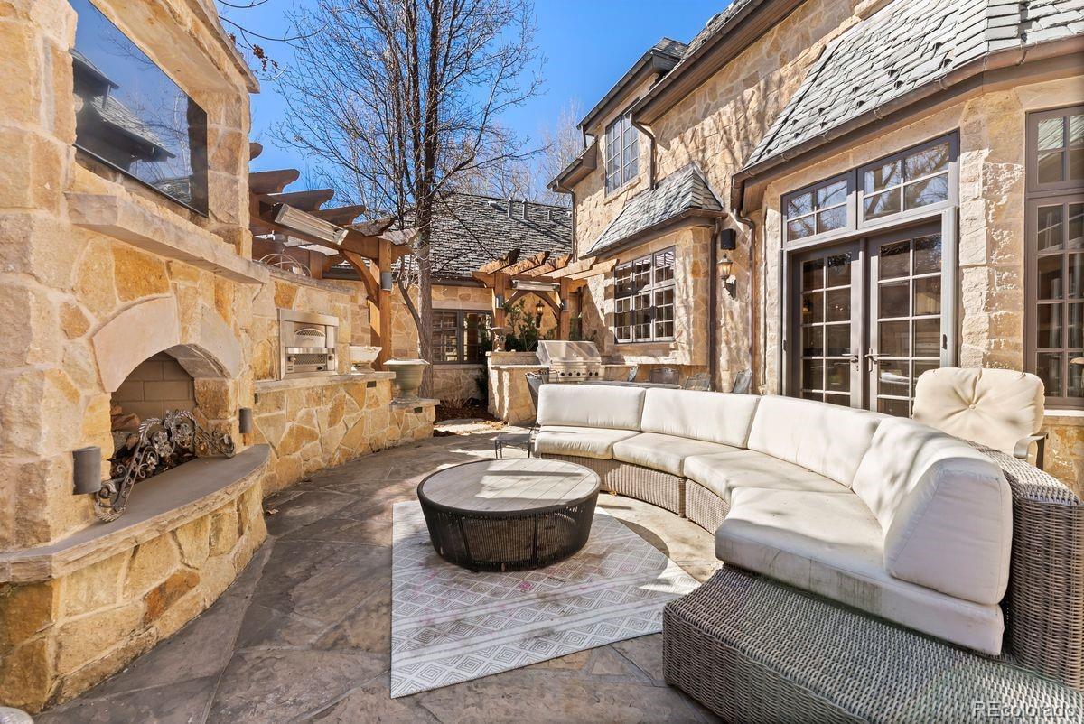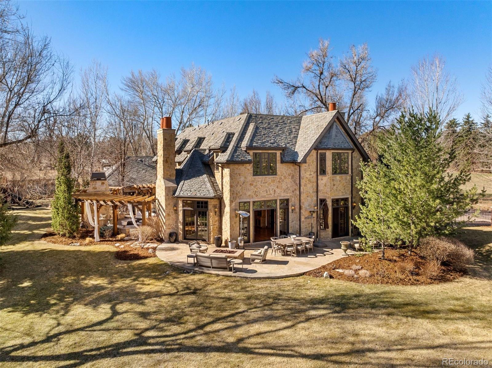 Overlooking Cherry Hills Golf Course, this enchanting French chateau offers timeless elegance and modern luxury. Blending old-world charm with contemporary comfort, this extraordinary estate offers exquisite craftsmanship, luxurious finishes, and unparalleled outdoor living spaces. Surrounded by a beautiful wrought iron gate and stone pillars, this stunning property boasts lush lawns, manicured gardens, and multiple stone terraces, creating a serene and private retreat. The outdoor oasis features a pergola with built-in heaters, a pizza oven, a grill, and a grand stone fireplace—perfect for entertaining year-round. Inside, the spacious living room is warm and inviting, with a stone fireplace, rich hickory floors, and French doors leading to the terraces. The elegant dining room is thoughtfully designed for both intimate family gatherings and grand-scale entertaining. The gourmet kitchen is a chef’s dream, featuring top-of-the-line Wolf and Sub-Zero appliances, a large quartz waterfall island, custom cabinetry, and a walk-in pantry. The sumptuous primary suite is a true sanctuary, complete with a romantic fireplace, hickory floors, and breathtaking views of the outdoor living spaces. The spa-like ensuite bath offers a luxurious tub, a spacious shower, and dual vanities. Additional bedrooms upstairs are generously sized, each with ensuites. The finished lower level adds the final touch to this remarkable home, featuring a private guest room, an exercise room, a large recreation area, a custom bar, and a temperature-controlled wine cellar. An oversized 4-car garage, mudroom, and custom built-ins enhance the home’s functionality. Located in one of Colorado’s most prestigious neighborhoods, this exceptional estate is just minutes from top-rated schools, Cherry Hills Country Club, the High Line Canal Trail, and premier shopping and dining. Don’t miss this rare opportunity to own a truly extraordinary property in Cherry Hills Village!