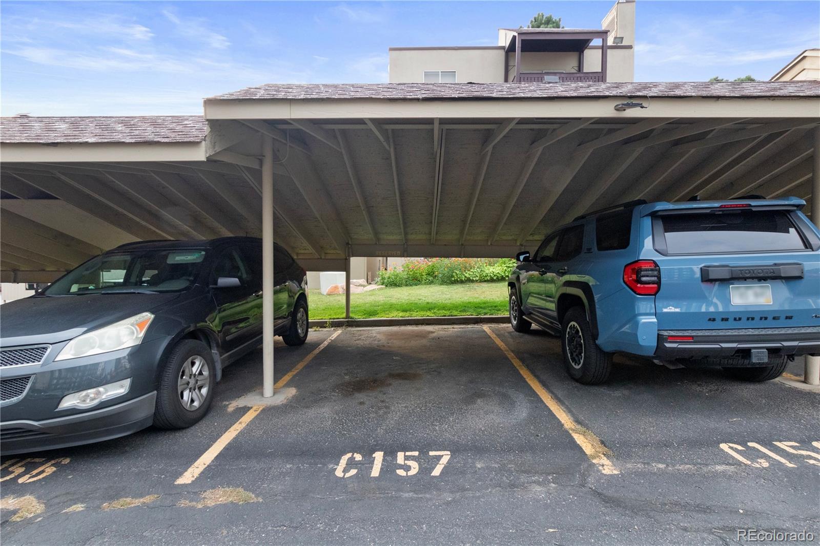 Welcome Home! This inviting 1-bedroom, 1-bath second-floor condo offers comfort, convenience, and value in one of Denver’s most established communities. From your private balcony, enjoy peaceful views of the lush green courtyard—perfect for morning coffee or relaxing at the end of the day. Interior Highlights: • Spacious, light-filled rooms with timeless flooring throughout • Living room with 8-foot ceilings & stylish mid-century modern exposed beams • Kitchen with pass-through bar, pantry & full appliance suite — flat cooktop range, oven, refrigerator, dishwasher, microwave & disposal • Primary suite with wall-length closet for generous storage • Bath with large vanity & separate tub/shower and commode for added convenience • Private balcony overlooking beautifully maintained courtyard Additional Features: • Dedicated carport (#C157) included • All utilities covered except cable — electricity, A/C, water, trash, sewer, gas, exterior building & grounds maintenance — keeping living costs low and stress-free Community Amenities: • Walking & biking trails • Picnic areas & playground • Pet play area • On-site laundry facilities Location Highlights: • Just 15 miles south of Downtown Denver • West Hampden area offers a suburban feel with urban convenience • Quick access to I-225 & I-25 for easy commutes • Close to Cherry Creek Reservoir parks & recreation • Near Englewood, Aurora & Lakewood • Niche.com rates the 80231 ZIP code “A- Overall” Enjoy low-maintenance living with resort-style perks—a perfect balance of affordability, comfort, and convenience in a highly desirable Denver location!