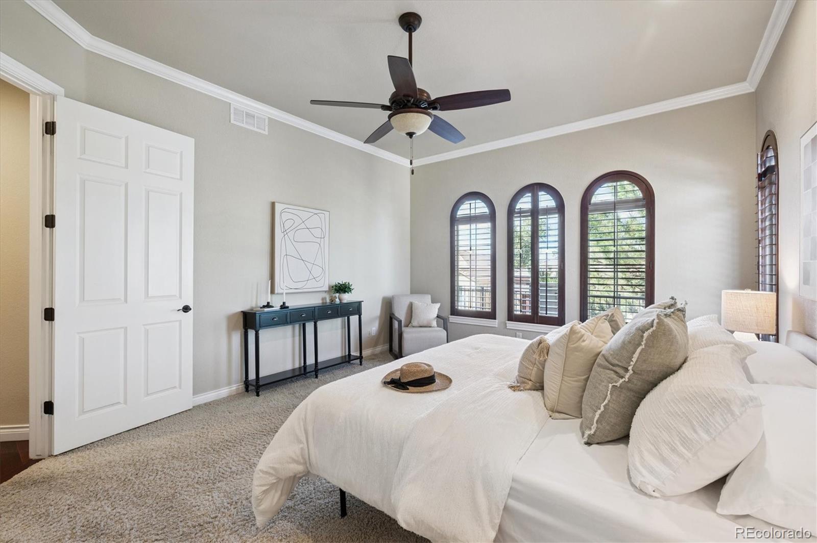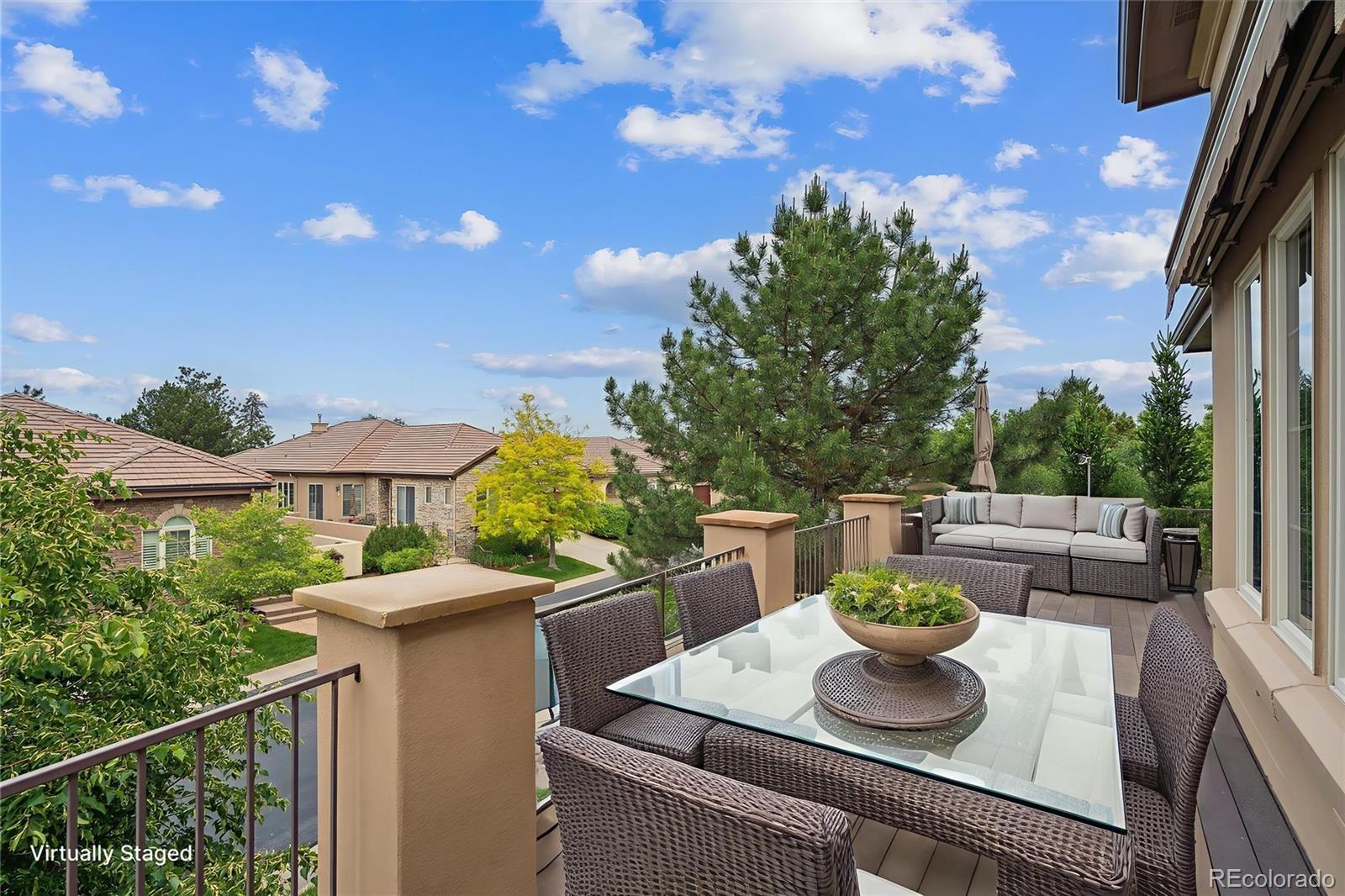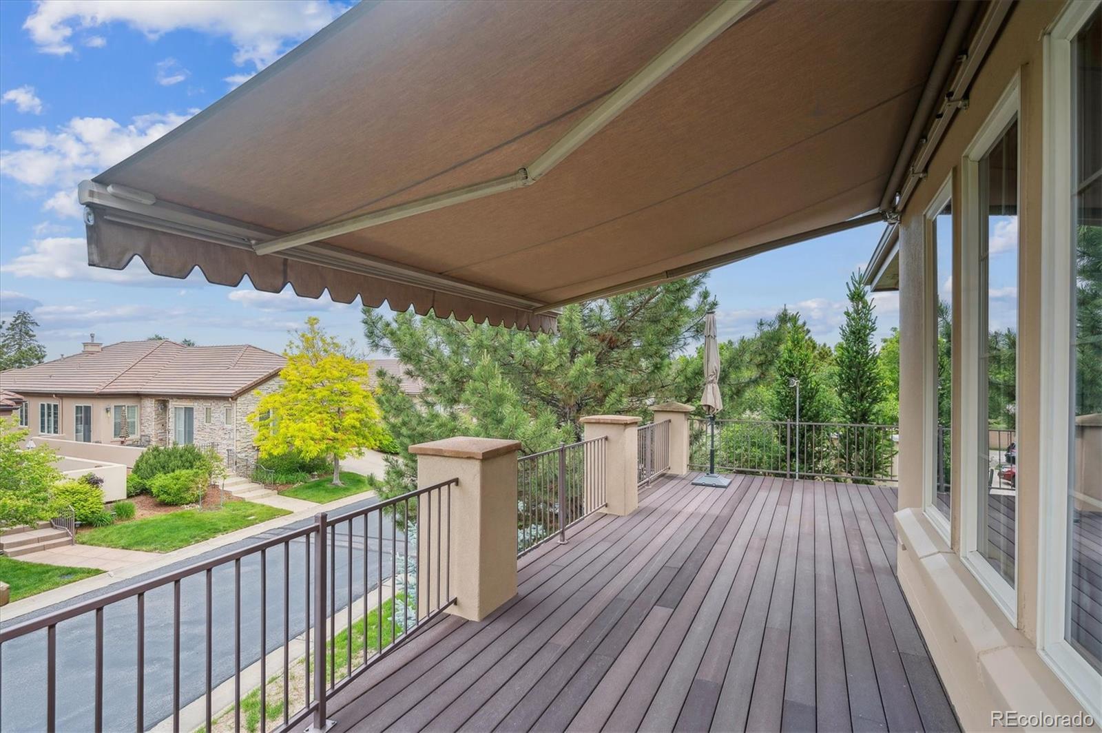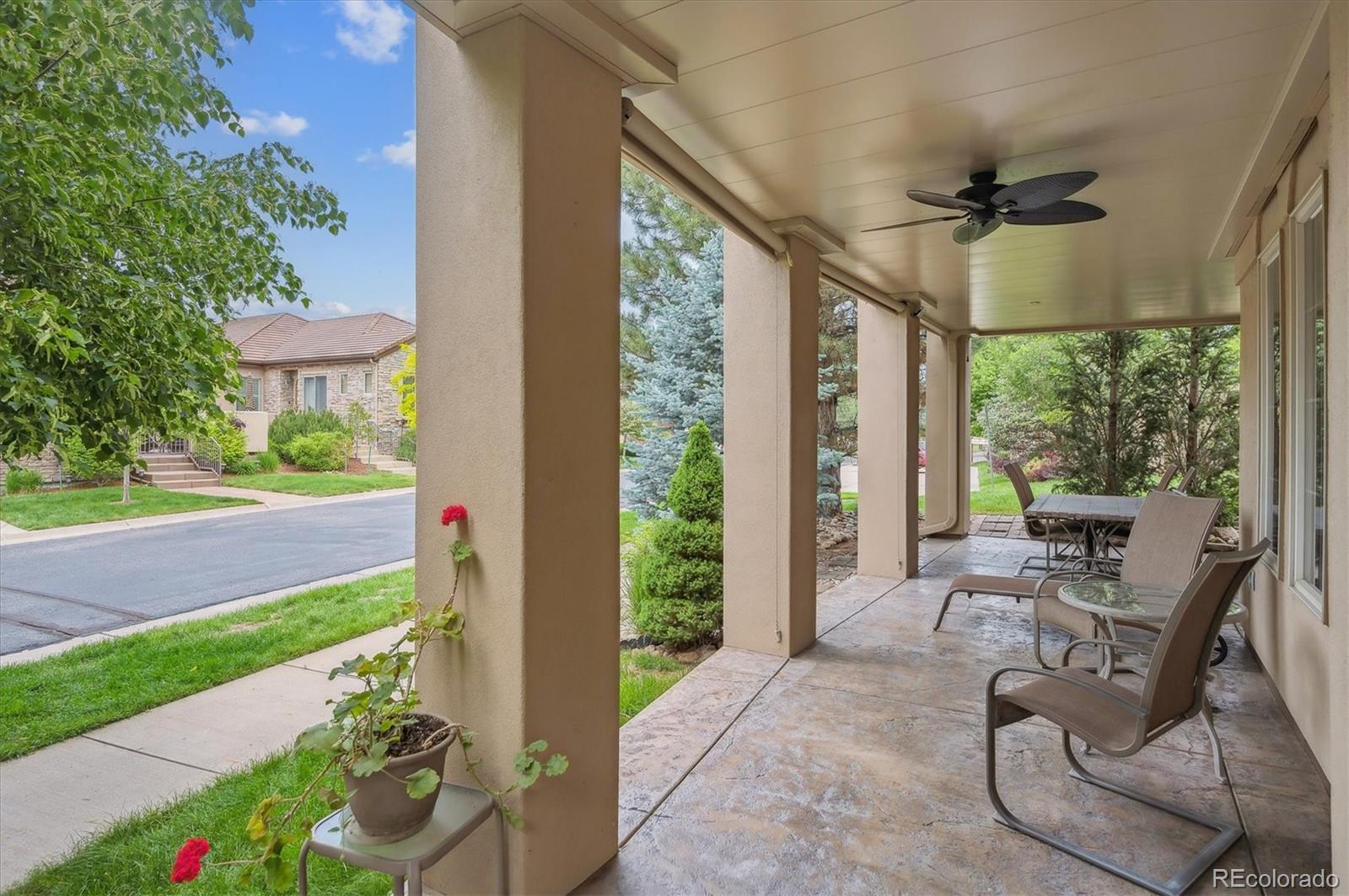 Lock N Leave Lifestyle. Private, Gated Community nestled along Cherry Creek State Park. Tucked into heart of the neighborhood featuring low maintenance exterior (stucco + concrete roof), arched architectural details throughout, extensive millwork package and upgrades galore during time of ownership. Thoughtful floorplan features secondary bedroom/office/in laws quarters on main level, multiple living spaces (both indoors and out), entertainers' dream WALK OUT lower level features state of the art bar. Plantation shutters, Brazilian hardwoods, composite expanded deck includes Liberty power awning w/ wind protection + waterproof ceiling for outdoor lower level patio enjoyment), newER HVAC, & hot water tank, Subzero refrigerator, Miele dishwasher...the list goes on! Expansive professional landscaping + lovingly MAINTAINED. 10 out of 10 Stars. Access beautiful park right outside back gate, along paved bike trail.