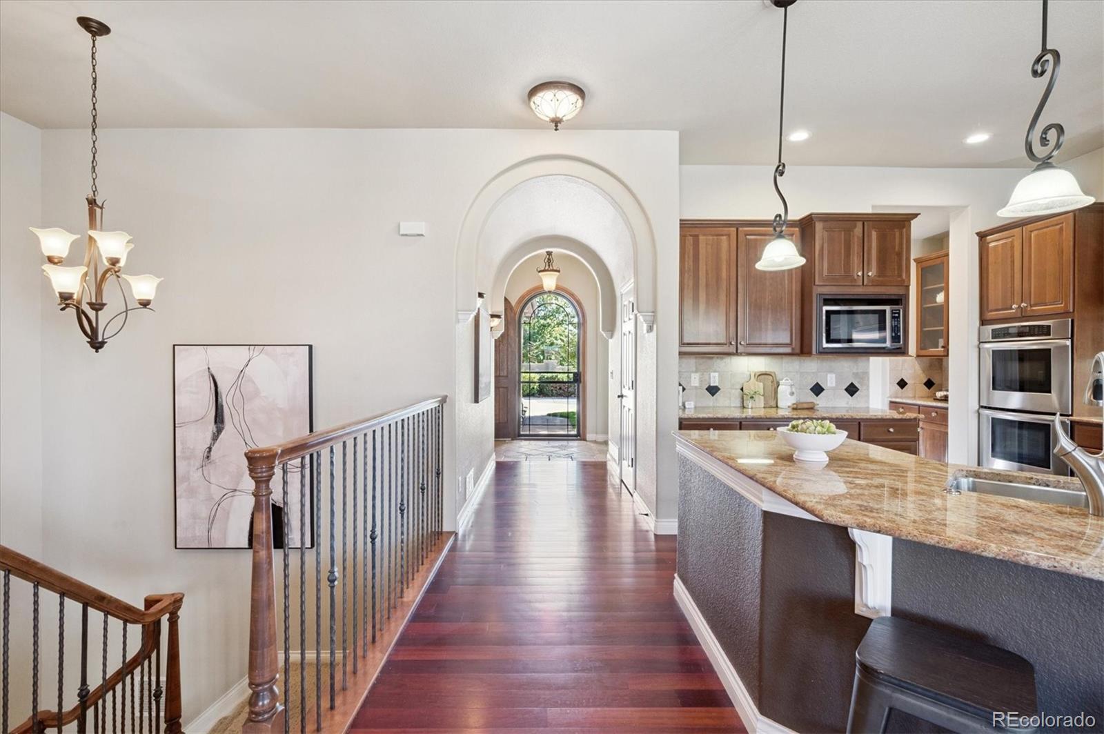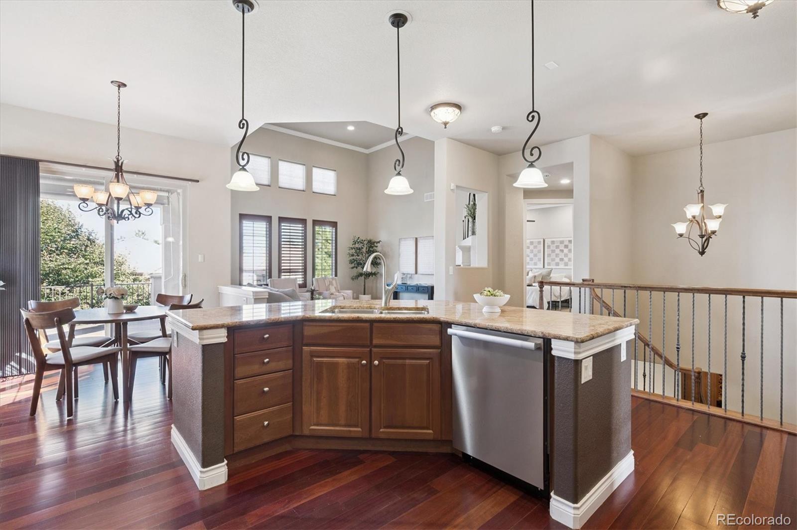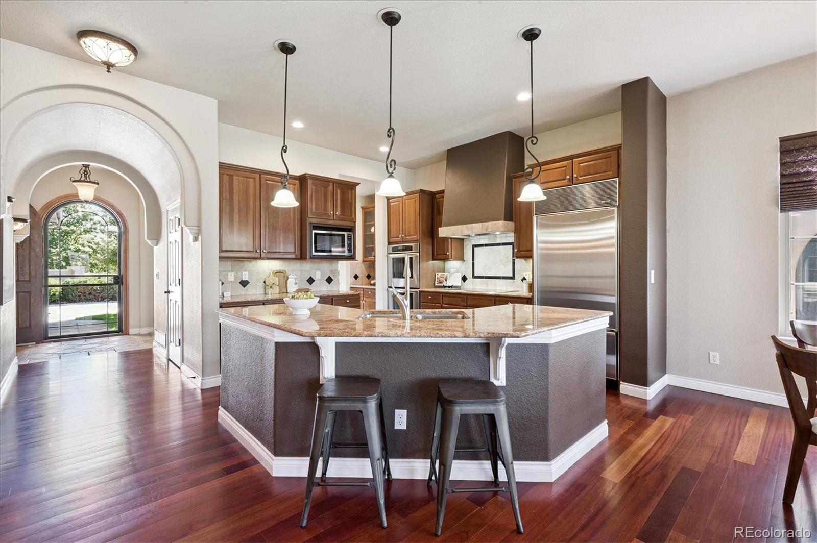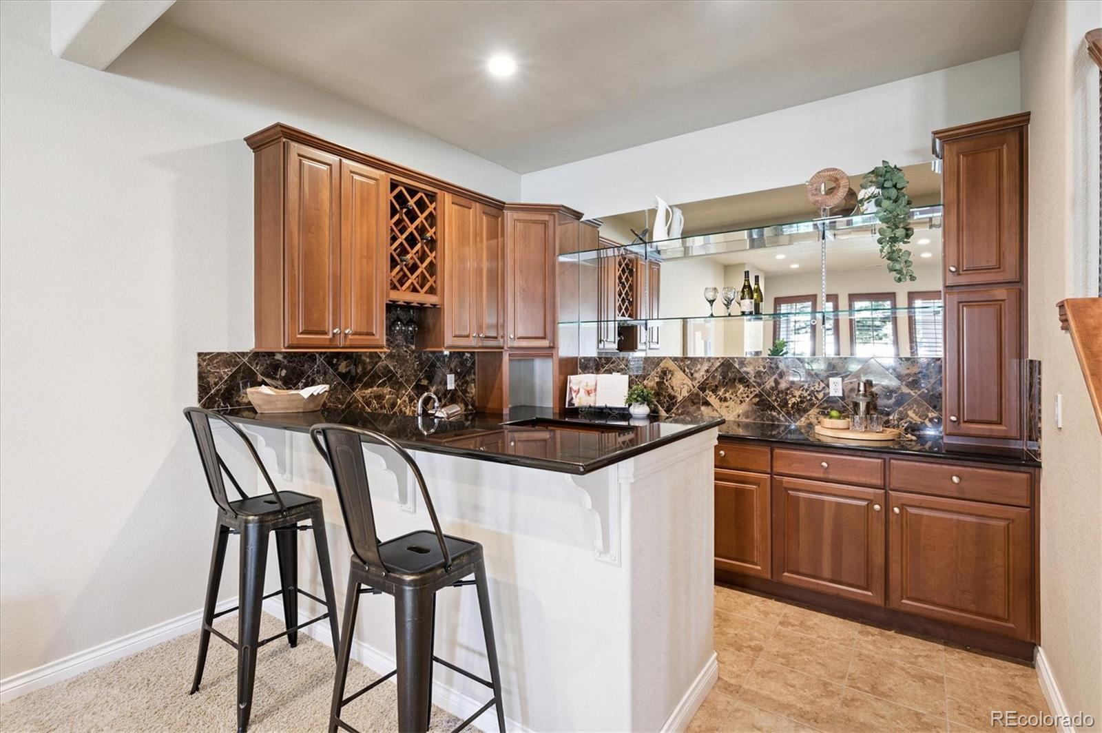 Lock N Leave Lifestyle. Private, Gated Community nestled along Cherry Creek State Park. Tucked into heart of the neighborhood featuring low maintenance exterior (stucco + concrete roof), arched architectural details throughout, extensive millwork package and upgrades galore during time of ownership. Thoughtful floorplan features secondary bedroom/office/in laws quarters on main level, multiple living spaces (both indoors and out), entertainers' dream WALK OUT lower level features state of the art bar. Plantation shutters, Brazilian hardwoods, composite expanded deck includes Liberty power awning w/ wind protection + waterproof ceiling for outdoor lower level patio enjoyment), newER HVAC, & hot water tank, Subzero refrigerator, Miele dishwasher...the list goes on! Expansive professional landscaping + lovingly MAINTAINED. 10 out of 10 Stars. Access beautiful park right outside back gate, along paved bike trail.