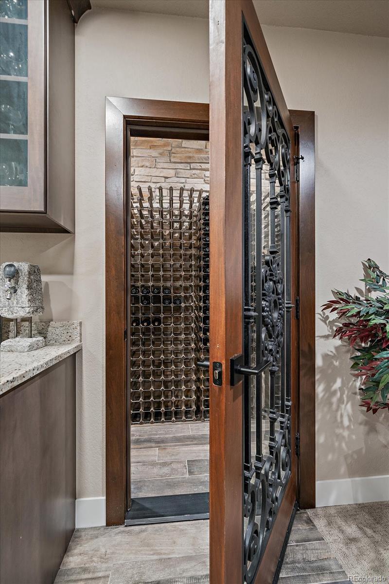 Stunning Newer Contemporary Farmhouse Ranch in Fox Hill w/ Majestic Mountain Views on 1.51 Acres!Welcome to luxury living in the acclaimed custom neighborhood of Fox Hill in Franktown, CO! This 5-bedroom, 6-bathroom custom ranch home offers exceptional design, functionality, an open floor plan, and elegance across a spacious layout with a fully finished basement.From the moment you step inside, you're greeted by dramatic vaulted ceilings, warm wood flooring, and a mosaic marble fireplace—the striking focal point of the main living area. The chef’s kitchen is a culinary dream, featuring a huge island w/ quartz countertops, stainless appliances, gas cooktop and hood, ceramic tile backsplash, multi colored cabinetry and generous workspace and pantry..The main-floor primary suite impresses with high ceilings and a luxurious 5-piece bath, including a freestanding soaking tub and oversized shower. Access to the covered patio is just outside your primary bedroom for those warm summer nights to enjoy the views.Designed with versatility and comfort in mind, the home includes a dedicated office or gym, media room, and ADA-accessible front bedroom and bath with reinforced structure for future lift systems.The fully finished basement is built for entertaining, boasting a custom wet bar, wine cellar, billiards space , and expansive living areas. The owners paid careful attention to leave a huge storage space for extra practicality.Both main-level and basement laundry rooms add convenience. Step outside to enjoy Colorado living at its finest: a partially covered rear patio with gas BBQ hookup, stone steps leading to a built-in fire pit, and custom landscaping throughout the 1.51-acre corner cul-de-sac lot. Additional highlights include a 4-car oversized garage w/ EV charger and an unbeatable location with quick access to Parker, Franktown, Elizabeth, Castle Rock, and only 45 minutes to DIA.Don’t miss your chance to own this custom masterpiece in Fox Hill!